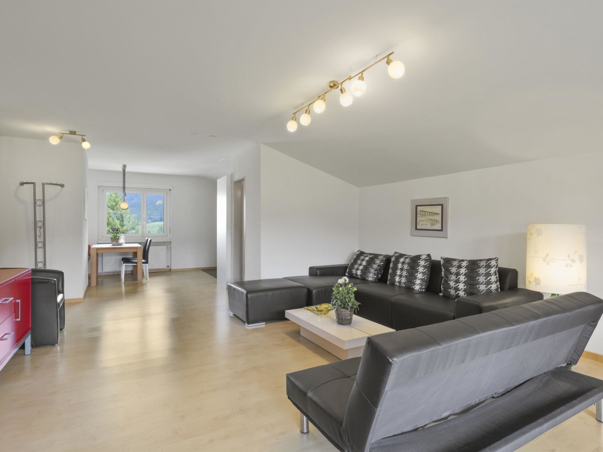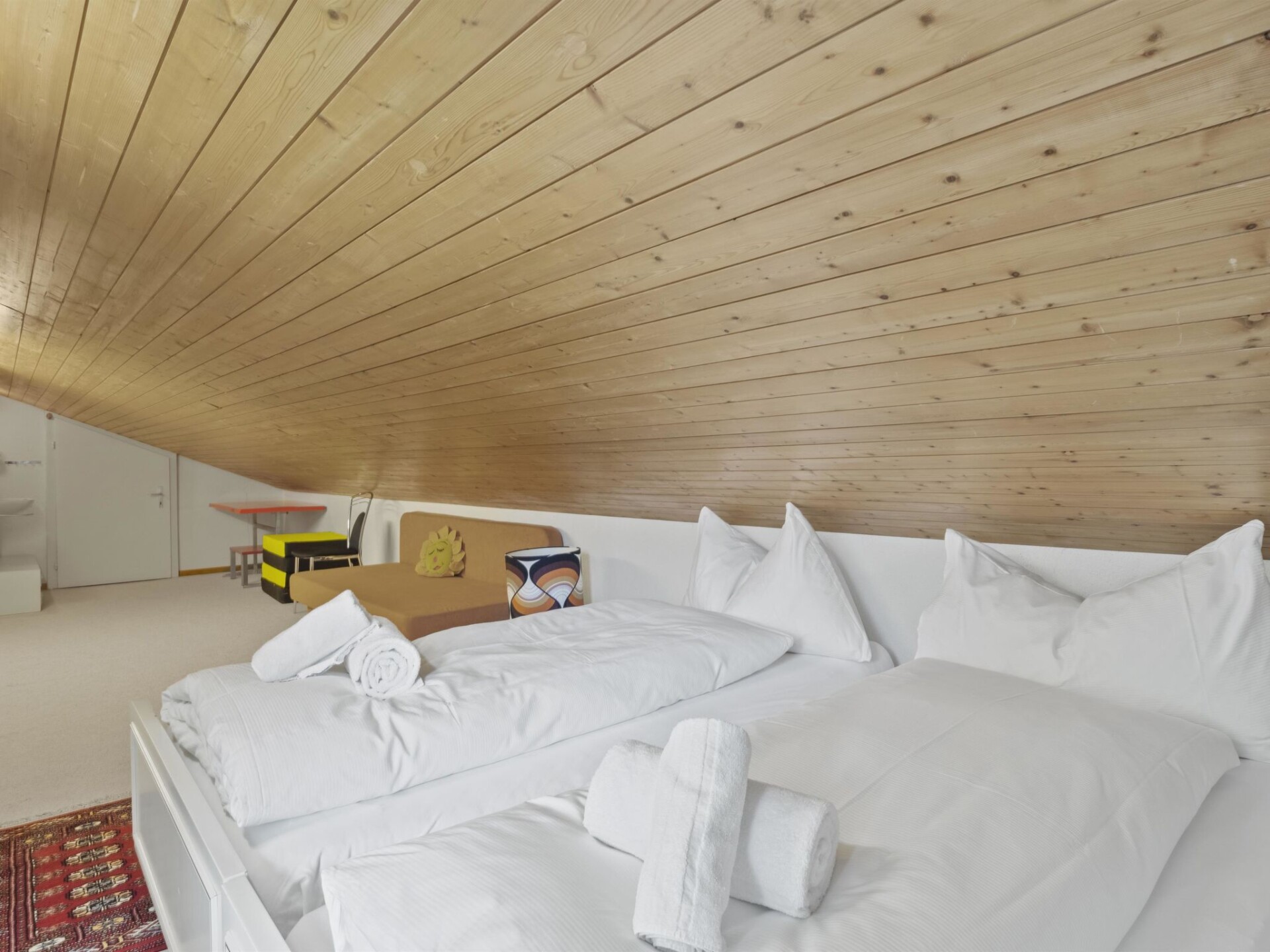 Triangle House B / 3rd floor-attic / Lift / no wifi / 1 room with double bed and one single bed / 1 room with double bed (sloping roof/mansard) / 1 bathroom with WC, shower and bathtub / 1 separate WC The Heimberg chairlift, the Kinderland and the cross-country ski trails are in the immediate vicinity of the flat.
