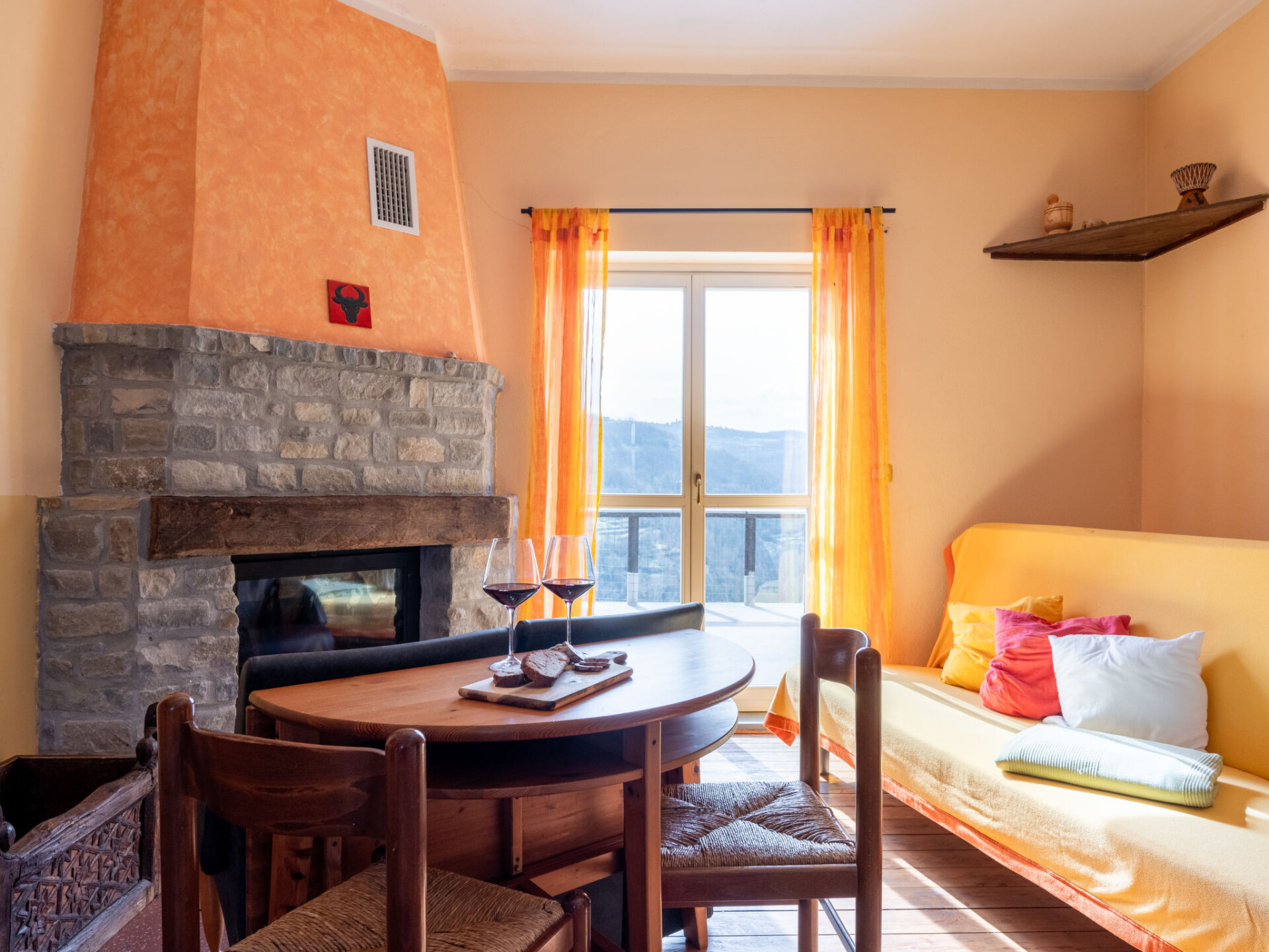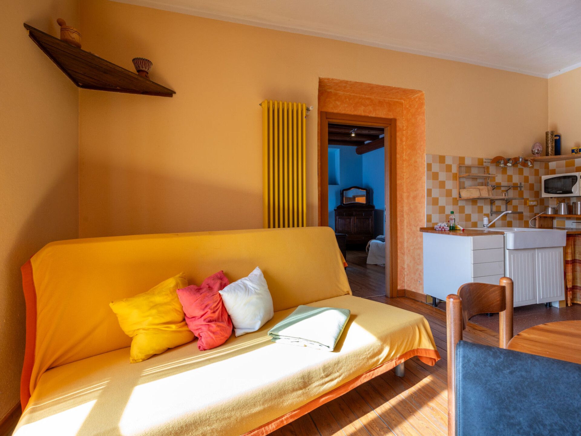"Trilocale 14", appartement 3-kamers 75 m2 op de 1e verdieping. Licht, comfortabel en gezellig ingericht: woon-/eetkamer met 1 divanbed, open haard en eettafel. Uitgang naar het terras. 1 groot 2-pers. kamer met TV. Uitgang naar het terras. 1 kinderkamer met 1 bed en 1 x 2 stapelbedden, wastafel. Kookhoek (4 kookpitten (vlammen), magnetron). Douche/bidet/WC, hydromassage douche. Verwarming. Groot terras 60 m2. Terrasmeubelen. Panoramazicht. Ter beschikking: haardroger. Internet (WiFi, gratis). Geschikt voor families. Maximaal 1 huisdier/hond toegestaan. IT004073B5RZOCHA57