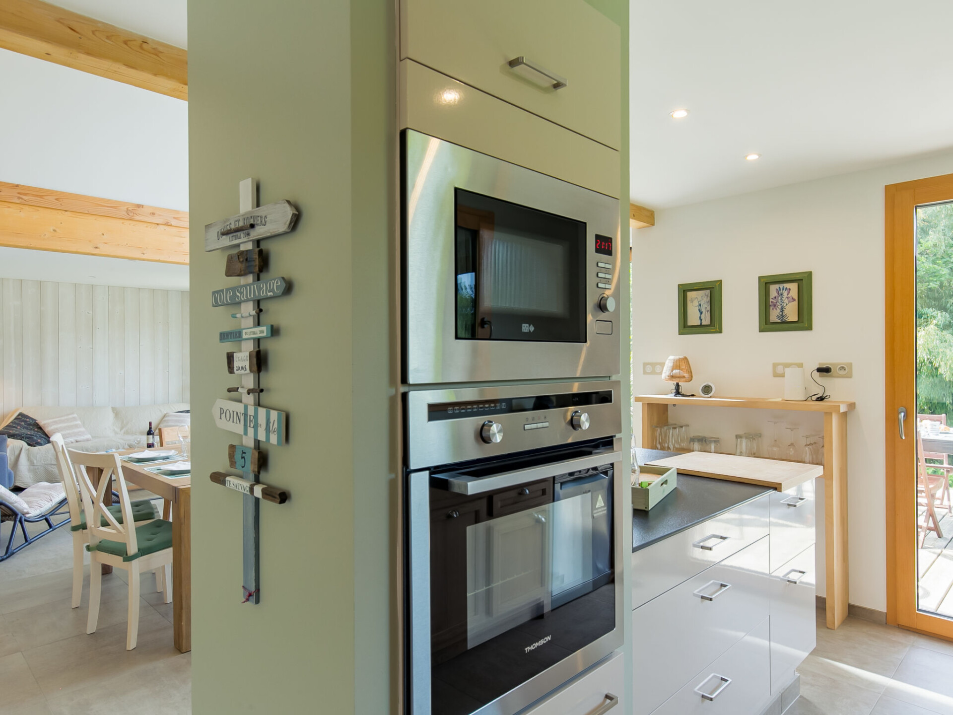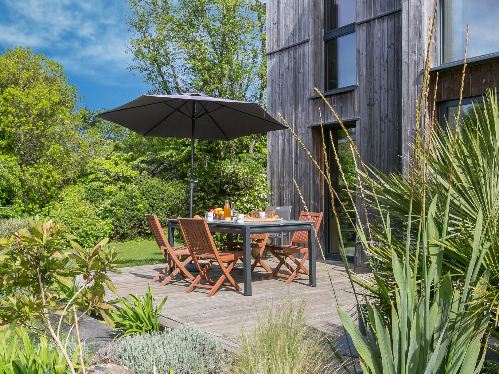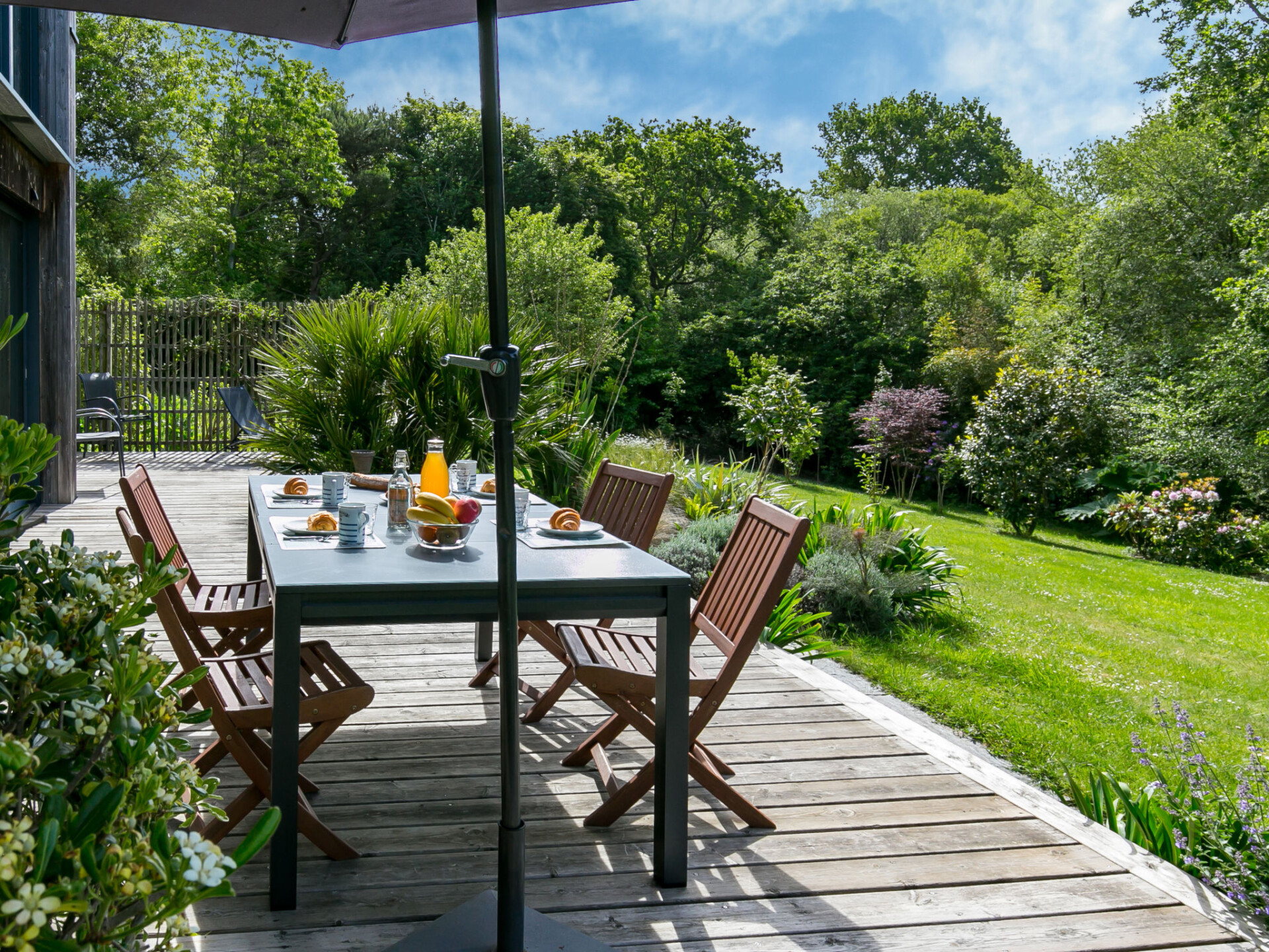 "Ty Coat", huis 4-kamers 150 m2 op 2 verdiepingen. Licht, smaakvol en gezellig ingericht: groot woon-/eetkamer met panoramavenster met eettafel, TV en internationale TV-zenders. Uitgang naar het terras. 1 kamer met 1 2-pers bed (160 cm, lengte 200 cm). Uitgang naar het terras. Open keuken (oven, afwasmachine, 3 keramische glas kookplaten, broodrooster, waterkoker, magnetron, diepvriezer, elektrische koffiemachine) met kleine eettafel. Douche/WC. Bovenverdieping: open salon. 1 kamer met 1 2-pers bed (160 cm, lengte 200 cm). 1 kamer met 2 bedden (90 cm, lengte 190 cm). Douche, aparte WC. Elektrische verwarming. Parketvloeren. Groot terras 38 m2, op het zuiden gelegen, klein terras 5 m2, op het oosten gelegen. Terrasmeubelen, barbecue, ligstoelen (4). Mooi uitzicht op de tuin. Ter beschikking: wasmachine, strijkijzer, kinderstoel, kinderbed, haardroger. Internet (Internet (WiFi), gratis). Rookvrij huis. Rookmelders.