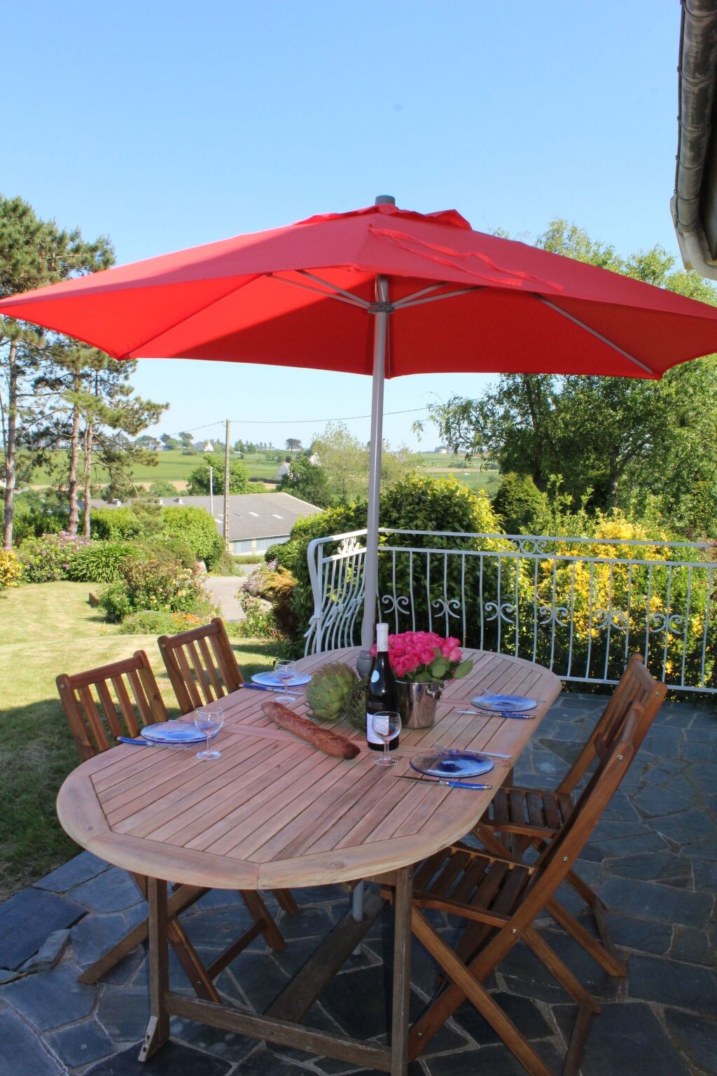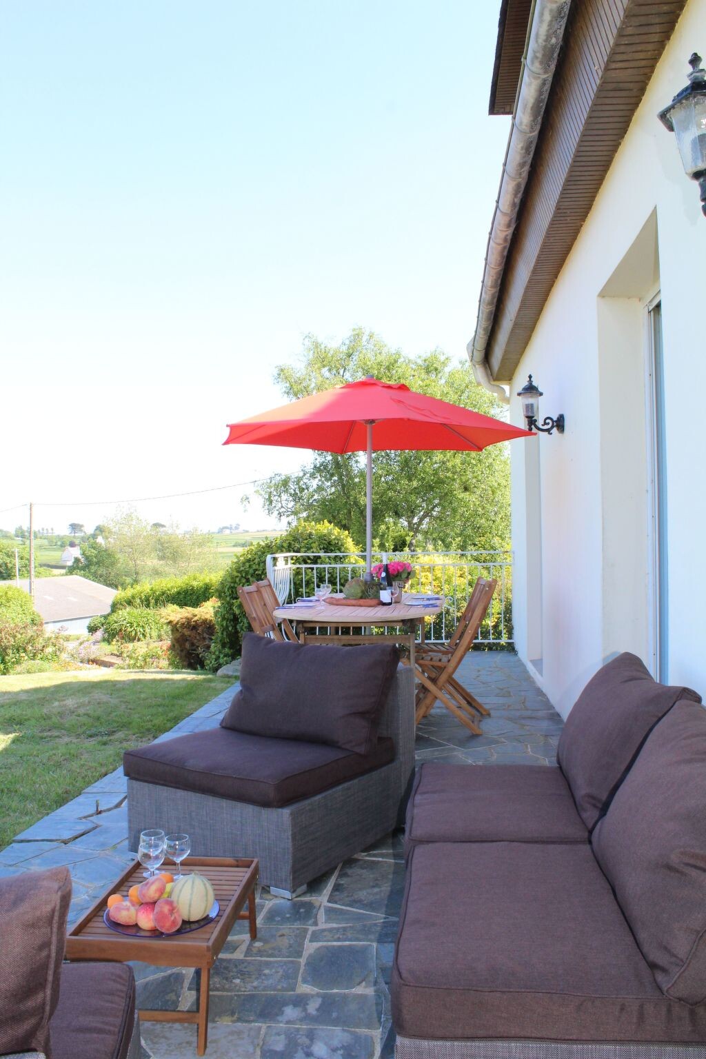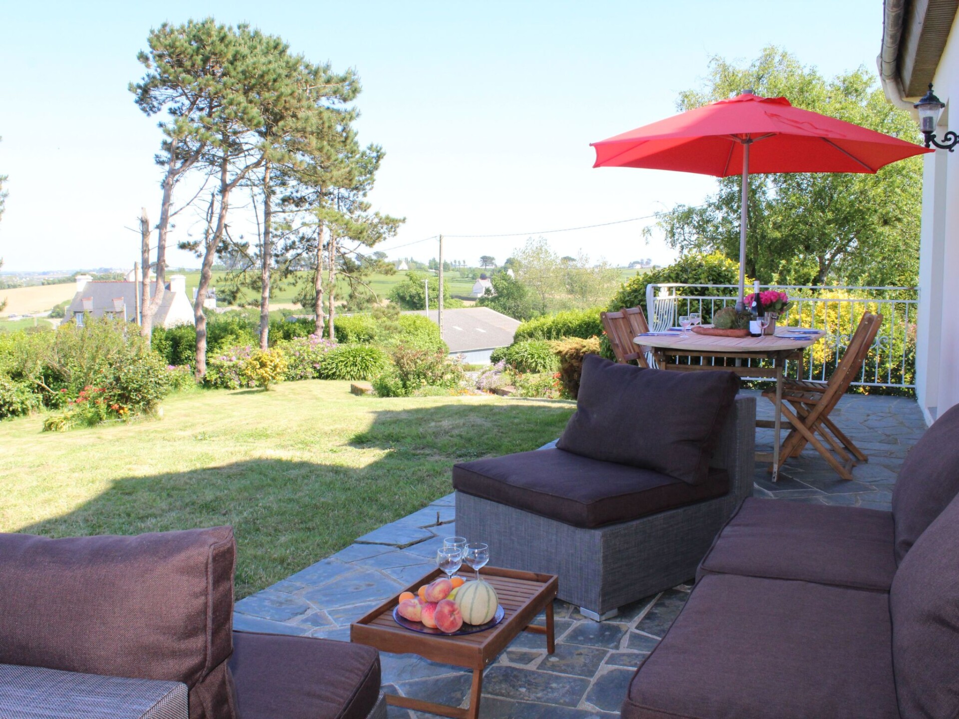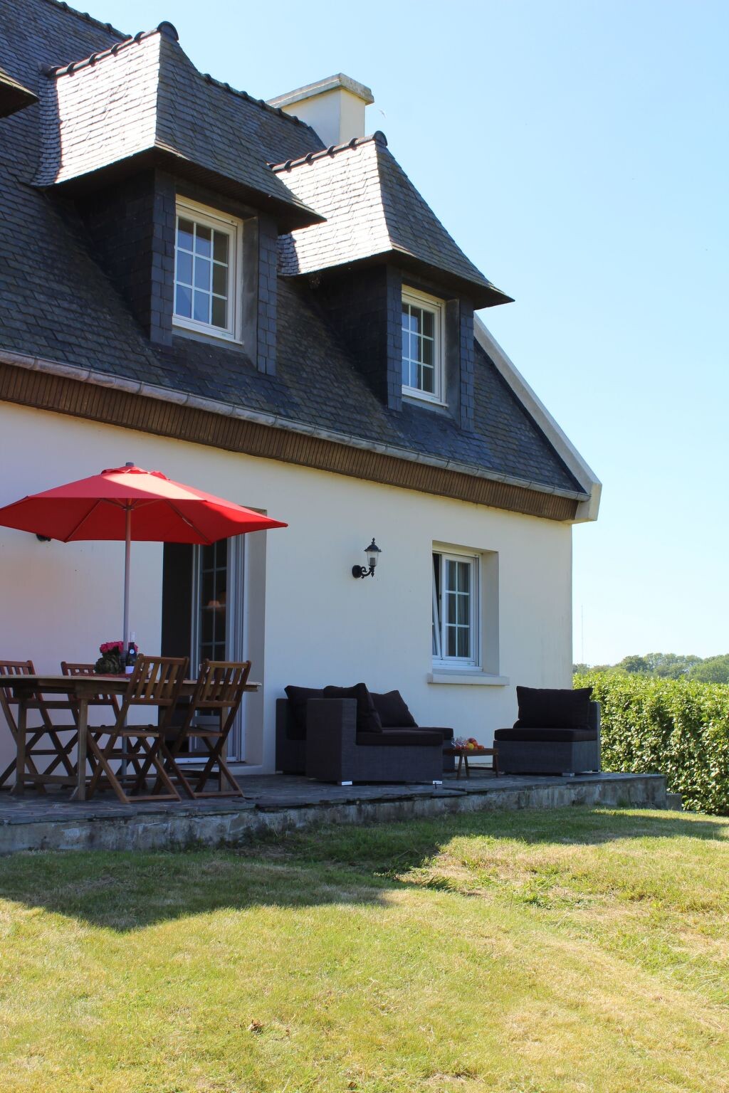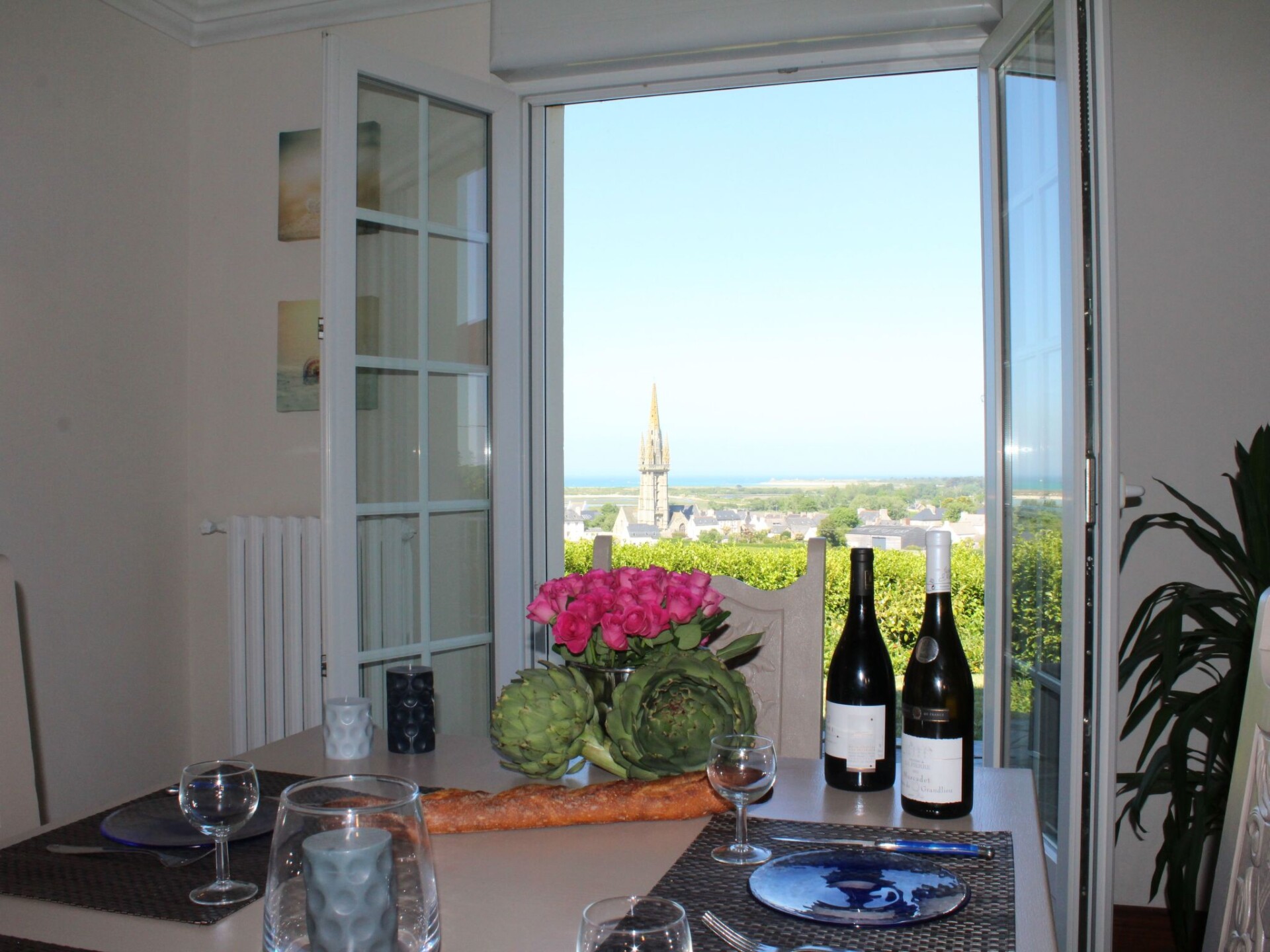 Maximaal 3 huisdieren/honden toegestaan. We love Brittany, especially the beautiful, large bay of Goulven and the impressive dunes and marvellous sandy beaches of Keremma, just nearby. We are happy to answer any questions you may have. If you have any questions on site, you can reach us at any time, and you are welcome to tell us all your concerns in German (or in English or French). We know the area really well, but we have rarely seen such an impressive sea view in a holiday home before - we are still overwhelmed by it.Ideal surroundings for kitesurfers and windsurfers, as well as other water sports fans, great jogging opportunities around our house, paradise for walkers, hikers and geocashers with and without four-legged friends.The villa is located in the immediate vicinity of the bay of Goulven and the beautiful sandy beaches and huge dunes of Keremma.The incredibly beautiful sea view is certainly the most important reason why you would like to spend your holiday in this pretty, typically Breton holiday home. But not to be sneezed at is the beautiful large garden around the house (dogs are very welcome - please note that there is no closed fencing around the property). The owner has renovated all 5 bedrooms and the bathroom on the upper floor with a lot of individualism. The house offers ample space for a maximum of 8 people. There are 5 beautiful bedrooms (3 doubles and 2 singles), two bathrooms and a large, open-plan dining and living area with a wood-burning stove and cosy sofas. From there you have direct access to the garden and the large panoramic terrace. The holiday home is accessed from a large driveway and the courtyard offers ample parking. The holiday home Ty Coz Castel is very close to the sea (approx. 500m) and not far from the beautiful dunes of Keremma and the fine sandy beaches. From the holiday home you always have a direct view of the sea and your beautiful garden. The beautiful holiday home is in a very, very quiet location on a hill in the municipality of Goulven in Finistère. The sea (the bay of Goulven), the restaurant, the crèperie and a small supermarket are all within walking distance (approx. 500 metres). The hotel "la Butte" with two great restaurants (one with a Michelin star) is just 2 kilometres away, but the most important is the Fournil - in my opinion the best bakery far and wide. Those who enjoy wellness will find a luxurious wellness area here. This wellness area is also open to external guests for a fee.When we were asked by the owner to view the house and add it to our agency's portfolio, we immediately fell in love with this typical Breton house. The sea view is truly unique. The spark was immediate and of course we never even remotely considered not offering the house. We are still delighted with this holiday home, which is why we put so much heart and soul into looking after this fantastic holiday property.It is rare to find such a fantastic sea view from a holiday home in Finistère. You could say that this is a truly unique feature of this beautiful holiday home. Just 500 metres away, you are standing on the magnificent bay of Goulven by the sea. And the magnificent beaches of Keremma and Plouneour Très are made of the finest sand and the water is a romantic turquoise colour when the sun shines. Even eight people have plenty of space in your holiday accommodation. Your marvellous, large garden in front of the panoramic terrace. Not every holiday home has such a quiet location and is just a short walk to the village. Not to mention the possibility of using an elegant and large wellness oasis in the nearby hotel for a fee.This beautiful typical Breton holiday home with the best sea view in the region is in a very quiet location not far from the sea, surrounded by greenery in a wonderful natural landscape in the municipality of Goulven in Finistère. The bay of Goulven lies at your feet and offers a breathtaking sea view, with a huge turquoise-coloured sea right in front of you at high tide and under the sun.Those who enjoy wellness can reach the luxurious wellness area of the nearby hotel "La Butte" after approx. 2 km. This wellness area is open for a fee and is also open to guests from outside the hotel.The sea and the bay of Goulven can be reached on foot in approx. 500 metres.The impressive dunes of Keremma can be reached very quickly from the holiday home (approx. 1 km away). Just behind it is the beautiful beach of fine sand; it is certainly one of the most beautiful in the North Finistère. It is not unusual to see turquoise-coloured, clear water. The sunsets are also breathtakingly beautiful and colourful!When the water is up and the wind is blowing, you can often watch kite and wind surfers. If you don't surf yourself, you should keep an eye on this impressive sport.Our house is located in the climatically unique Breton Finistère, on a small hill directly on the bay of Goulven. You can even walk to a restaurant and a nice crèperie, both about 500 metres from the house.The harbour town of Brest can be reached quickly by car and is about 30 km south-west of 'COZ CASTEL'.The harbour town of Brest not only offers shopping facilities and restaurants, but also the famous 'Oceanopolis' (the aquarium adventure park), which is located next to the marina and which you should definitely visit.In addition to Brest, the small ferry town of Roscoff with its old British granite cottages also promises the possibility of a successful excursion. The large ferries (across the English Channel) to nearby England or even as far as Ireland start and land here. Roscoff is about 35 kilometres east of Plouider. If you don't want to book a crossing to England straight away, visit the 'Ile de Batz', where the boats sail constantly.There are several small towns in the surrounding area, such as Plouescat, Lannilis and Lesneven. Visit the weekly markets there!The location in Finistère is a guarantee for fresh fish and wonderful seafood. The famous oysters of 