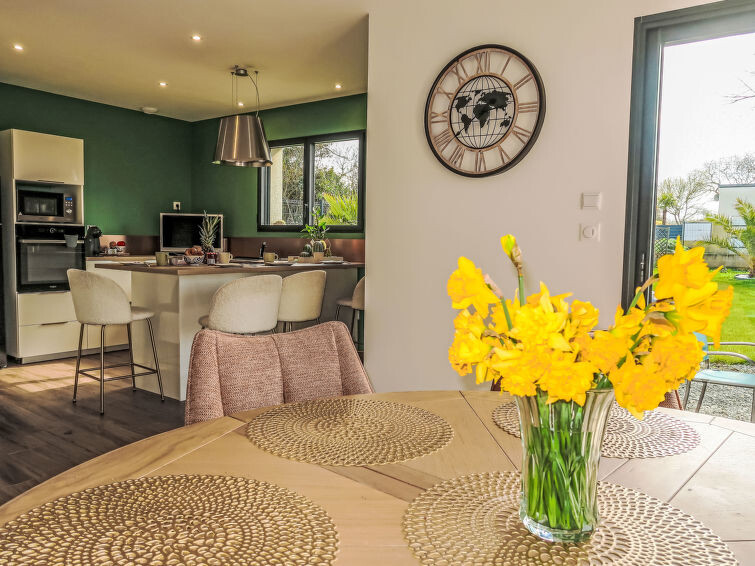 "Ty Heol", huis 4-kamers 117 m2, op het zuiden gelegen. Ruim en licht, comfortabel ingericht: hal. Groot woon-/eetkamer met eettafel en TV (Flatscreen TV). Uitgang naar de tuin. Open keuken (oven, afwasmachine, 3 inductiekookplaten, broodrooster, waterkoker, magnetron, diepvriezer, elektrische koffiemachine, kookeiland). Douche, aparte WC, dubbele wastafels. Vloerverwarming. Bovenverdieping: 2 kamers, elke kamer heeft 1 2-pers bed (140 cm, lengte 190 cm). 1 kamer met 1 2-pers bed (160 cm, lengte 190 cm). Douche, aparte WC, dubbele wastafels. Terrasmeubelen, barbecue (verrijdbaar), ligstoelen (4). Uitzicht in de verte op zee. Ter beschikking: wasmachine, haardroger. Internet(WiFi), gratis). Rookvrij huis. Rookmelders. Aanbod door een particulier volgens art. 155, IV van CGI. 22186000304 WG