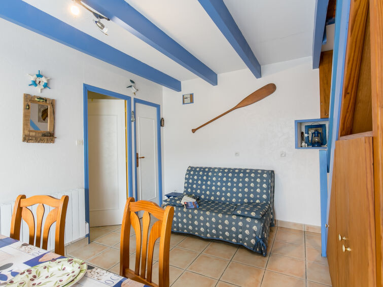"Ty Kerveal", huis 2-kamers 35 m2 op 2 verdiepingen. Doelmatig en met veel hout ingericht: woon-/eetkamer met eettafel, Sat-TV, internationale TV-zenders en stereo-installatie. Uitgang naar het terras. Kleine, open keuken (Gasfornuis, 4 kookpitten (vlammen), broodrooster, waterkoker, diepvriezer, elektrische koffiemachine, combimagnetron). Douche, aparte WC. Elektrische verwarming. Bovenverdieping: (steile trap), 1 open kamer met afgeschuinde daken met 1 2-pers bed. Terras 30 m2. Terrasmeubelen, barbecue (verrijdbaar), ligstoelen (2). Ter beschikking: wasmachine, strijkijzer. Rookvrij huis. Rookmelders. 29273 0000 03KJ