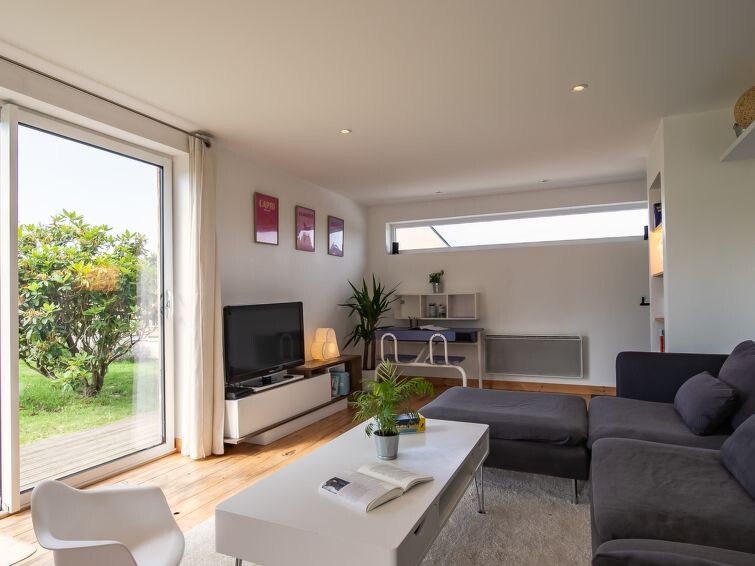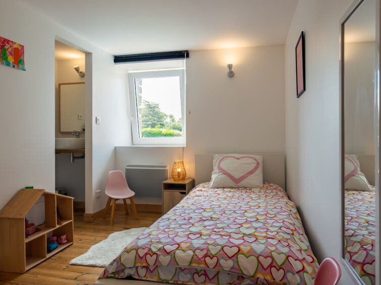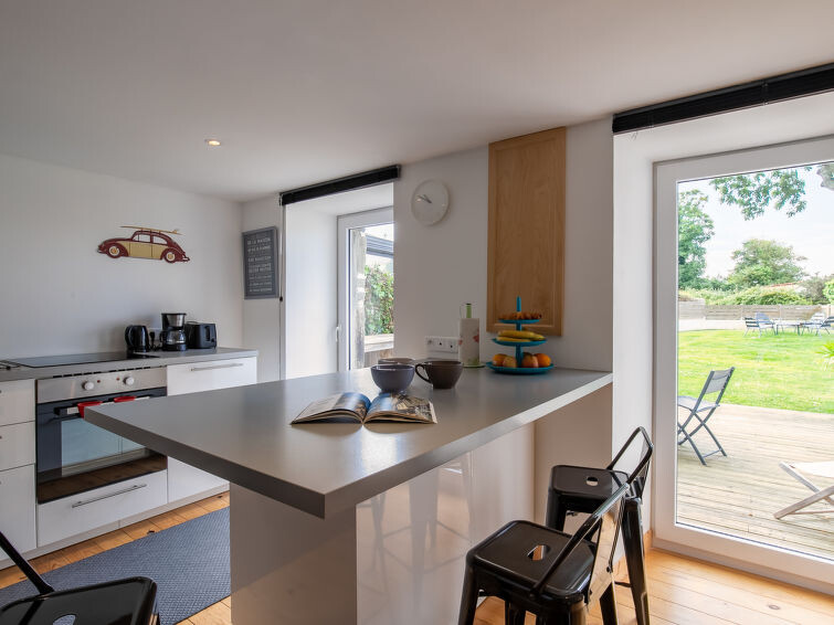"Ty Louen", huis 5-kamers 139 m2 op 3 verdiepingen. Ruim en licht, mooi en smaakvol ingericht: groot, open woonkamer 29 m2 met Digitale TV en Flatscreen TV. Uitgang naar de tuin, naar het terras. Open keuken 25 m2 (oven, afwasmachine, 4 inductiekookplaten, broodrooster, waterkoker, magnetron, diepvriezer, elektrische koffiemachine, pads voor de koffiemachine (Nespresso) extra) met bar, eettafel. Uitgang naar het terras. Aparte WC. Bovenverdieping: 1 kamer met 1 2-pers bed (160 cm, lengte 200 cm), douche. 1 kamer met 2 bedden (90 cm, lengte 200 cm), douche. 2e Verdieping: 1 open kamer met afgeschuinde daken met 1 2-pers bed (160 cm, lengte 200 cm), douche/WC. Elektrische verwarming. Groot terras 20 m2, op het zuiden gelegen. Terrasmeubelen, barbecue (verrijdbaar), ligstoelen (2). Ter beschikking: wasmachine, droger, strijkijzer, kinderstoel, kinderbed tot 2 jaar, haardroger. Internet (WiFi, gratis). Rookvrij huis. Maximaal 1 huisdier/hond toegestaan. Rookmelders. Aanbod door een particulier volgens art. 155, IV van CGI.
