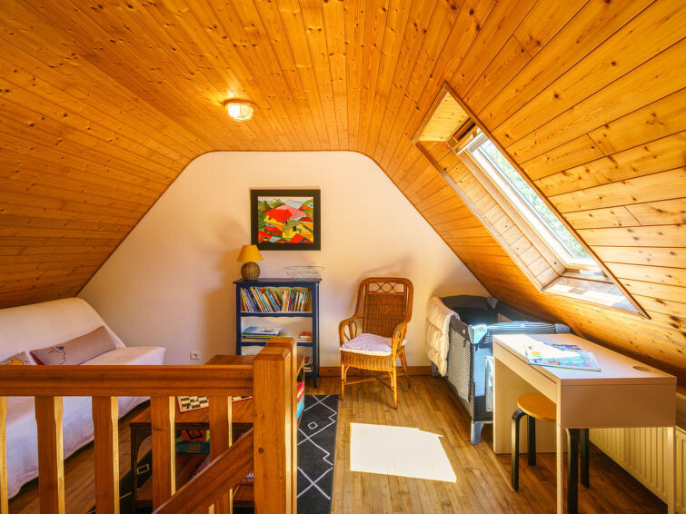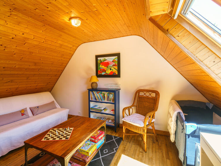 "Ty Naïg", huis 3-kamers 80 m2 op 2 verdiepingen. Mooi en gezellig ingericht: woon-/eetkamer met TV (Flatscreen TV). 1 kamer met 1 2-pers bed (160 cm, lengte 200 cm). Open keuken (oven, afwasmachine, 3 inductiekookplaten, broodrooster, waterkoker, magnetron, diepvriezer, elektrische koffiemachine) met eettafel. Uitgang naar de tuin. Douche, aparte WC. Gas-verwarming. Bovenverdieping: met afgeschuinde daken, 1 kamer met 2 bedden (90 cm, lengte 200 cm). Open salon met afgeschuinde daken. Terras 10 m2, op het westen gelegen en op het noorden gelegen. Terrasmeubelen, barbecue (verrijdbaar), ligstoelen (2). Ter beschikking: wasmachine, strijkijzer, kinderstoel, kinderbed, haardroger. Internet (WiFi). Rookvrij huis. Maximaal 1 huisdier/hond toegestaan. Rookmelders. Aanbod door een particulier volgens art. 155, IV van CGI.