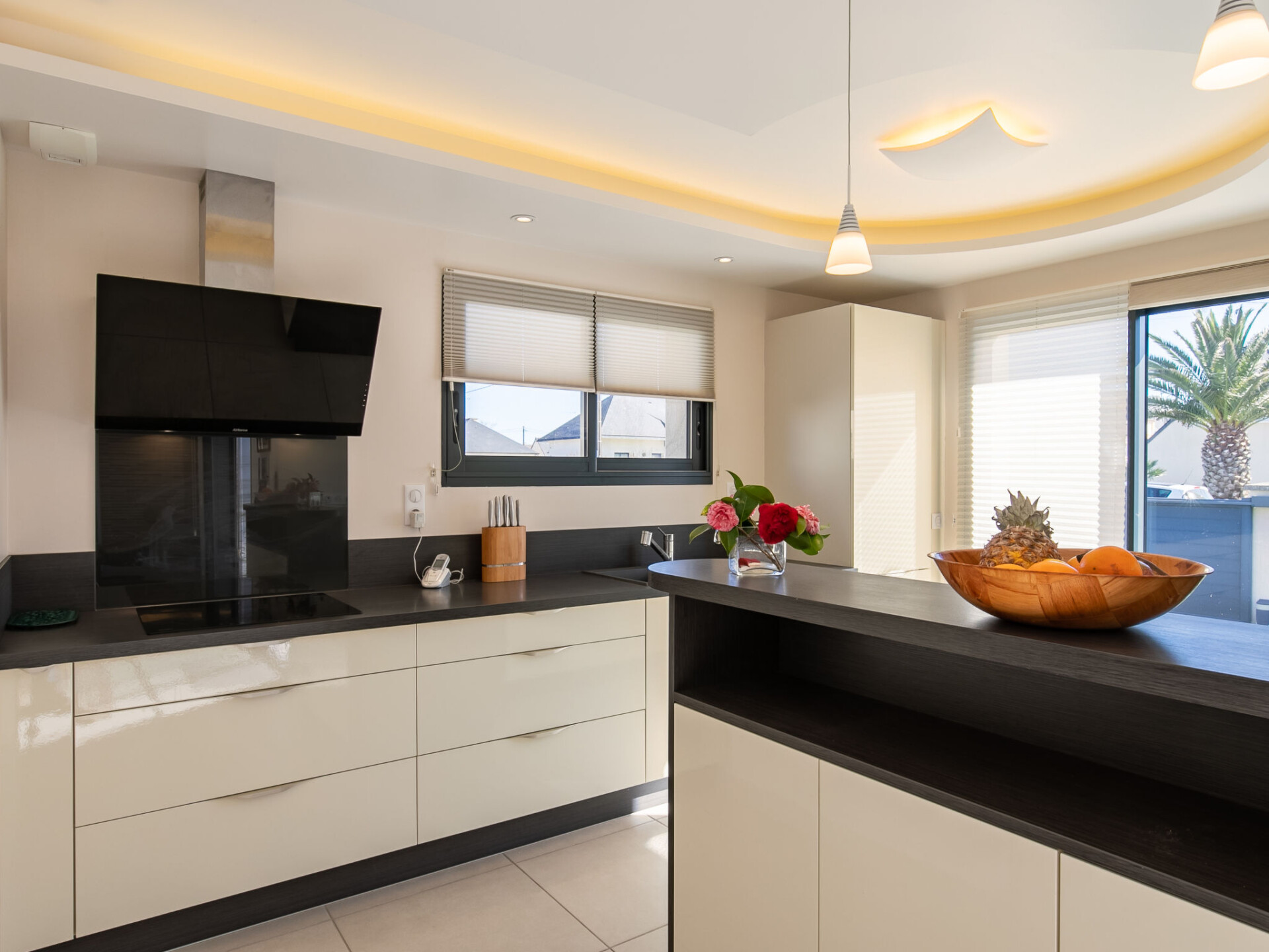 Moderne huis "Ty Pleine", bouwjaar 2016. 800 m van het centrum van Le Guilvinec, 5 km van het centrum van Penmarch, 13 km van het centrum van Pont l'Abbé, in een woonwijk, 300 m van zee, van het strand. Voor alleengebruik: terrein 600 m2, verzorgde tuin met gazon. Buitendouche. Berging beschikbaar. Parkeerplaats (voor 2 auto's) op het terrein. Winkel 800 m, bushalte 2 km, zandstrand "Greve Blanche" 300 m. Zeilschool 1 km. Attracties in de buurt: Phare d'Eckmühl 8 km, pointe de la Torche 9 km.