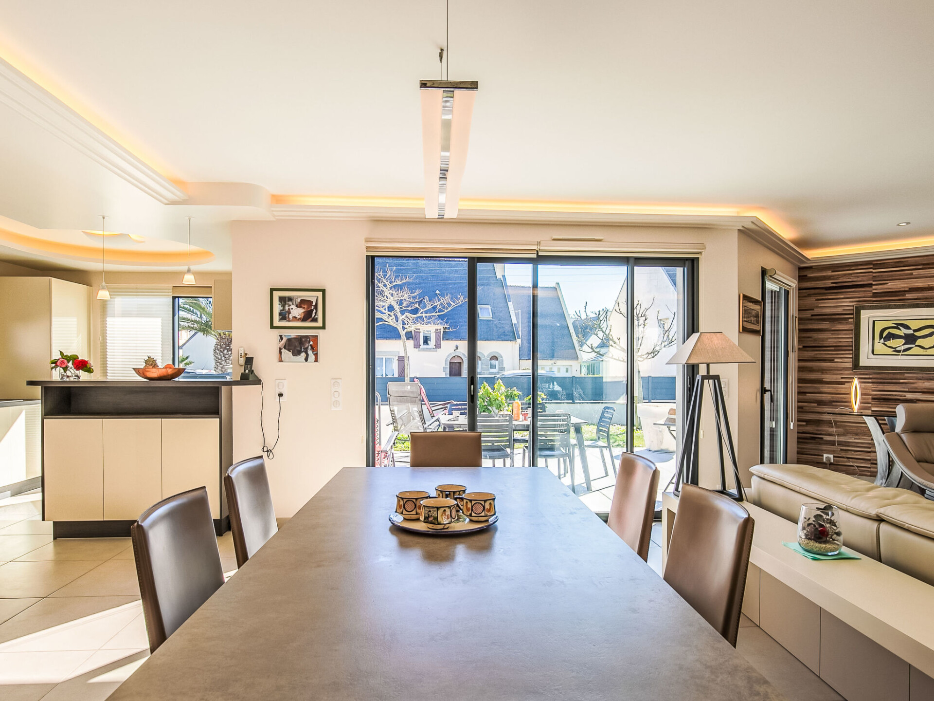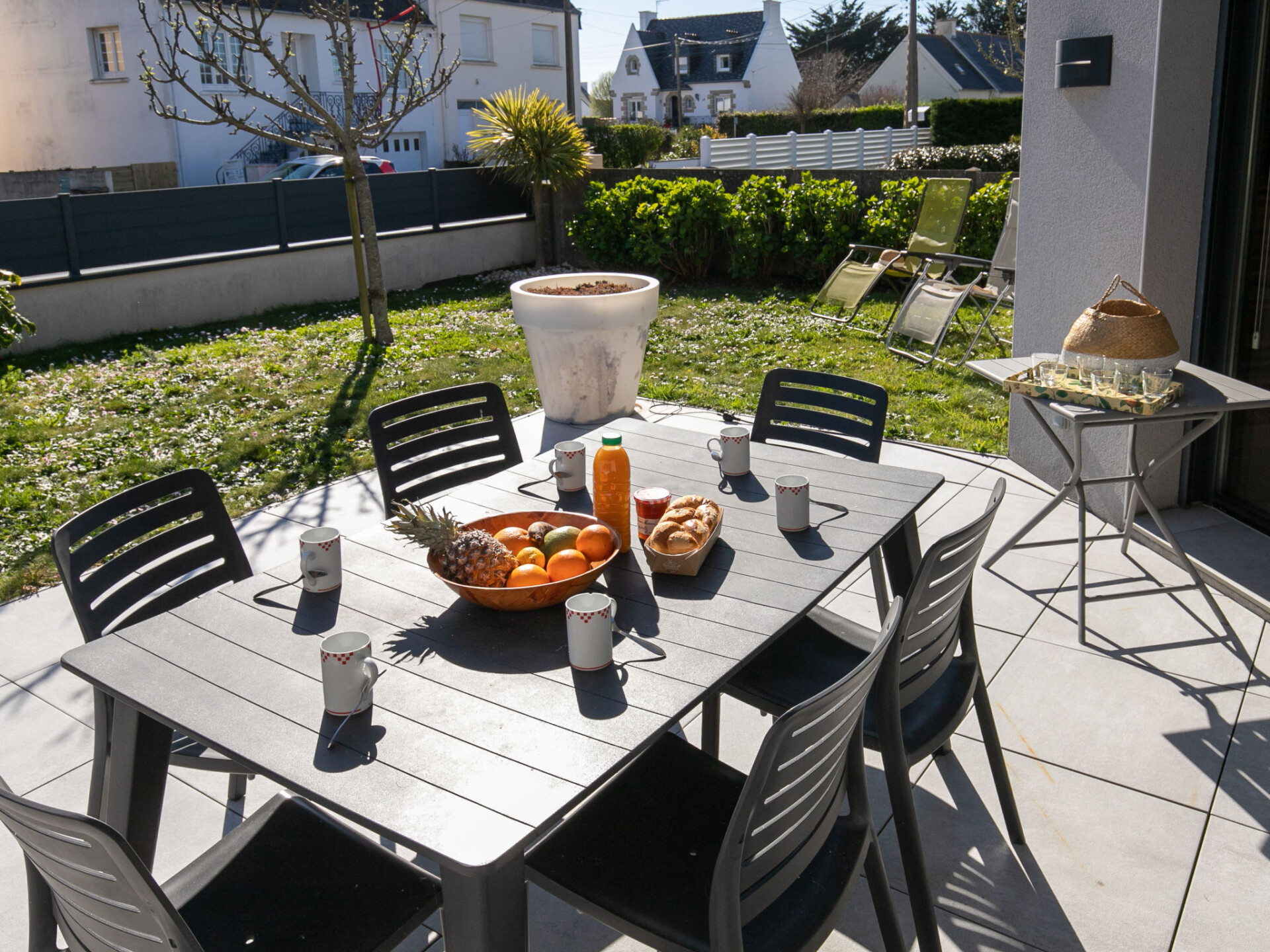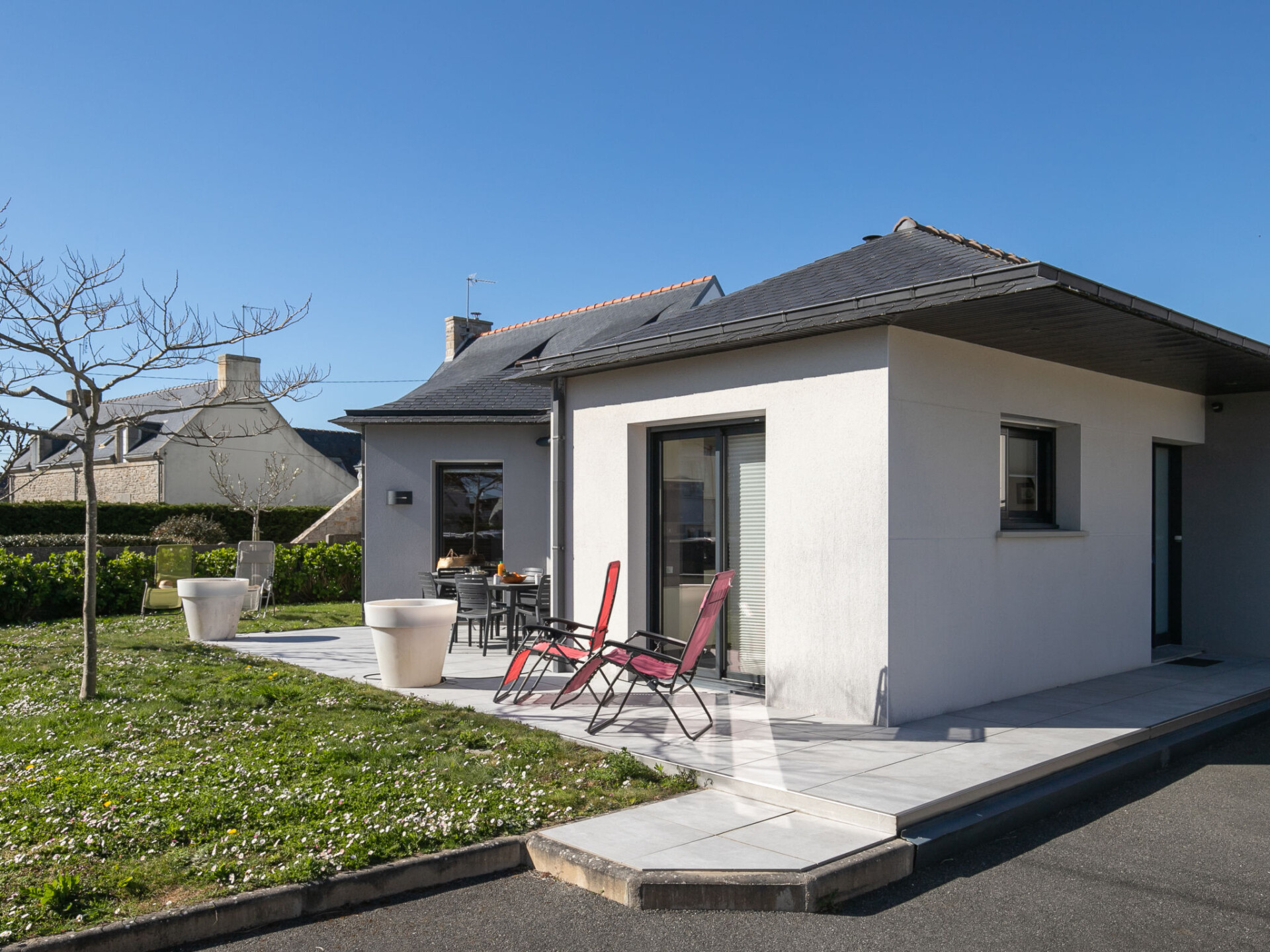 "Ty Pleine", huis 4-kamers 155 m2. Comfortabel en smaakvol ingericht: woon-/eetkamer met eettafel, Sat-TV en internationale TV-zenders (Flatscreen TV). Uitgang naar het terras, op het zuiden. 1 kamer met Kleedkamer met 1 2-pers bed (160 cm, lengte 200 cm), bad/douche. Uitgang naar het terras. 2 kamers, elke kamer heeft 1 2-pers bed (160 cm, lengte 200 cm). Open keuken (oven, afwasmachine, 3 inductiekookplaten, broodrooster, waterkoker, magnetron, diepvriezer, elektrische koffiemachine). Uitgang naar het terras. Douche, 2 aparte WC's. Verwarming. Parketvloeren. Terras, op het zuiden gelegen terras, op het zuidwesten gelegen. Terrasmeubelen, elektrische barbecue, ligstoelen (6). Ter beschikking: wasmachine, droger, strijkijzer, haardroger. Internet (Internet (WiFi), gratis). Rookvrij huis. Rookmelders. Aanbod door een particulier volgens art. 155, IV van CGI.