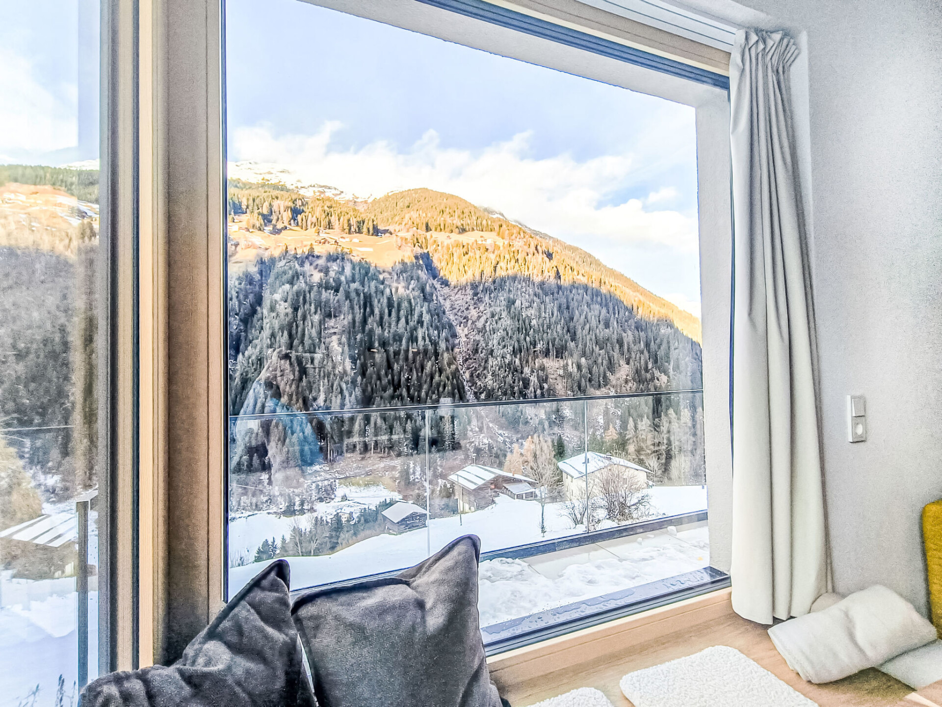 "Silvretta", appartement 2-kamers 45 m2, souterrain. Comfortabel en smaakvol ingericht: hal. Woon-/slaapkamer met 1 2-pers divanbed en TV (Flatscreen TV). 1 2-pers. kamer. Open keuken (oven, afwasmachine, 4 keramische glas kookplaten, broodrooster, waterkoker, magnetron, diepvriezer, elektrische koffiemachine, pads voor de koffiemachine (Dolce Gusto) extra). Douche/WC. Vloerverwarming. Parketvloeren, natuurstenen vloeren. Balkon 22 m2. Balkonmeubilair. Zeer mooi panoramazicht op de bergen en de plaats. Ter beschikking: Internet (WiFi, gratis). Niet rokers woning. Rookmelders, brandblusser, geen lift.