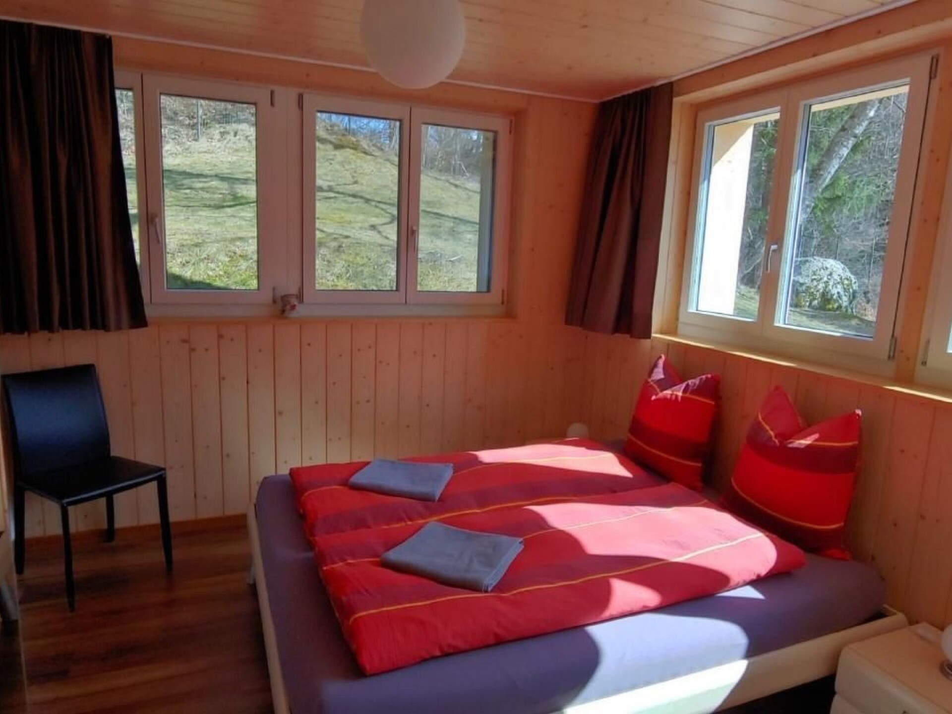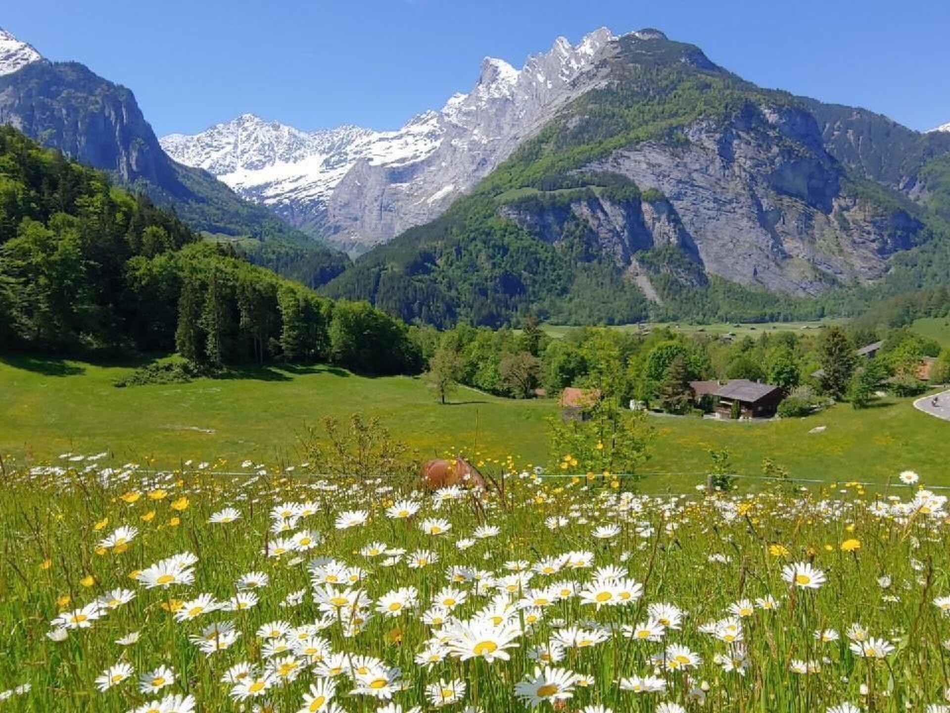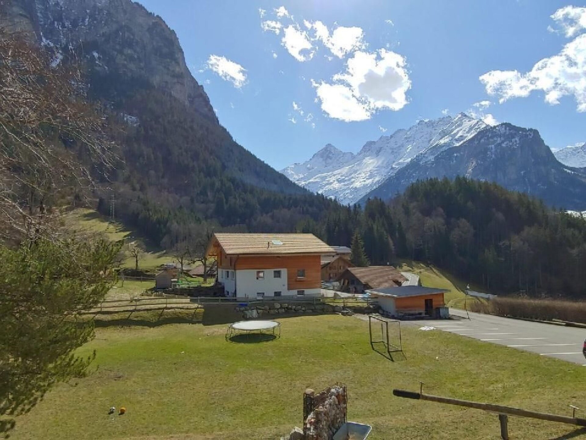 Renovated rural 2-storey building (former school) with a breathtaking view of the mountains of the Bernese Oberland. facing south, 840 meters above sea level 11 rooms 8 bathrooms Ground floor: 1 apartment with two bedrooms, 1 bathroom with bathtub, fully equipped kitchen and living room with garden and mountain views. 4 double bedrooms with shower Conservatory with fireplace, large wooden dining table, coffee and tea, summer veranda. First floor: 1 apartment with three bedrooms including a 4 bed room and 2 double bedrooms, a bathroom with shower and a bathroom with bathtub, fully equipped kitchen and large living room with mountain views. 1 apartment with two bedrooms for 2 people each 1 bathroom with bathtub, fully equipped kitchen and living room with garden and mountain views. The entire building is equipped with marble floors, heated hardwood parquet, temperature control, wooden ceilings and walls as well as sound and heat resistant windows. Washer and dryer are available in a washroom. There are 2 grills available in the garden. Non smoking building.Nearby sports facilities: Basketball, Mountain climbing, Football area, Ice skating, Hunting facilities, Paragliding, Bike tours, Rafting, Horse stalls (guests), Indoor riding arena, Riding possibilities, Toboggen, Rowing, Skiing (alpin), Cross-country skiing, Sport center, Squash, Surfing, Tennis, Water skiing, Sailing