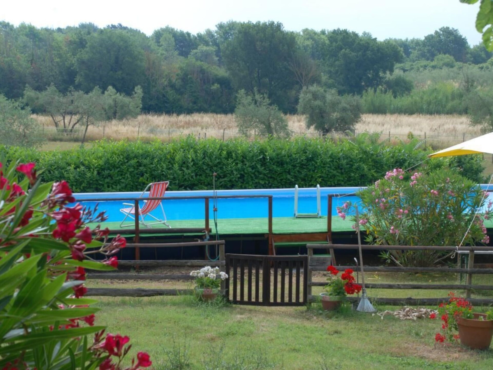 Maximaal 3 huisdieren/honden toegestaan. The Podere Conte Ràcani farm is located 400 m away. above sea level, on the hills overlooking the left bank of the Tiber, 10 km from the Attigliano-Bomarzo toll booth on the A1 motorway.It retains the name of the ancient owners, the Ràcani Counts, a noble Umbrian family whose coat of arms featured two lizards (ràcani in dialect), still present in the farmhouse logo.Next to the main farmhouse, three apartments have been created by renovating the stables and granary, respecting the characteristics and materials of the local tradition.Surrounding it are olive groves, pastures, cultivated fields, holm oak forests, centenary oaks and splendid typical Umbrian landscapes.Five hectares (twenty acres) of young hazelnut trees, two hectares (eight acres) of Bamboo and young olive trees have been planted to strengthen the farm's production.There is no shortage of classic farm animals: chickens, ducks, horses and dogs.Like every apartment on our farm, LA STALLA also has independent access and is spread over an area of 56 m2.It is located on the ground floor with a patio and external veranda equipped with table and chairs.In front of the apartment there is a space where you can possibly have a barbecue (wood included in the price) or place deckchairs for a moment of relaxation.From the patio you enter the living room which has a wood-burning fireplace (included in the price), a fully equipped kitchenette, a dining table with chairs and a sofa.On the left of the entrance there are the bedrooms: one double and one twin which can eventually become a second double.The bathroom has a bidet and shower. The apartment is furnished with all the dishes and linens (bed, bathroom and kitchen) necessary for a pleasant stay.In summer the swimming pool (5.50 x 11.50 x 1.20 m) and table tennis represent a pleasant relaxing break to be alternated with visits to some of the most precious cities of art in Umbria, such as Orvieto , Narni, Todi, Spoleto, Spello, Viterbo and Bomarzo all no more than an hour's drive from the farmhouse.For those who wish to practice horse riding, just 5 km from the farm there is a well-equipped riding school with instructor for children and adults.We also have some bicycles available to our guests for splendid walks to visit the wonderful Umbrian countryside and the nearest places. IT055004B501007707