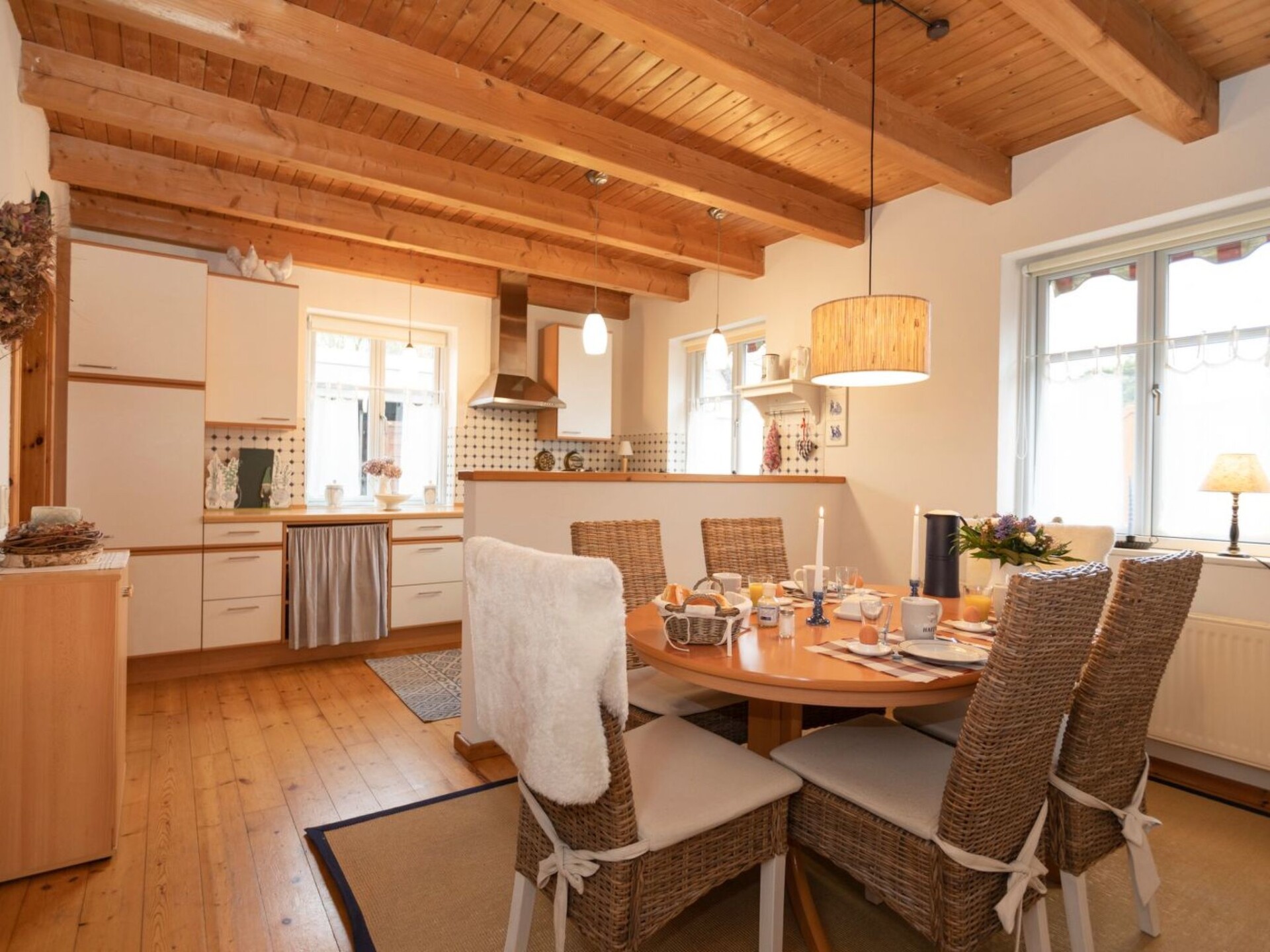 Maximaal 2 huisdieren/honden toegestaan. Welcome to "Uns moi Huus" - or, as we say here on the coast: Moin! Discover our family and dog-friendly holiday home in picturesque Varel-Dangastermoor. Situated in a quiet residential area and only 4 km from the beach, our house promises an unforgettable stay. With its cosy and inviting atmosphere, it is the perfect retreat for anyone looking for pure relaxation and nature.The ground floor of our house opens onto a spacious hallway that leads into a generous main living area. This consists of a living room with a wood-burning stove for cosy evenings, a fully equipped kitchen and a dining area. Two comfortable bedrooms and a spacious daylight bathroom with bath and shower round off the offer. The charming wooden staircase takes you to the upper floor, which has a small second centre consisting of a dining and cooking area, another cosy living room, two bedrooms and an additional daylight bathroom.The outside area of our house invites you to linger and relax in the large fenced garden. Two terraces with shading options, the larger of which is covered and sheltered from the wind, offer the ideal place for relaxing hours outdoors. The small natural pond in the garden is an invitation to all those who like to observe and switch off in nature.Just a few kilometres away is the gateway to the Wadden Sea World Heritage Site. The district of Dangast enchants with its unique stimulating climate and attractions such as the beach at the old spa centre and the Dangast hermitage, which is famous for its unique sunsets. The traditional family-run Tapken restaurants promise culinary delights, while Captain Wassermeier invites you on exciting trips on the Jantje von Dangast. The surrounding nature is ideal for exploring on hiking and cycling tours along the dyke."Uns moi Huus" is your ideal temporary home. Whether you want to relax in our inviting garden, enjoy the warmth and cosiness of our fireplace or take in the natural beauty of the surroundings - here you will find the perfect blend of relaxation and adventure. Book your stay with us and experience unforgettable days on the North Sea coast.