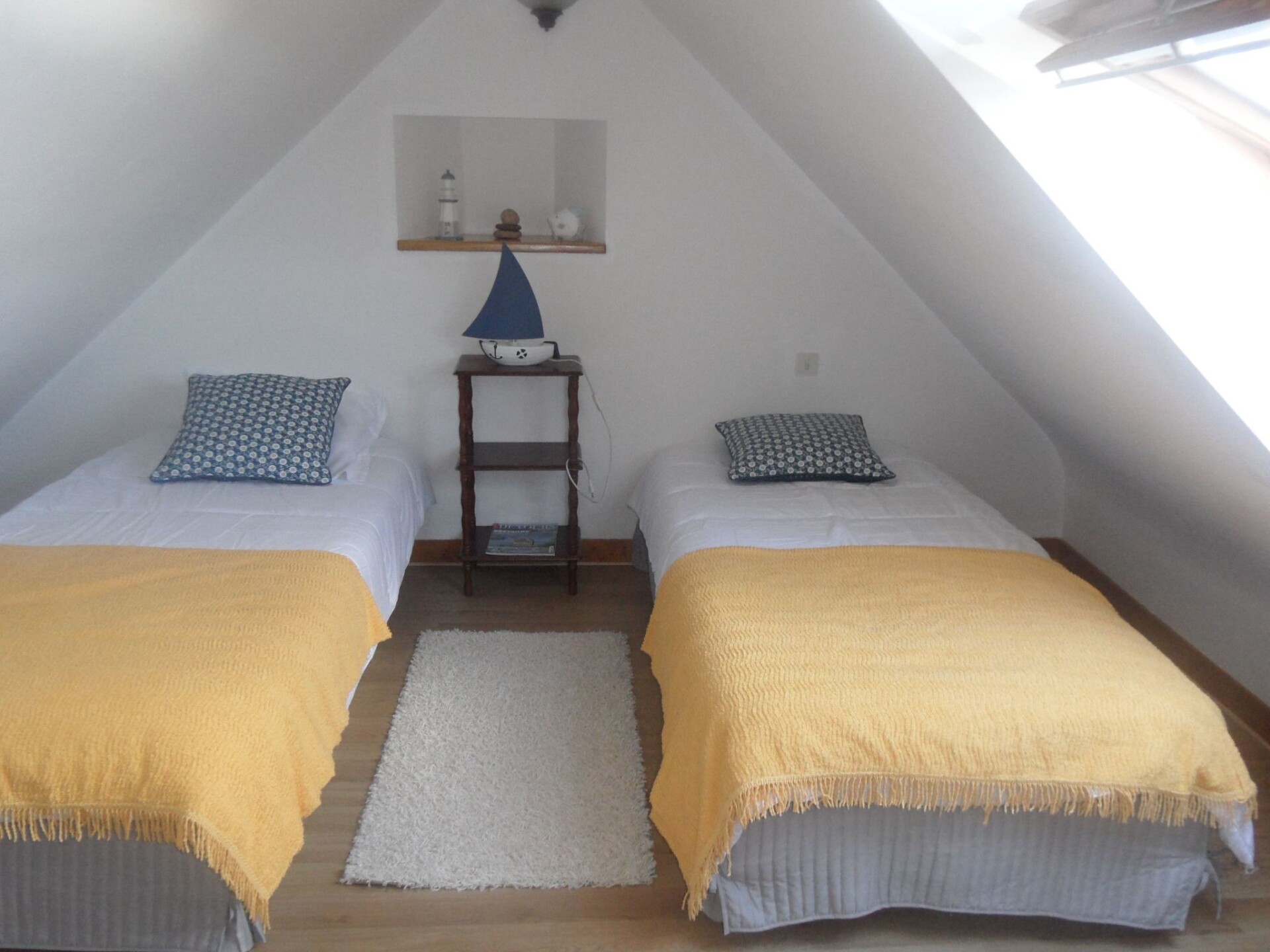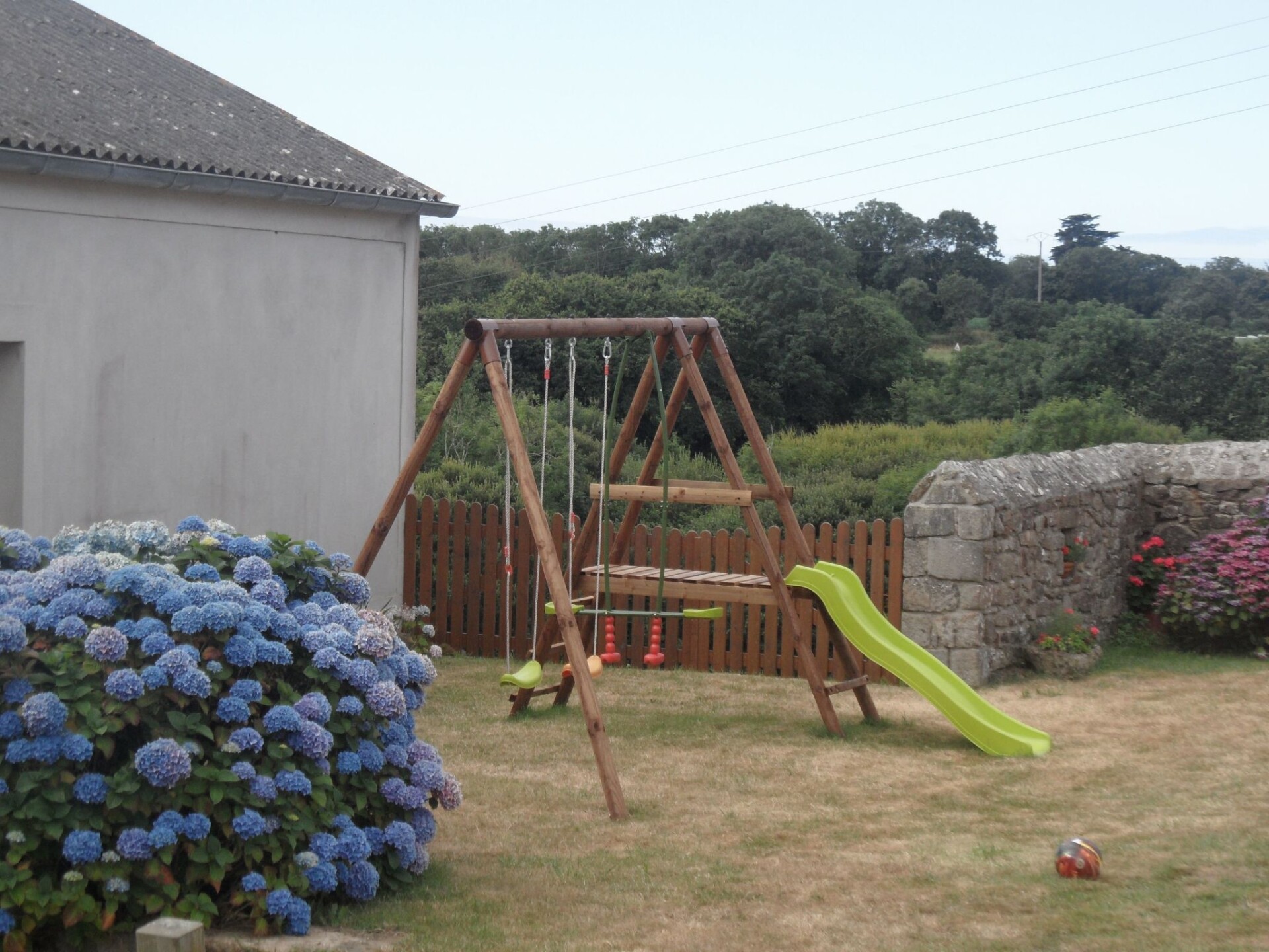 The gîte is located in the commune of Cléden-Cap-Sizun, close to the Pointe du Raz, Pointe du Van, Baie des Trépassées and the GR34 coastal footpaths. Semi-detached gîte of 50 m2 in an old farmhouse, renovated in 1992, adjoining dwellings, not inhabited.Very quiet village.The accommodation comprises a living room with fitted kitchen area, oven, dishwasher, microwave. Washing machine in adjoining room, shared with the other gîte. On the first floor, 1 bedroom with 1 double bed, 1 bathroom with bath, on the second floor, a bedroom with 2 single beds. Electric heating in all rooms. Outside, garden furniture, barbecue, swing shared with the other gîte. Private south-facing terrace with garden furniture and barbecue, unfenced area overlooking the courtyard.Bakery 3 km awaySupermarket 4 kms awayAudierne 9 kms away (all shops, bike hire)