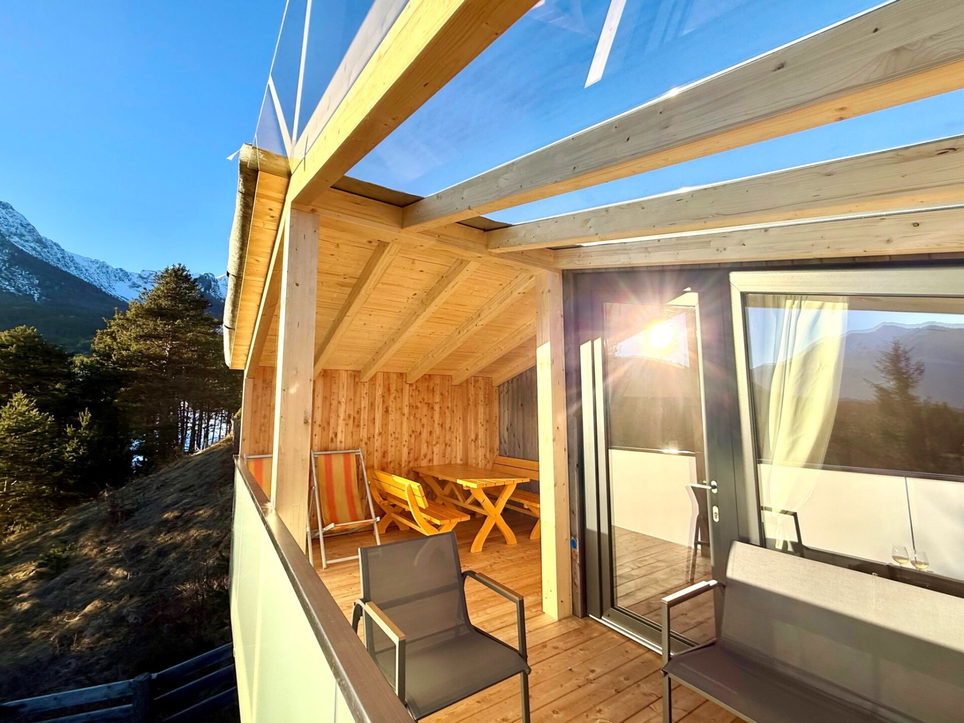 Moderne, luxueuze bungalow "SKYLIGHT Chalet". 5 huizen in de plaats. In de wijk Hoch-Imst, 1.4 km van het centrum van Imst, zonnige ligging tegen een helling, 400 m van het meer, 300 m van het skigebied, aan een doodlopende weg, in het bos. In het huis: centrale verwarming, air-conditioning, wasmachine. Parkeerplaats. Supermarkt 2 km, restaurant 400 m, bushalte "Imst Hochimst" 280 m, treinstation "Imst/Pitztal Bahnhof" 5.5 km, openluchtzwembad 2 km, meer (zwemmen) 400 m. Golfterrein (27 holes) 30 km, tennis 300 m, wandelroutes 400 m vanaf het huis, ski faciliteiten, rodelbaan, langlaufloipe, ijsbaan, kinderspeelplaats 300 m. Attracties in de buurt: Längste Alpenachterbahn der Welt 300 m, Area 47 17 km, Aqua Dom Längenfeld 39 km. Bekende skigebieden kunnen gemakkelijk worden bereikt: Hoch-Imst 300 m, Hochzeiger-Jerzens 19 km, Ötz-Hochötz 21 km. Wandelgebied Starkenberger Panoramaweg 400 m, Rosengartenschlucht 400 m. Vergelijkbare accommodaties kunnen worden geboekt. Object referentie: AT6460.615+500 is gelegen op hetzelfde terrein. In dit complex zijn verder 1 huis, 1 bungalow, 2 chalets te huur.
