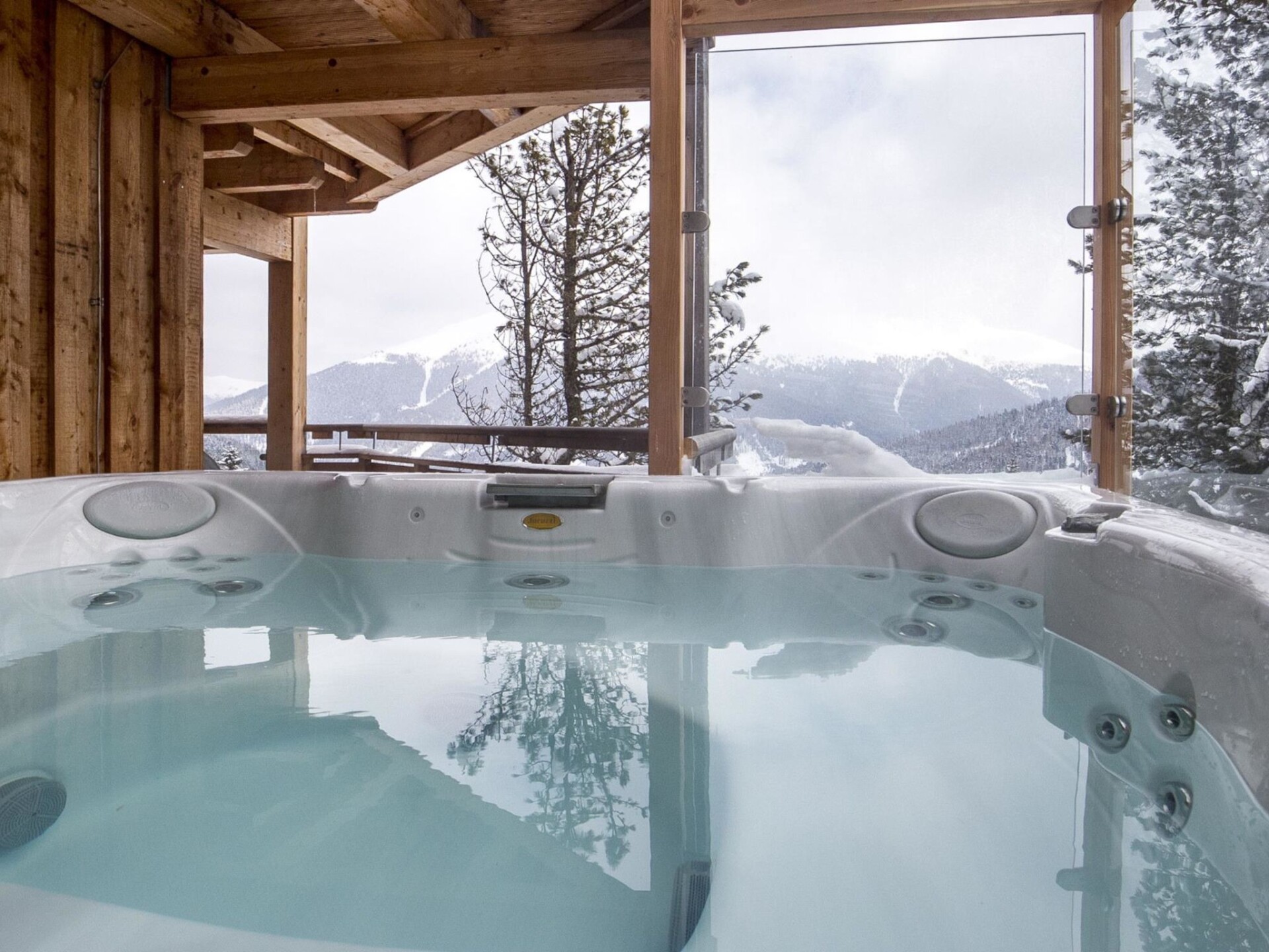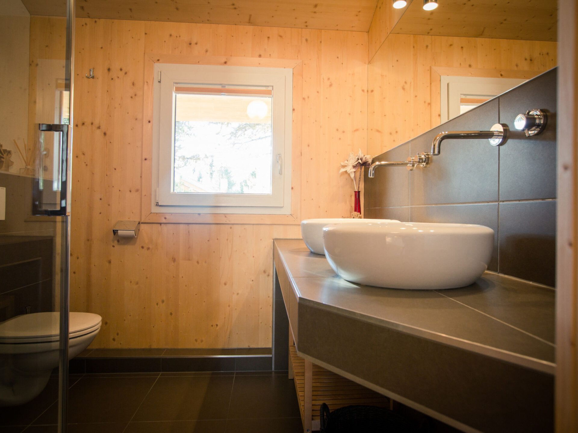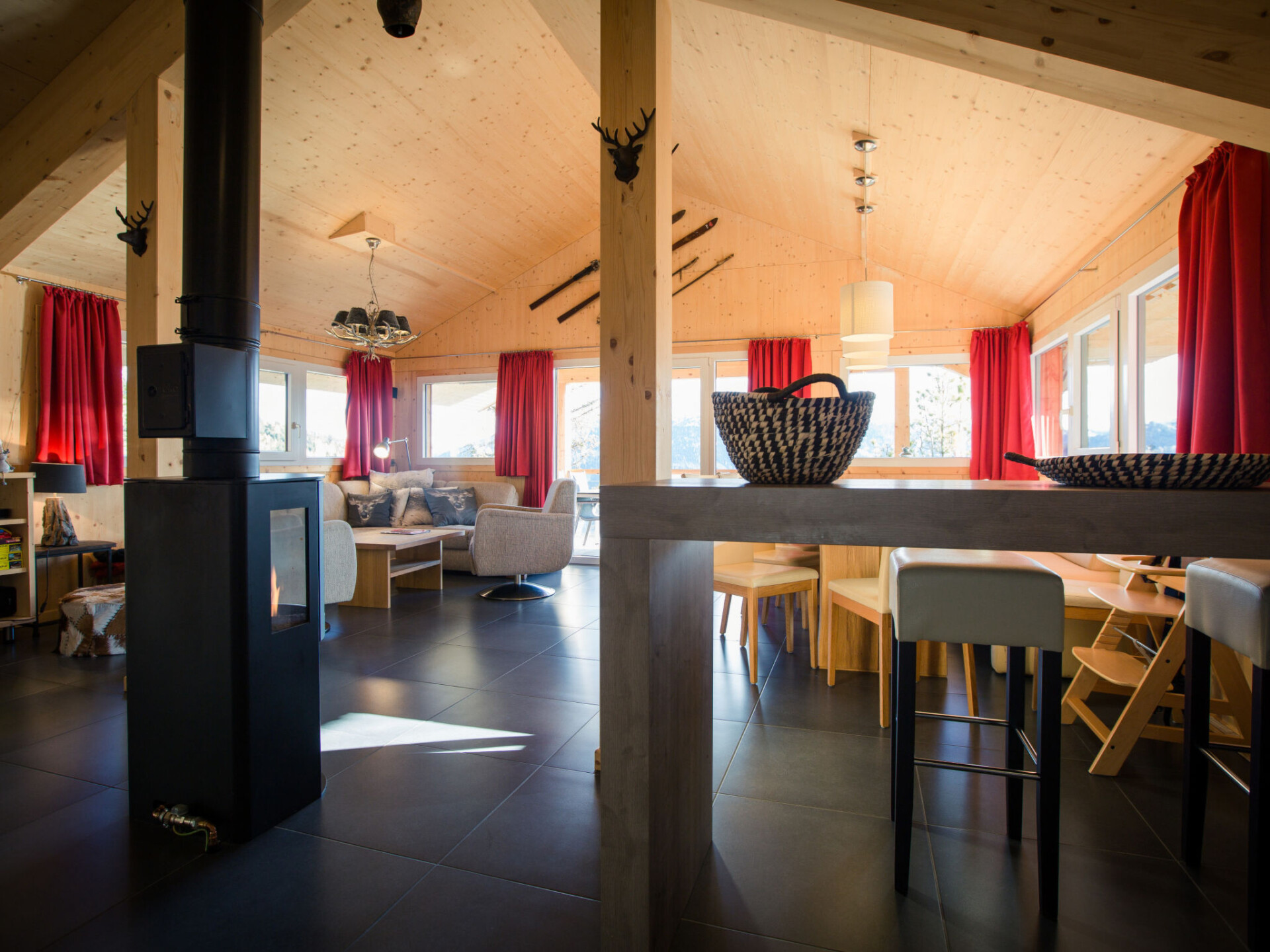 " 48 mit IR-Sauna und Sprudelbad aussen", chalet 6-kamers 120 m2 op 2 verdiepingen. Luxueus en smaakvol ingericht: woon-/eetkamer met eethoek en Sat-TV (Flatscreen TV). Open keuken (oven, afwasmachine, 4 keramische glas kookplaten, broodrooster, waterkoker, magnetron, elektrische koffiemachine). 2 douche/WC's. Bovenverdieping: 4 2-pers. kamers. 1 kamer met 2 x 2 stapelbedden. Bad/WC, douche/WC, Sauna. Balkon. Balkonmeubilair. Mooi uitzicht op de bergen. Ter beschikking: Internet (Internet (WiFi), gratis). Niet rokers woning.