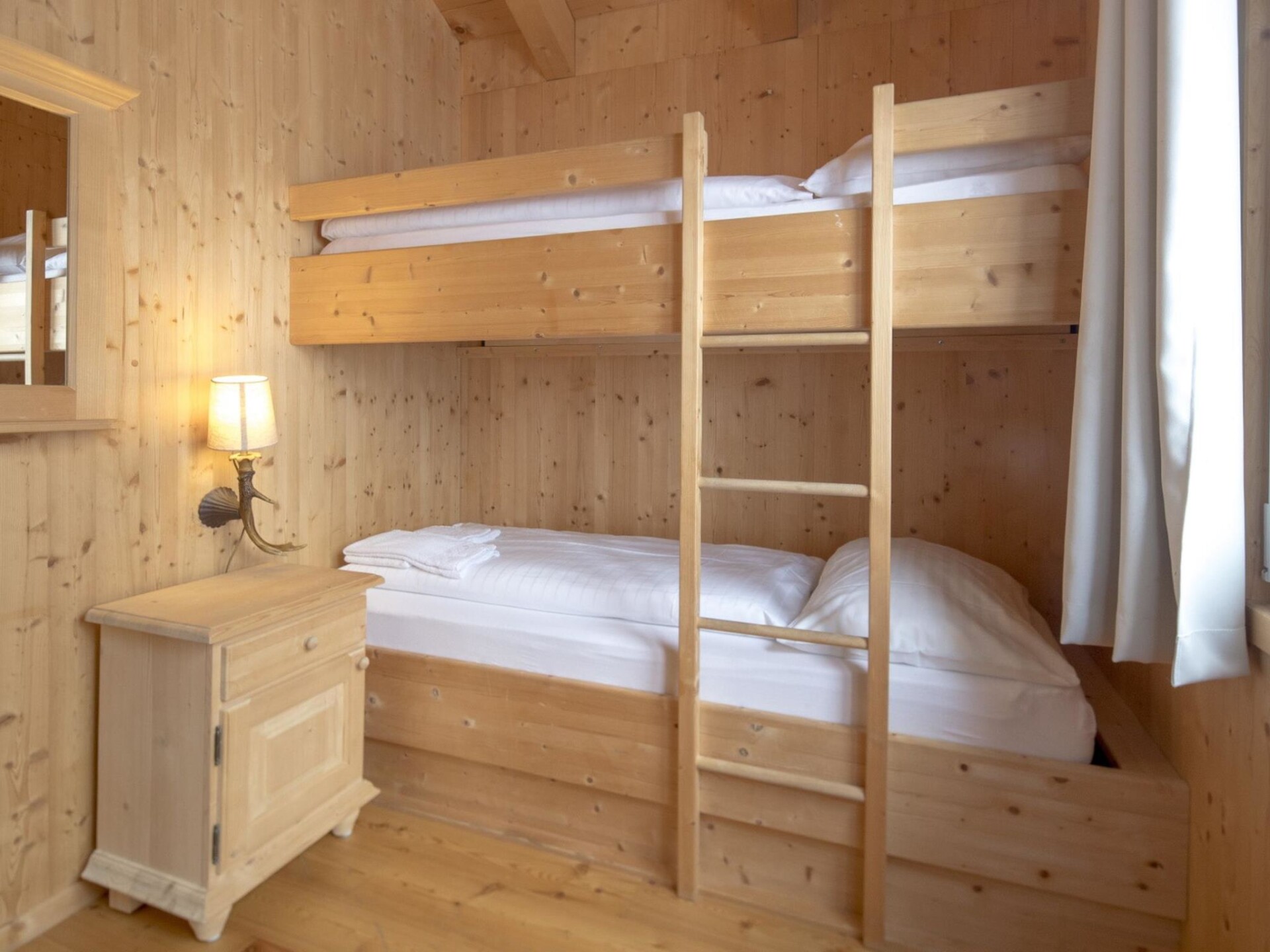 " 7 mit IR-Sauna&Aussensprudelbad", chalet 5-kamers 110 m2. Luxueus en smaakvol ingericht: open woon-/eetkamer met eethoek, Sat-TV en Flatscreen TV. Open keuken (oven, afwasmachine, 4 keramische glas kookplaten, magnetron, diepvriezer, elektrische koffiemachine). Douche/WC. Bovenverdieping: 2 2-pers. kamers. 2 kamers, elke kamer heeft 1 x 2 stapelbedden. Bad/douche/WC, hydro massage bad, Sauna. Balkon, groot terras. Terrasmeubelen. Uitzicht op de bergen. Ter beschikking: Internet (Internet (WiFi), gratis). Rookvrij huis. De beschrijving betreft een voorbeeld van dit type woning in dit complex. De sauna is een infrarood sauna. De kamerinrichting kan variëren.
