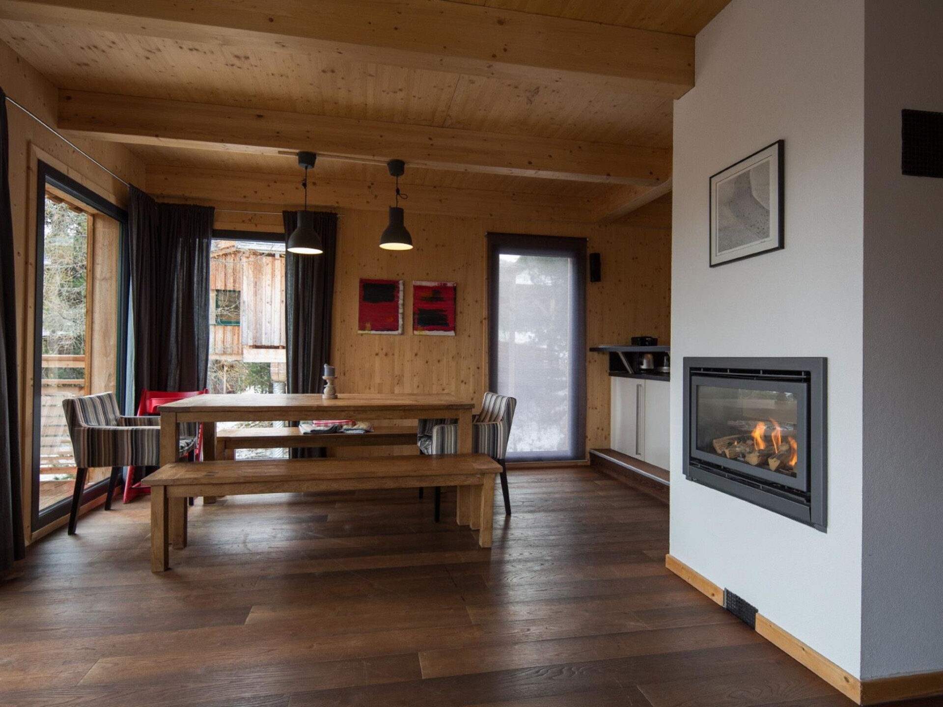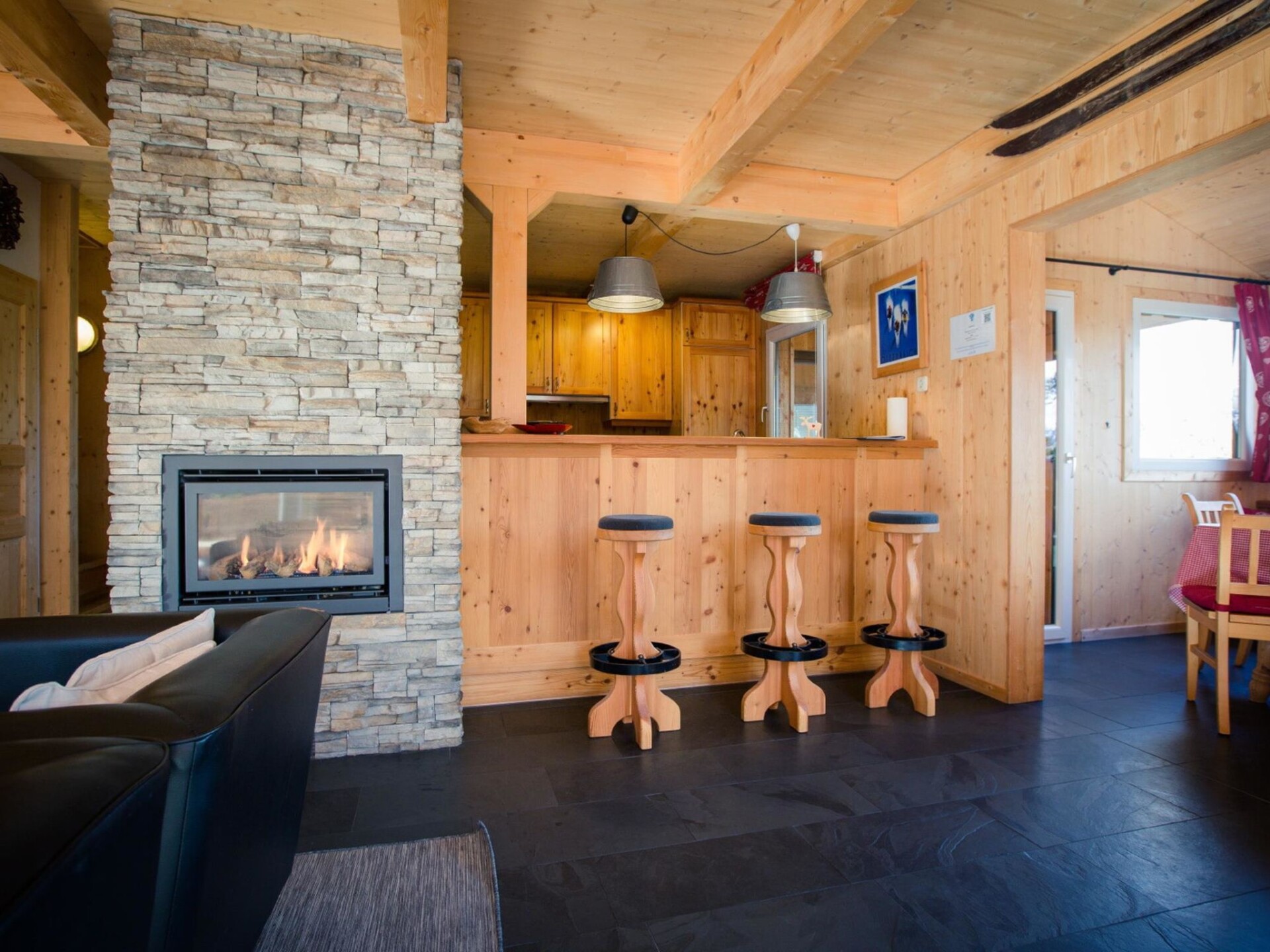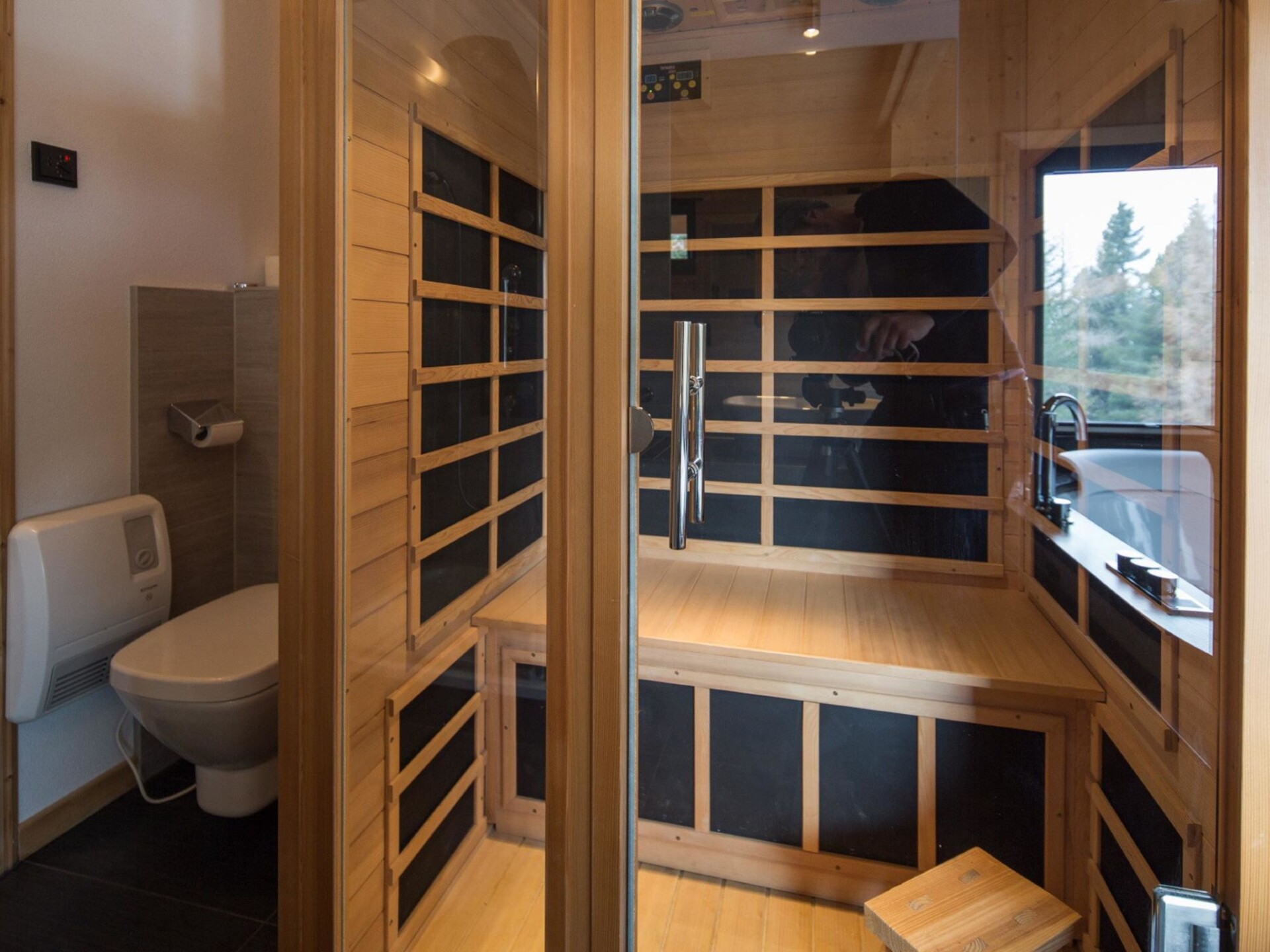 " 8 mit IR-Sauna&Sprudelwanne", chalet 5-kamers 100 m2. Ruim, luxueus en met veel hout ingericht: open woon-/eetkamer met eethoek, Sat-TV en Flatscreen TV. Open keuken (oven, afwasmachine, 4 keramische glas kookplaten, magnetron, elektrische koffiemachine). Bad/WC, douche/WC, hydro massage bad, Sauna. Bovenverdieping: 3 2-pers. kamers. 1 kamer met 2 bedden. Douche/WC. Balkon of terras. Balkonmeubilair. Mooi uitzicht op het landschap en de plaats. Ter beschikking: Internet (Internet (WiFi), gratis). Parkeerplaats bij het huis. Niet rokers woning. Rookmelders. De beschrijving betreft een voorbeeld van dit type woning in dit complex.