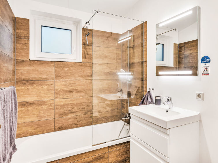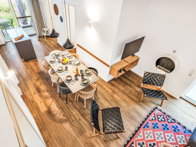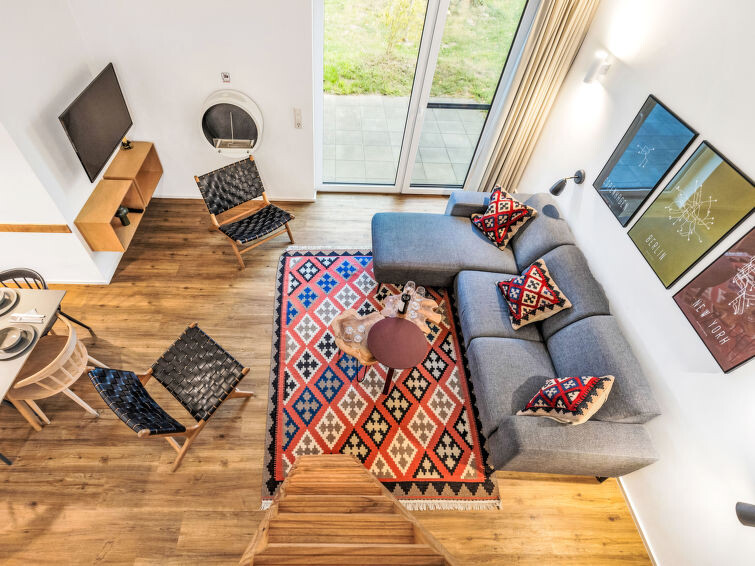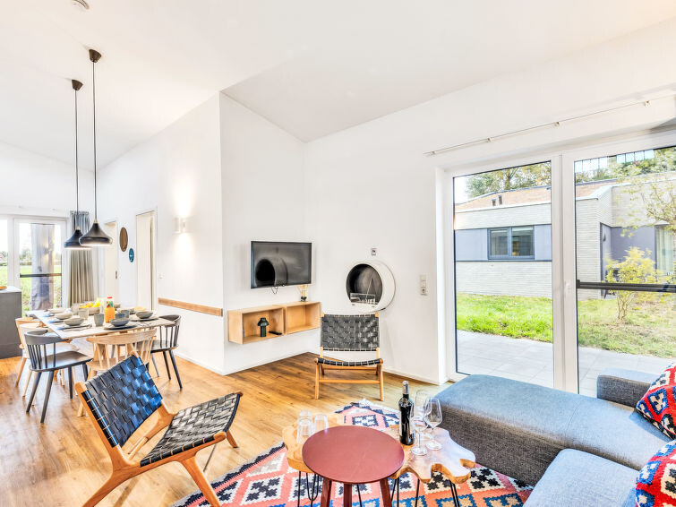 "Abendrot", huis 4-kamers 98 m2 op 2 verdiepingen. Smaakvol en gezellig ingericht: woon-/eetkamer met Sat-TV (Flatscreen TV). Uitgang naar het terras. 3 kamers, elke kamer heeft 1 2-pers bed (2 x 90 cm, lengte 200 cm). Woonkeuken (oven, afwasmachine, 4 keramische glas kookplaten, broodrooster, waterkoker, magnetron, elektrische koffiemachine). Bad/WC, douche/WC. Bovenverdieping: (ladder) open galerij met afgeschuinde daken met 2 slaapplaatsen. Terras. Terrasmeubelen, elektrische barbecue. Ter beschikking: wasmachine, droger, sauna, kinderstoel (extra), haardroger. Internet (WiFi, gratis). Rookvrij huis. Rookmelders.