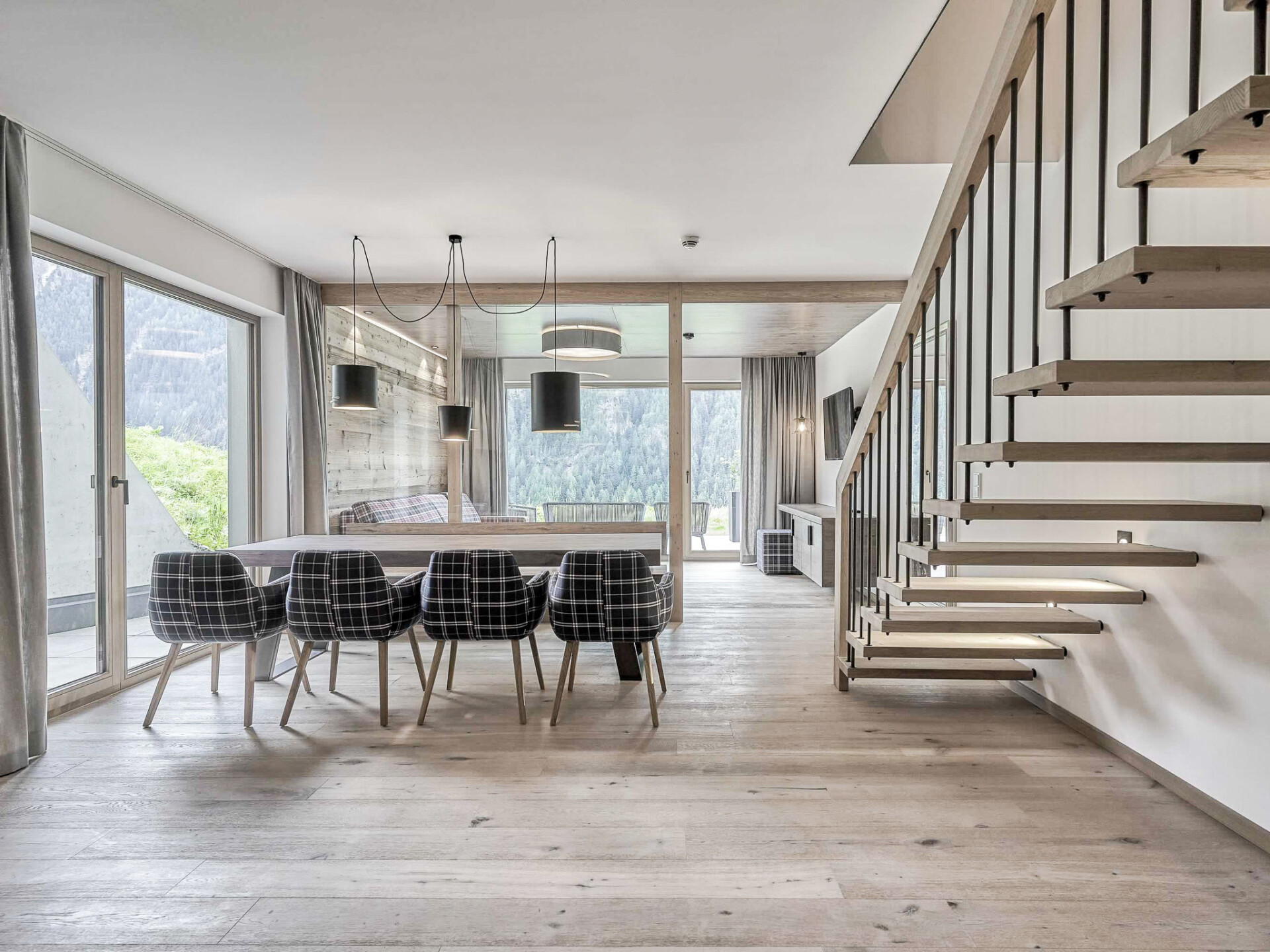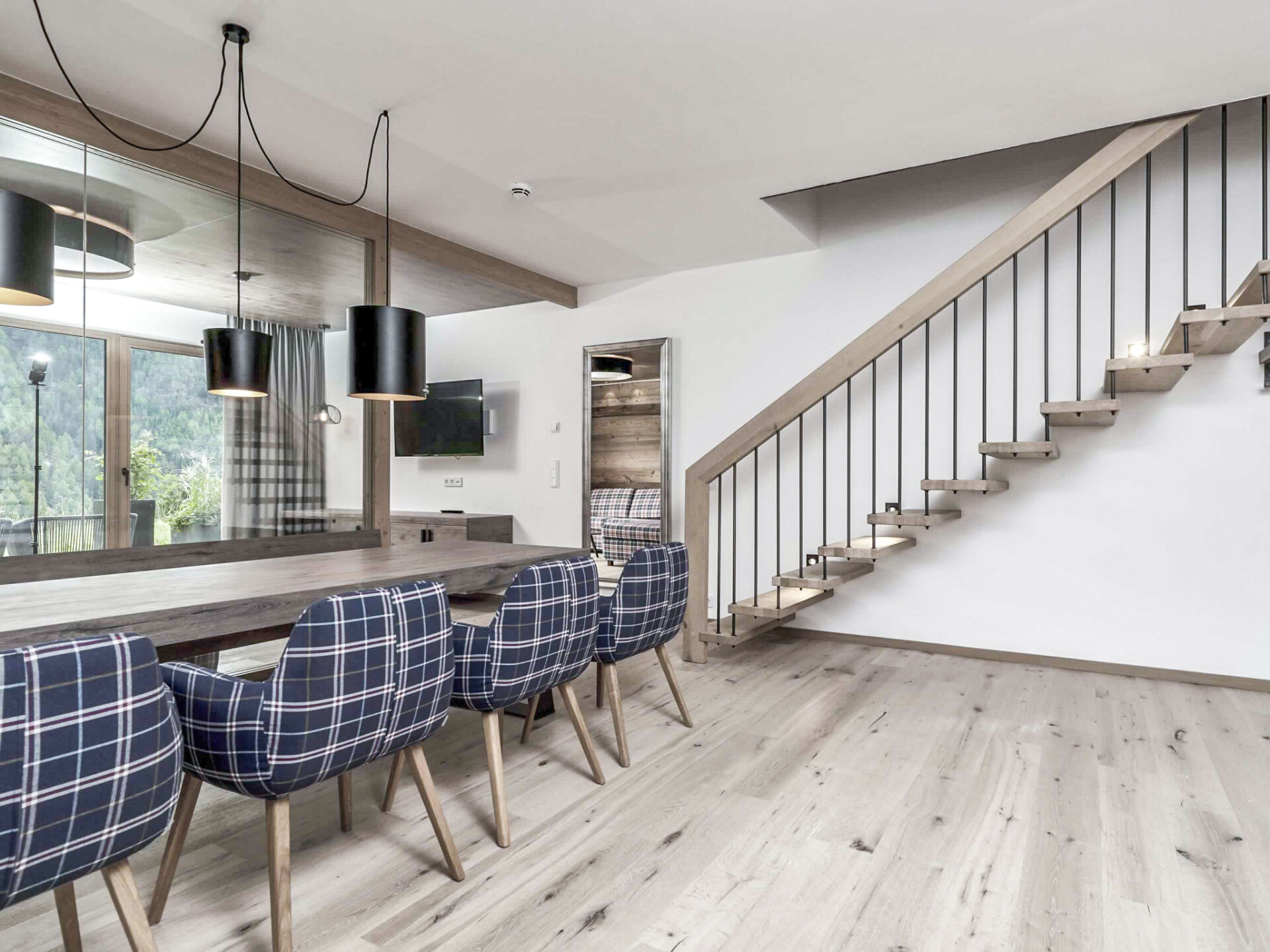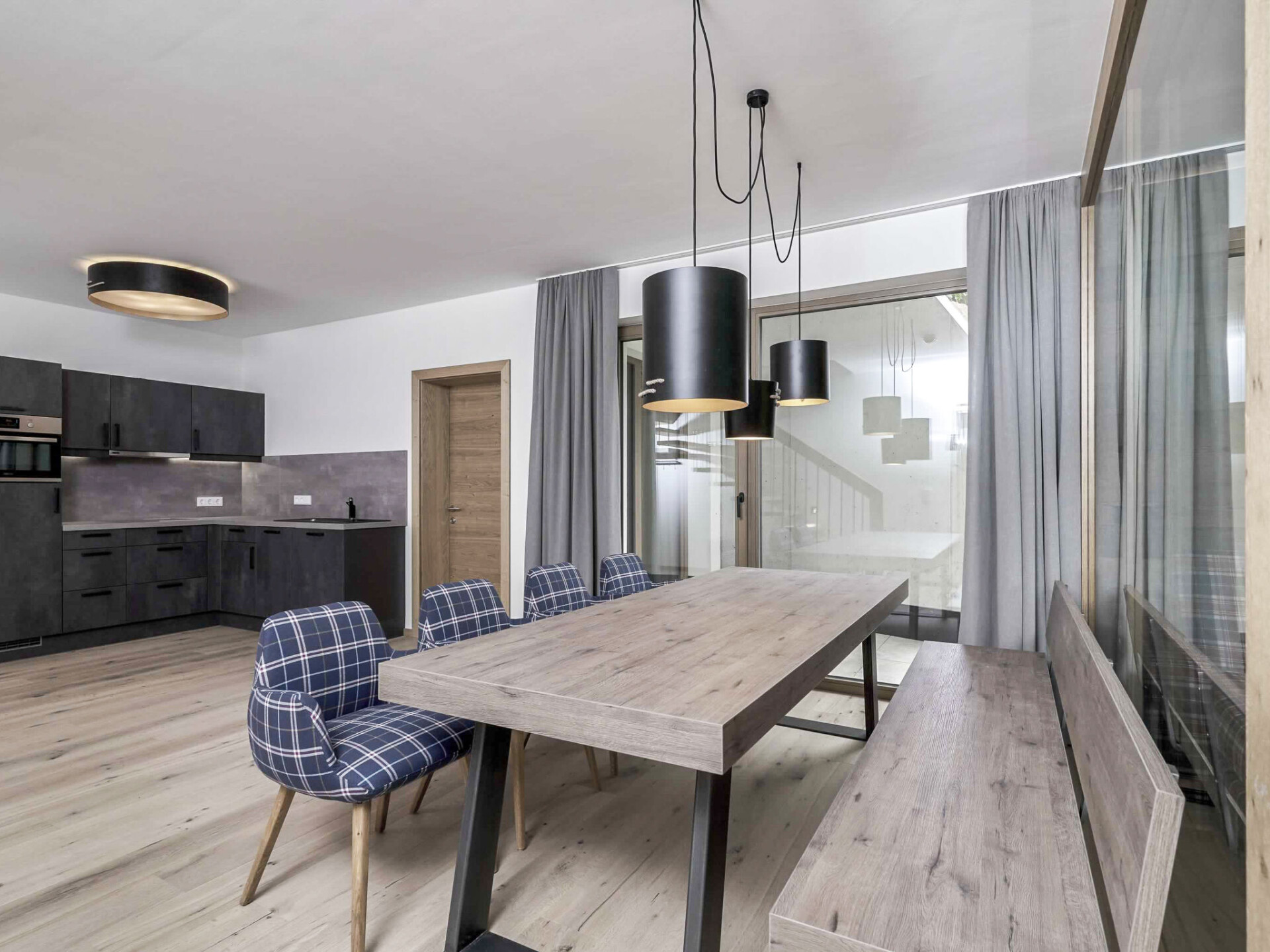 "Appartement Wallis", appartement 4-kamers 101 m2 op 2 verdiepingen. 1 2-pers. kamer met 1 2-pers bed, eethoek en Sat-TV (Flatscreen TV). Uitgang naar het terras. Woon-/slaapkamer met 1 2-pers divanbed en Sat-TV. Woonkeuken in de hal (afwasmachine, 4 keramische glas kookplaten, diepvriezer, elektrische koffiemachine) met eettafel. Uitgang naar het terras. Bovenverdieping: 1 kamer met 1 2-pers divanbed, 1 2-pers bed en Sat-TV (Flatscreen TV). Uitgang naar het balkon. Douche, aparte WC. Groot terras. Terrasmeubelen. Ter beschikking: sauna, haardroger. Internet (WiFi, gratis). Maximaal 1 huisdier/hond toegestaan. Rookmelders. Als er minder dan het maximale aantal gasten in de accommodatie verblijft, zijn niet alle wooneenheden beschikbaar voor gebruik.