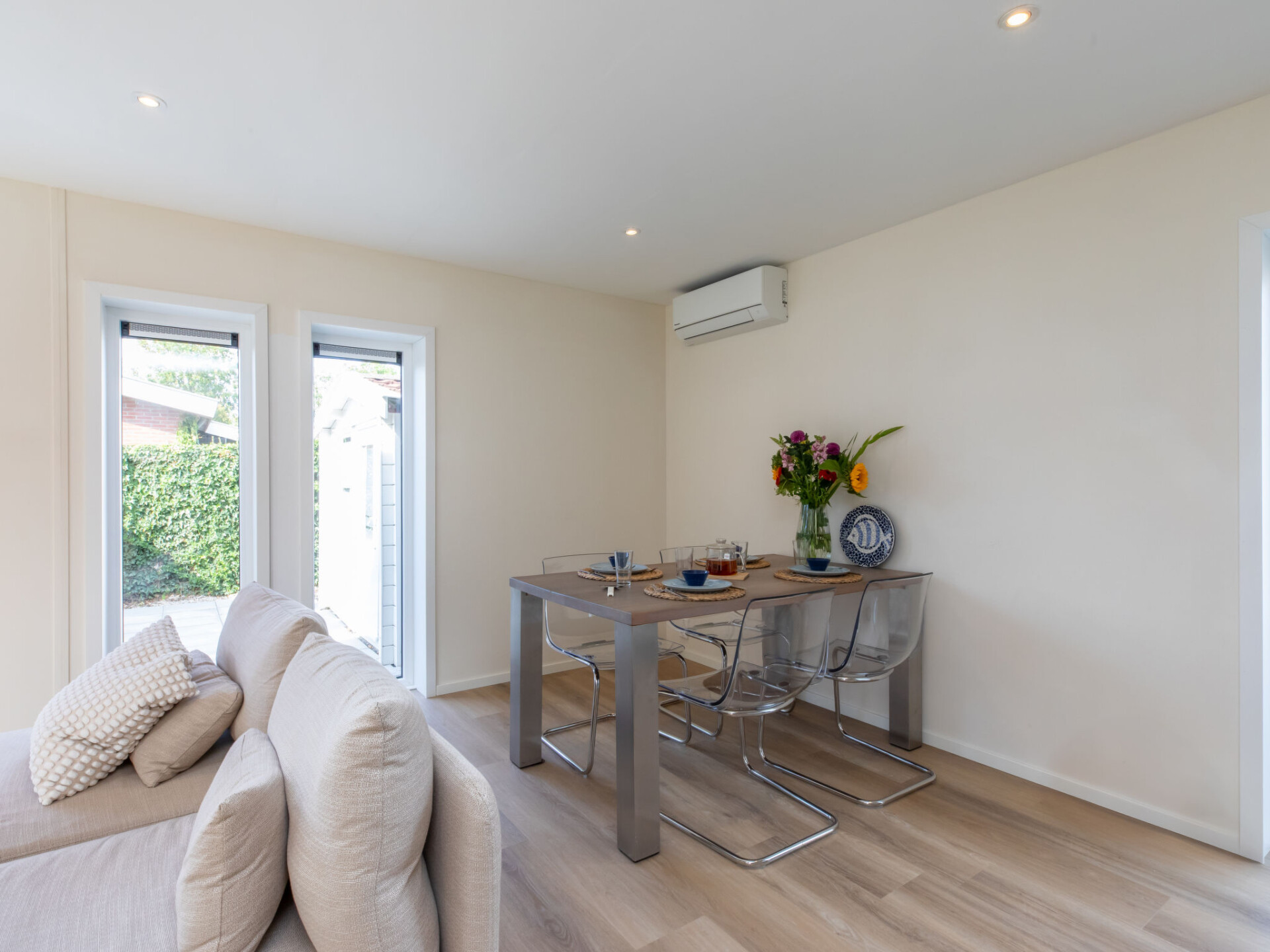 "Beach House de Zandput", chalet 3-kamers 60 m2, op de begane grond. Licht, zeer mooi en modern ingericht: open woon-/eetkamer met eettafel, TV en internationale TV-zenders. Uitgang naar het terras. 2 2-pers. kamers, elke kamer heeft 2 bedden (80 cm, lengte 200 cm). Open keuken (afwasmachine, 4 inductiekookplaten, waterkoker, diepvriezer, elektrische koffiemachine, combimagnetron). Douche/WC. Elektrische verwarming. Terrasmeubelen. Ter beschikking: wasmachine. Internet (WiFi, gratis). Parkeerplaats op 150 m.