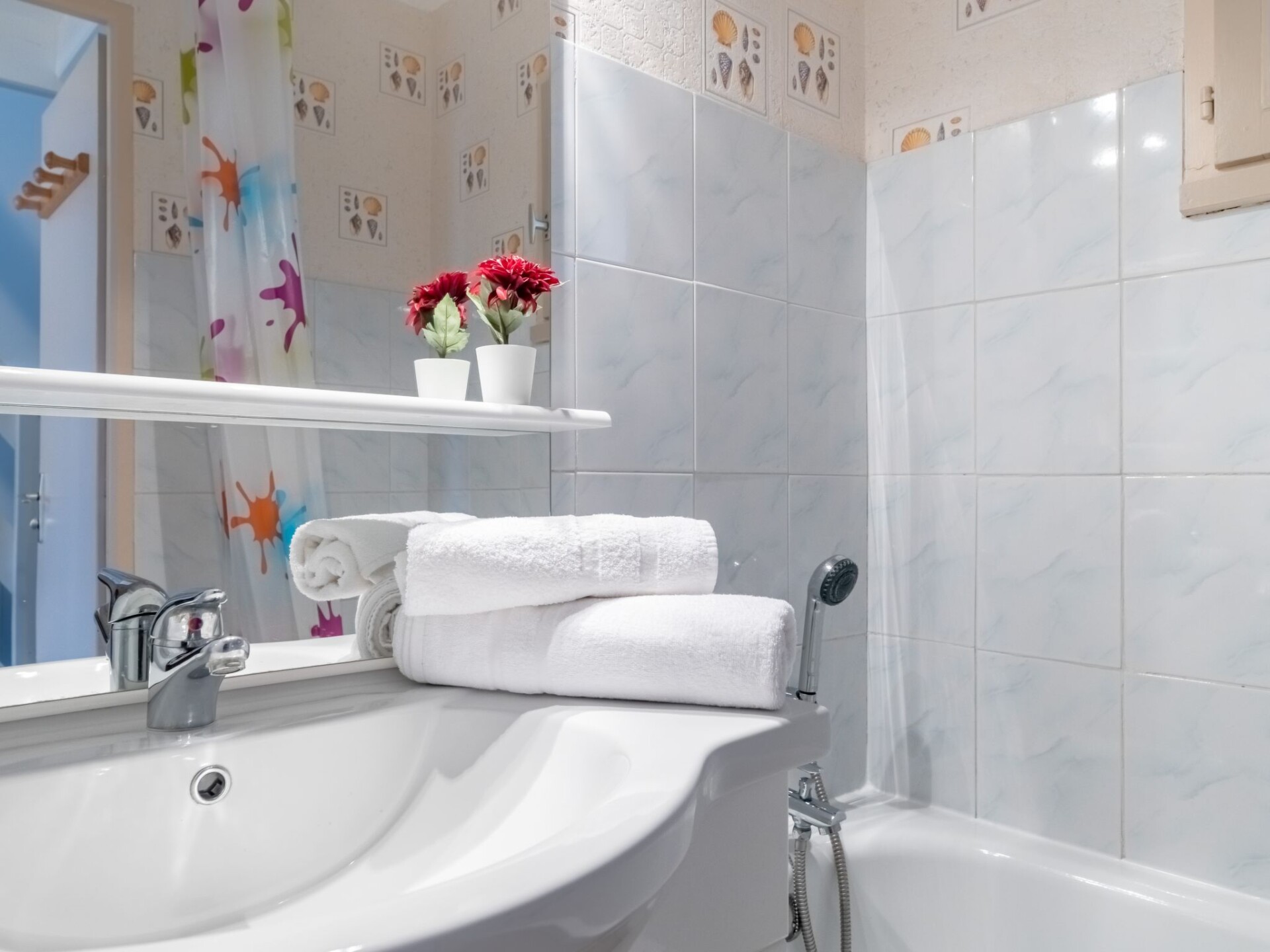 "Belle vue Mer et Piscine", maisonette 2-kamers 30 m2 op de 1e verdieping, op het zuidwesten gelegen. Het objekt is geschikt voor 2 volwassenen + 2 kinderen. Licht, gerenoveerd, mooi ingericht: woonkamer met TV (Flatscreen TV). Open keuken (mini-oven, afwasmachine, 2 keramische glas kookplaten, broodrooster, waterkoker, magnetron, elektrische koffiemachine). Bad/WC. Bovenverdieping: doorloopkamer met 2 bedden (90 cm, lengte 190 cm). 1 kamer met afgeschuinde daken met 1 2-pers bed (140 cm, lengte 190 cm). Elektrische verwarming. Uitzicht op zee. Ter beschikking: wasmachine, strijkijzer. Internet (Internet (WiFi), gratis). Niet rokers woning. Rookmelders. Aanbod door een particulier volgens art. 155, IV van CGI.