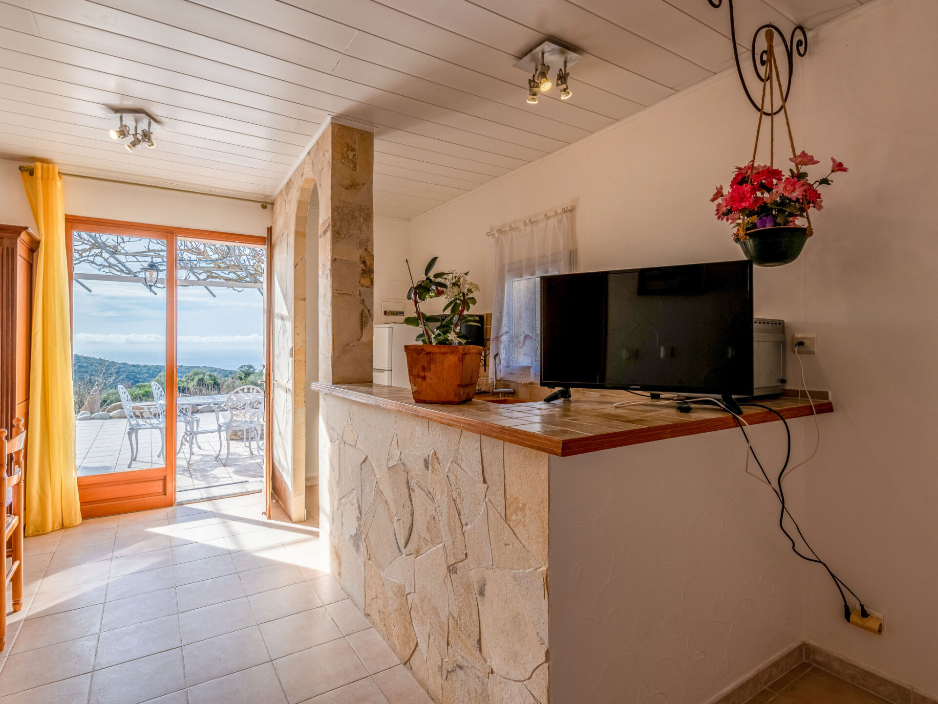 Huis in een rij 2-kamers 30 m2. Woon-/eetkamer met 1 2-pers divanbed (140 cm, lengte 190 cm), TV en air-conditioning. 1 kleine kamer 4 m2 met 1 x 2 stapelbedden (90 cm, lengte 190 cm). Kookhoek (2-pits kookplaat, mini-oven, magnetron). Douche/WC. Elektrische verwarming. Terras 50 m2. Terrasmeubelen, barbecue. Beperkt uitzicht op zee en de bergen. Dubbele beglazing. Aanbod door een particulier volgens art. 155, IV van CGI.