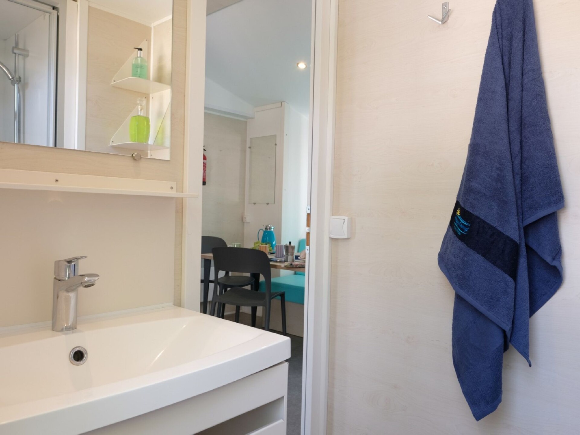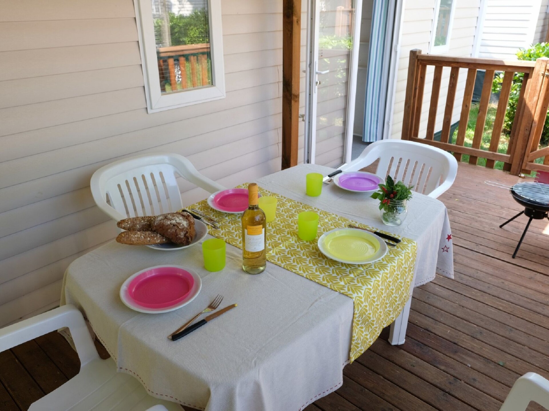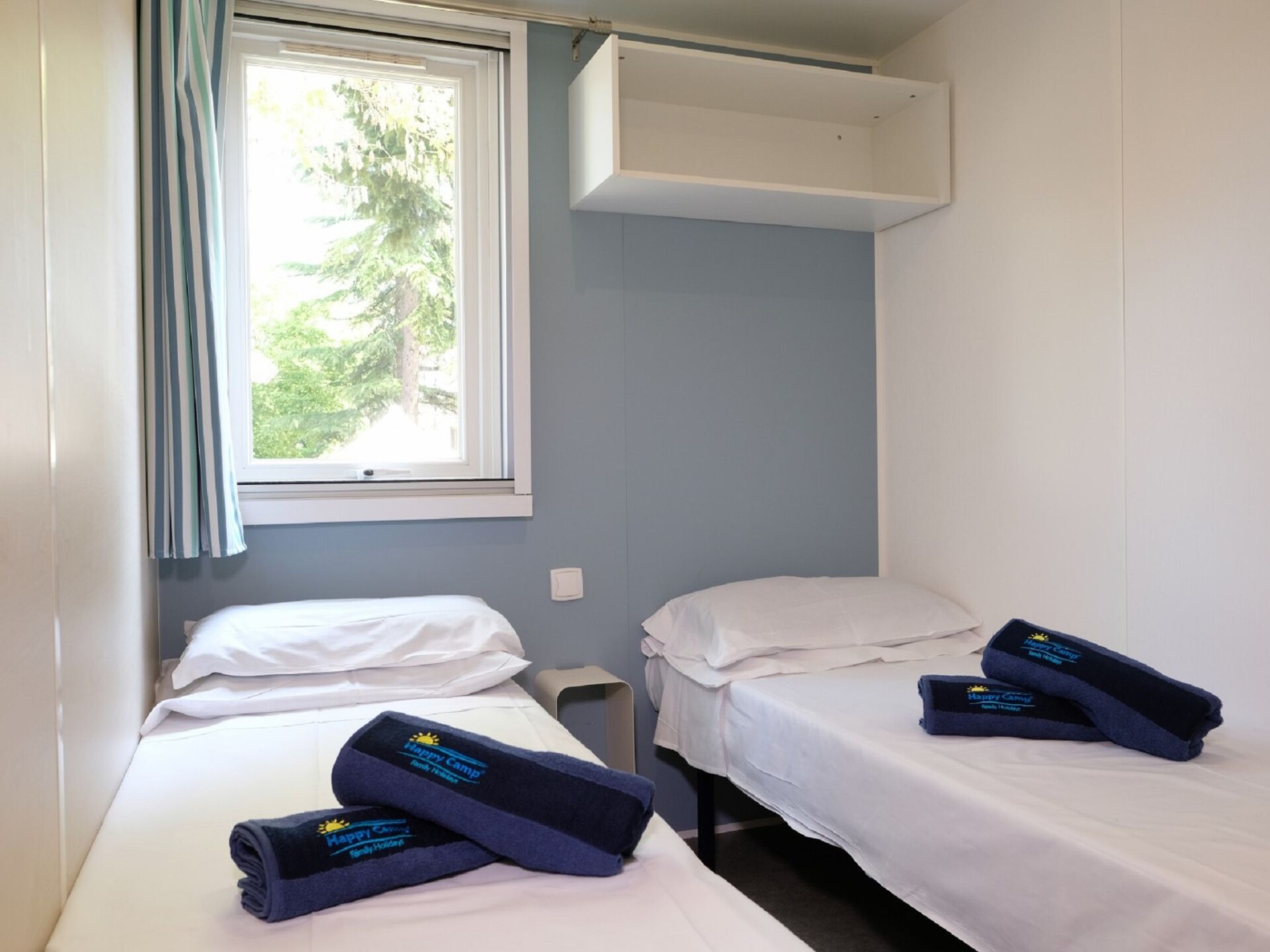 "Happy Premium", 4-kamers mobilhome 30 m2. Doelmatig ingericht: woon-/slaapkamer met 1 slaapplaats (69 cm, lengte 125 cm), eettafel, elektrische verwarming en air-conditioning. 1 kamer met 1 2-pers bed (140 cm, lengte 190 cm). 2 kamers, elke kamer heeft 2 bedden (70 cm, lengte 190 cm). Open keuken (4-pits kookplaat, magnetron, diepvriezer, elektrische koffiemachine). Douche/WC. Air-conditioning (extra). Terras gedeeltelijk overdekt. Terrasmeubelen, elektrische barbecue (verrijdbaar), ligstoelen (2). Ter beschikking: klamboe. Parkeerplaats (1 Auto). Niet rokers woning. IT049001B1GVJ9J3DF