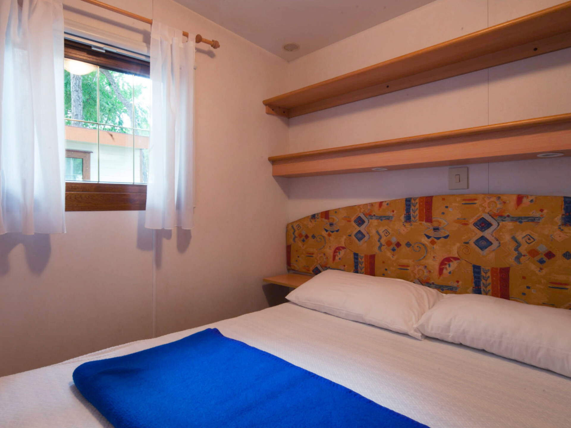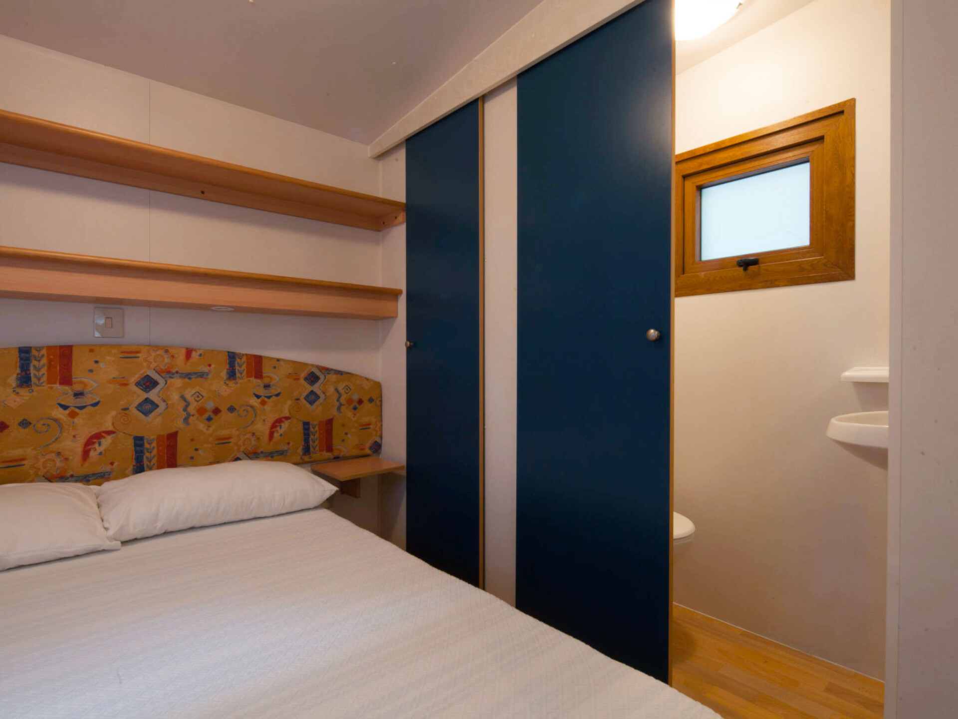 "Baia Comfort", 3-kamers mobilhome 22 m2. Doelmatig ingericht: woon-/eetkamer met eettafel en Sat-TV. 1 kamer met 1 2-pers bed (140 cm), aparte WC. 1 kamer met 2 bedden (70 cm). Kookhoek (4 kookpitten (vlammen)). Douche/WC. Air-conditioning, heteluchtverwarming (extra). Terras overdekt. Terrasmeubelen. Parkeerplaats (1 Auto). Niet rokers woning. Maximaal 2 kleine huisdieren/honden toegestaan. IT027044B1OWGM56Q6