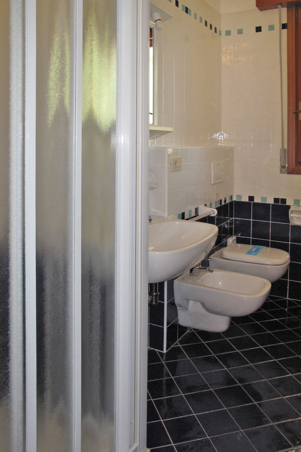 Huis in een rij 4-kamers 60 m2 op 2 verdiepingen. Doelmatig en modern ingericht: woon-/slaapkamer met 1 2-pers divanbed, eettafel en Sat-TV. Uitgang naar het terras. 1 2-pers. kamer. 1 kamer met 2 bedden. Kleine keuken (Gasfornuis, 4 kookpitten (vlammen), magnetron, diepvriezer, elektrische koffiemachine). Douche/bidet/WC. Souterrain: (steile trap), 1 kamer met 1 2-pers divanbed (140 cm), TV en air-conditioning. Douche/bidet/WC. Elektrische verwarming, air-conditioning. Verwarming niet in alle ruimtes. Terras gedeeltelijk overdekt. Terrasmeubelen, barbecue. Ter beschikking: wasmachine, kluis, kinderstoel, kinderbed. Garage op het terrein (1 Auto) bij het huis, hoogte 230 cm. Maximaal 1 huisdier/hond toegestaan. IT027034B43PERJM5F