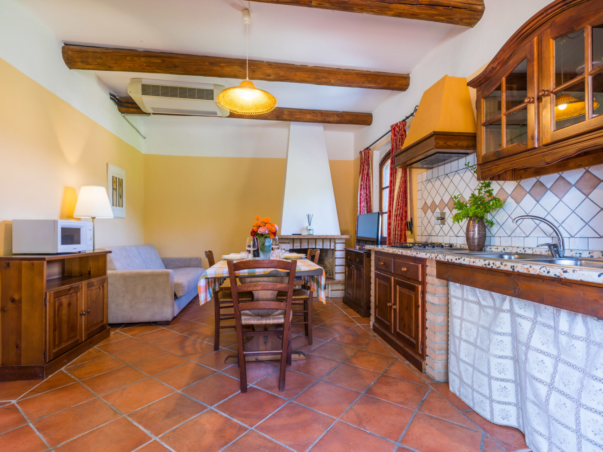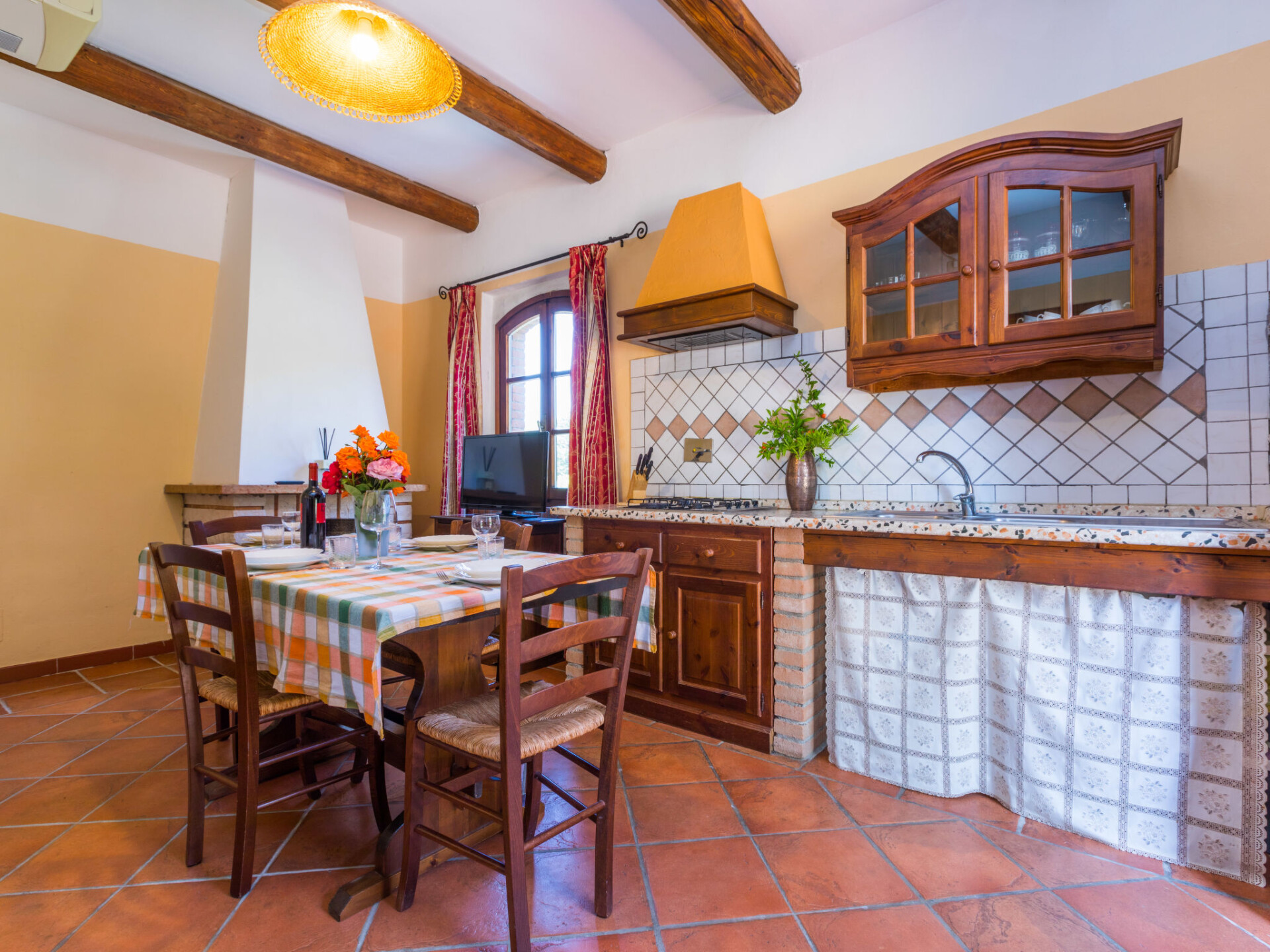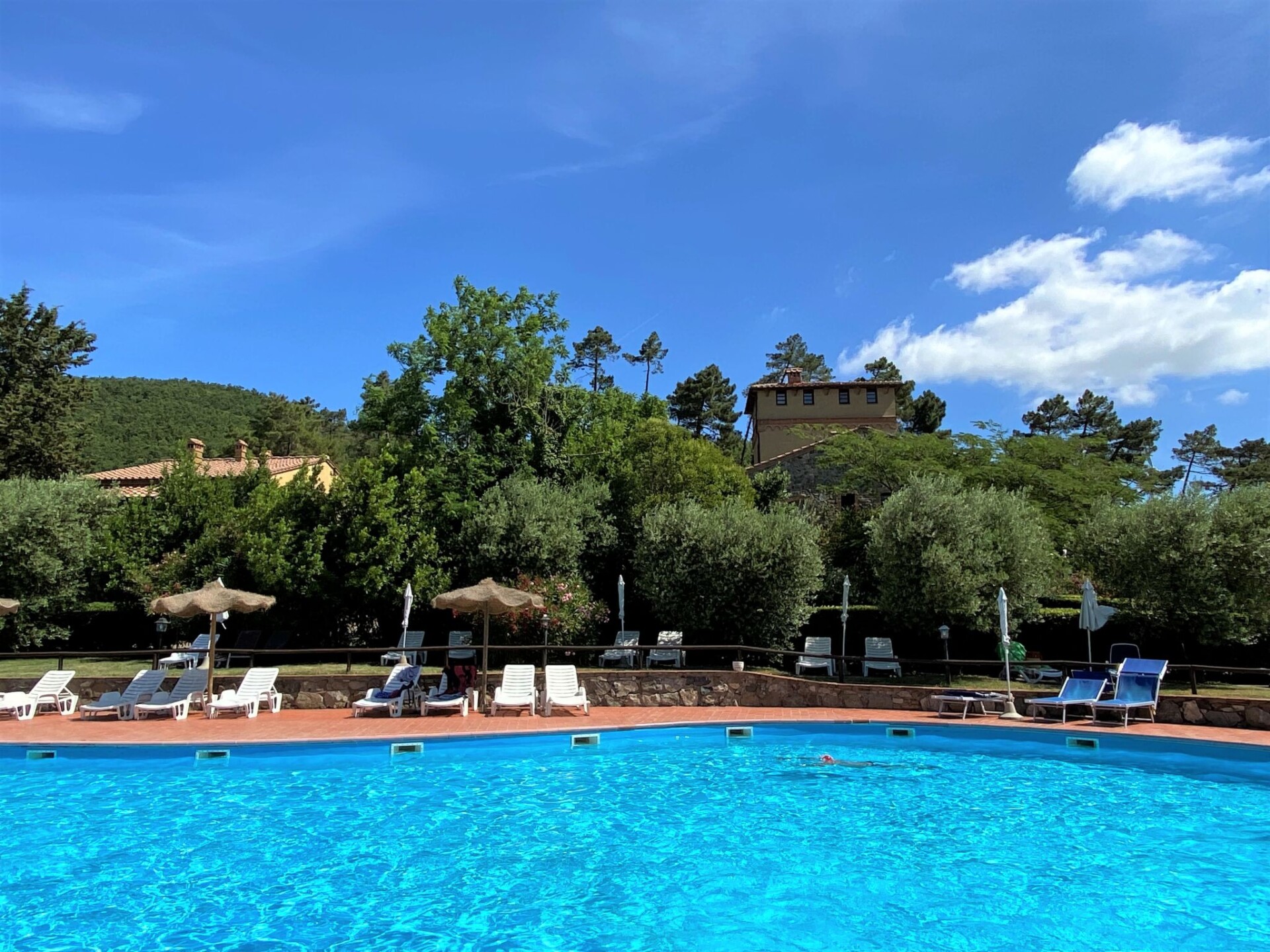 Kindvriendelijk, rustieke vakantiecomplex, omgeven door bomen, weiden en velden. 6 huizen in de woning. 40 appartementen in de woning. 3 km van het centrum van Riparbella, geïsoleerde ligging op een heuvel, 15 km van zee, te midden van groen. Voor medegebruik: terrein 2000.000 m2 met planten en bomen, weide, openluchtzwembad niervormig (300 m2, seizoensgebonden beschikbaarheid: 11.Mei. - 21.Sep.). Kinderzwembad, buitendouche. In het complex: receptie, bar, bistro, Internet (WiFi), wasmachine (extra) (voor medegebruik). Broodjesservice. Parkeerplaats op het terrein. Winkel 3 km, levensmiddelenwinkel 3 km, supermarkt 13 km, restaurant 1 km, bakkerij 3 km, bushalte "Apparita 1" 3 km, zandstrand "Cecina Mare, Vada" 15 km. Attracties in de buurt: Volterra 35 km, Pisa 65 km, Firenze 97 km. De afgebeelde foto is slechts een voorbeeld. Badmuts verplicht. WiFi alleen beschikbaar in gemeenschappelijke ruimtes: bar en zwembad.