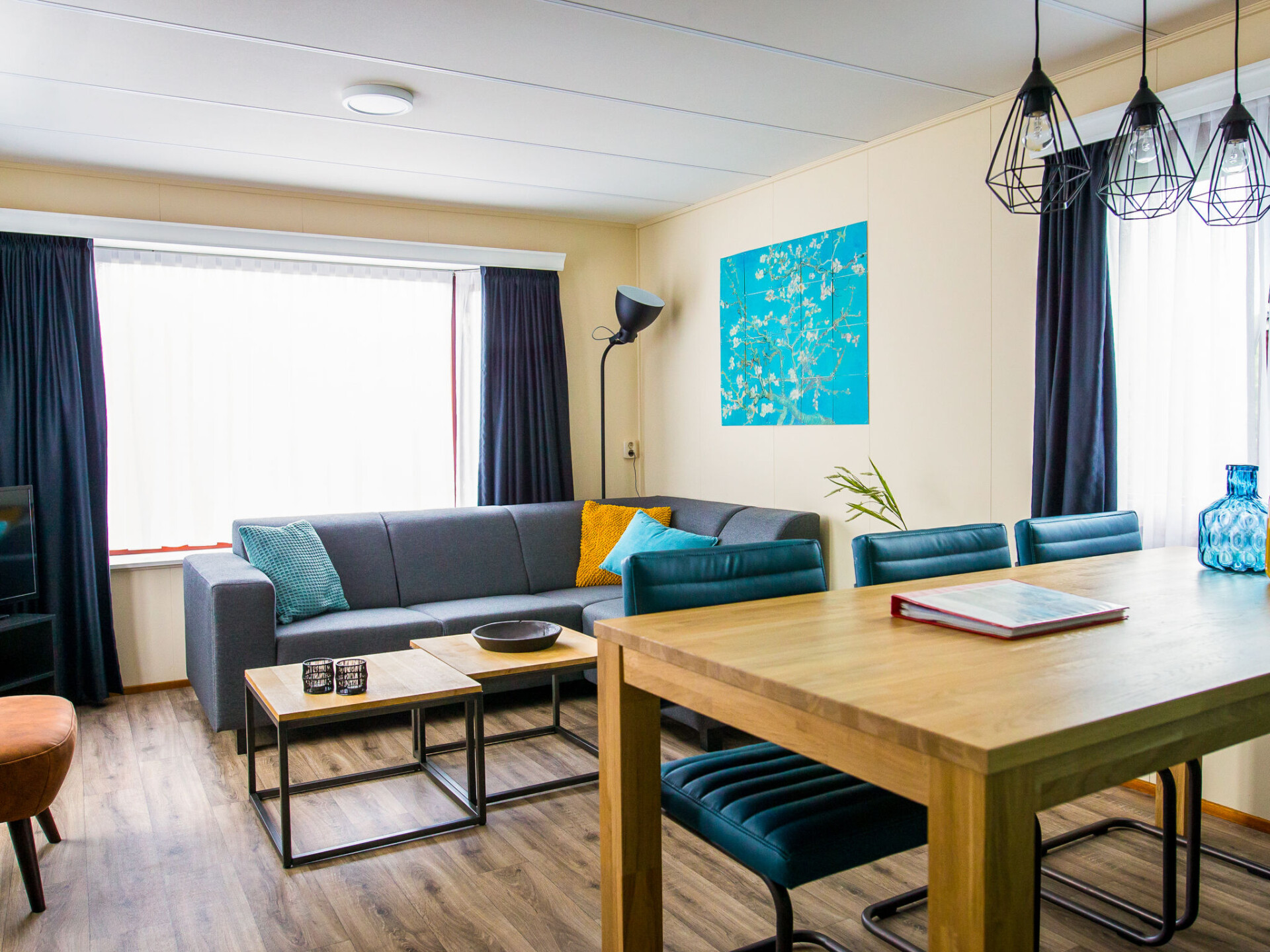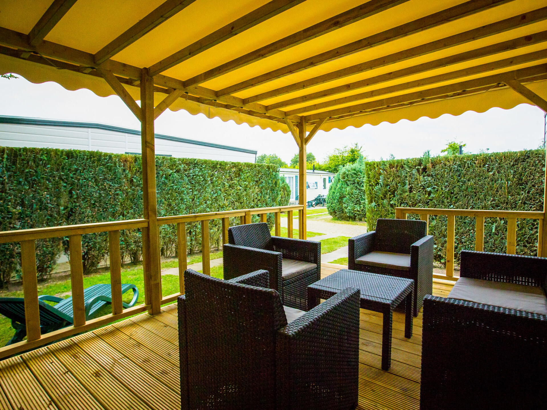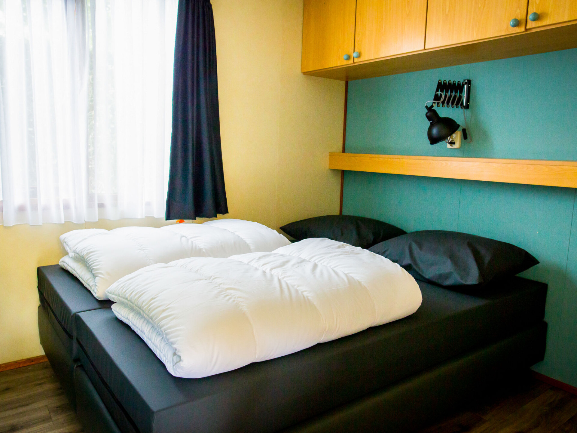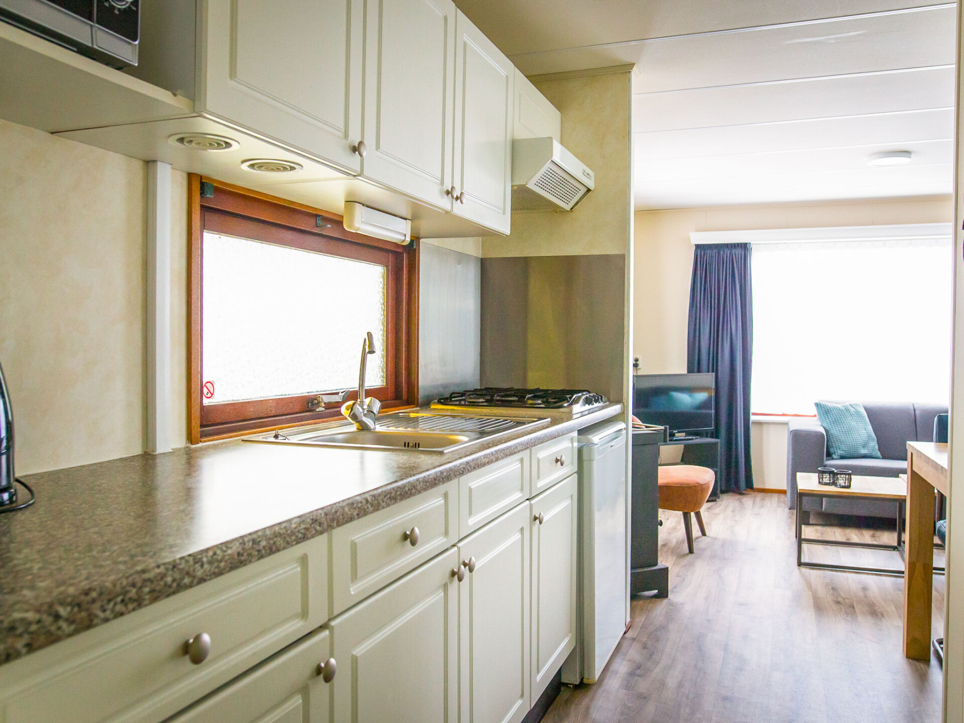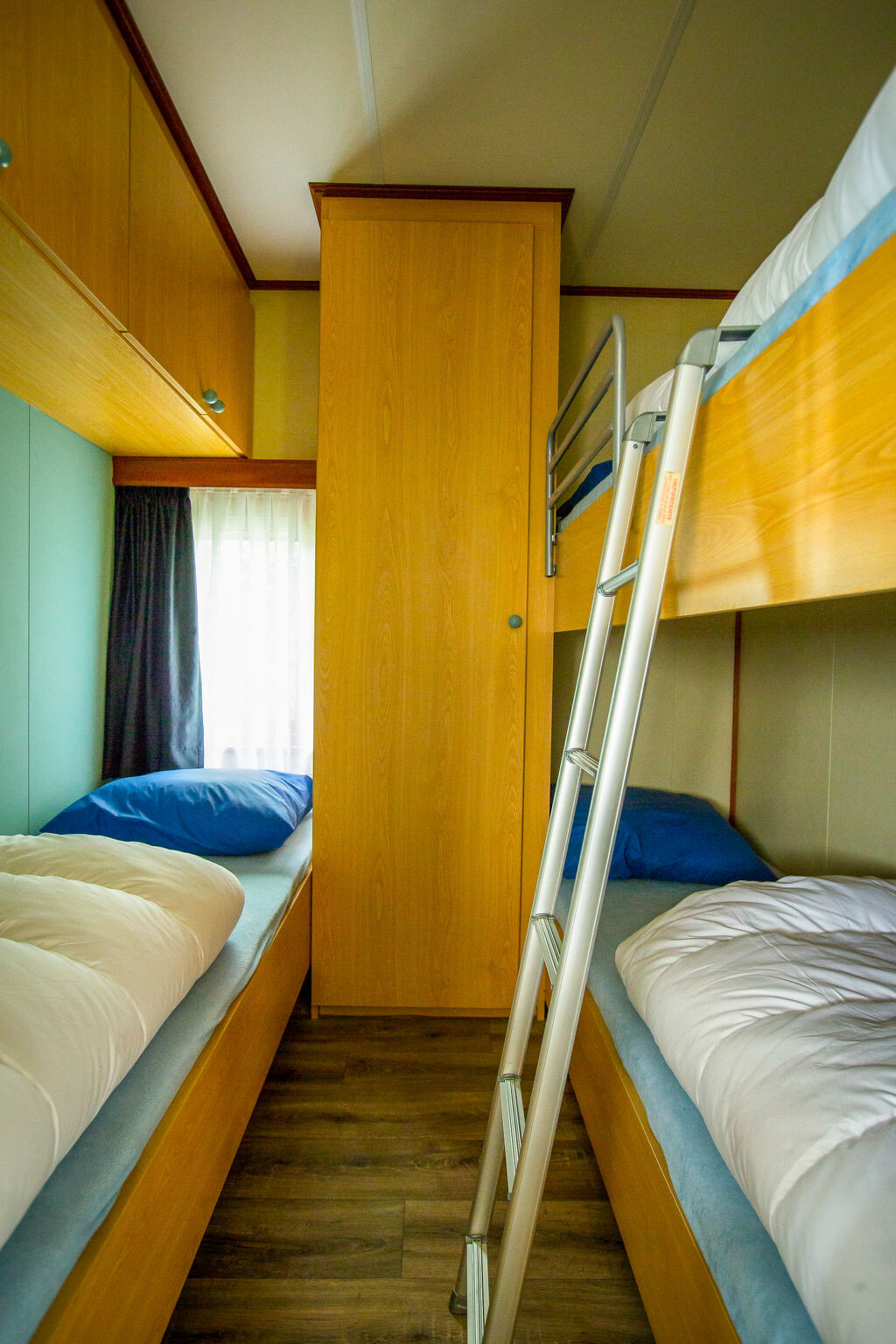 "Veranda 5", chalet 3-kamers 36 m2. Doelmatig ingericht: open woon-/eetkamer met TV en gaskachel. Uitgang naar het terras. 1 2-pers. kamer met 2 bedden. 1 kamer met 1 bed en 1 x 2 stapelbedden. Open keuken (4-pits kookplaat, waterkoker, magnetron, elektrische koffiemachine). Douche/WC. Terras. Terrasmeubelen. Ter beschikking: Internet (Internet (WiFi), gratis). Parkeerplaats (1 Auto) bij het huis. Rookvrij huis. Rookmelders.