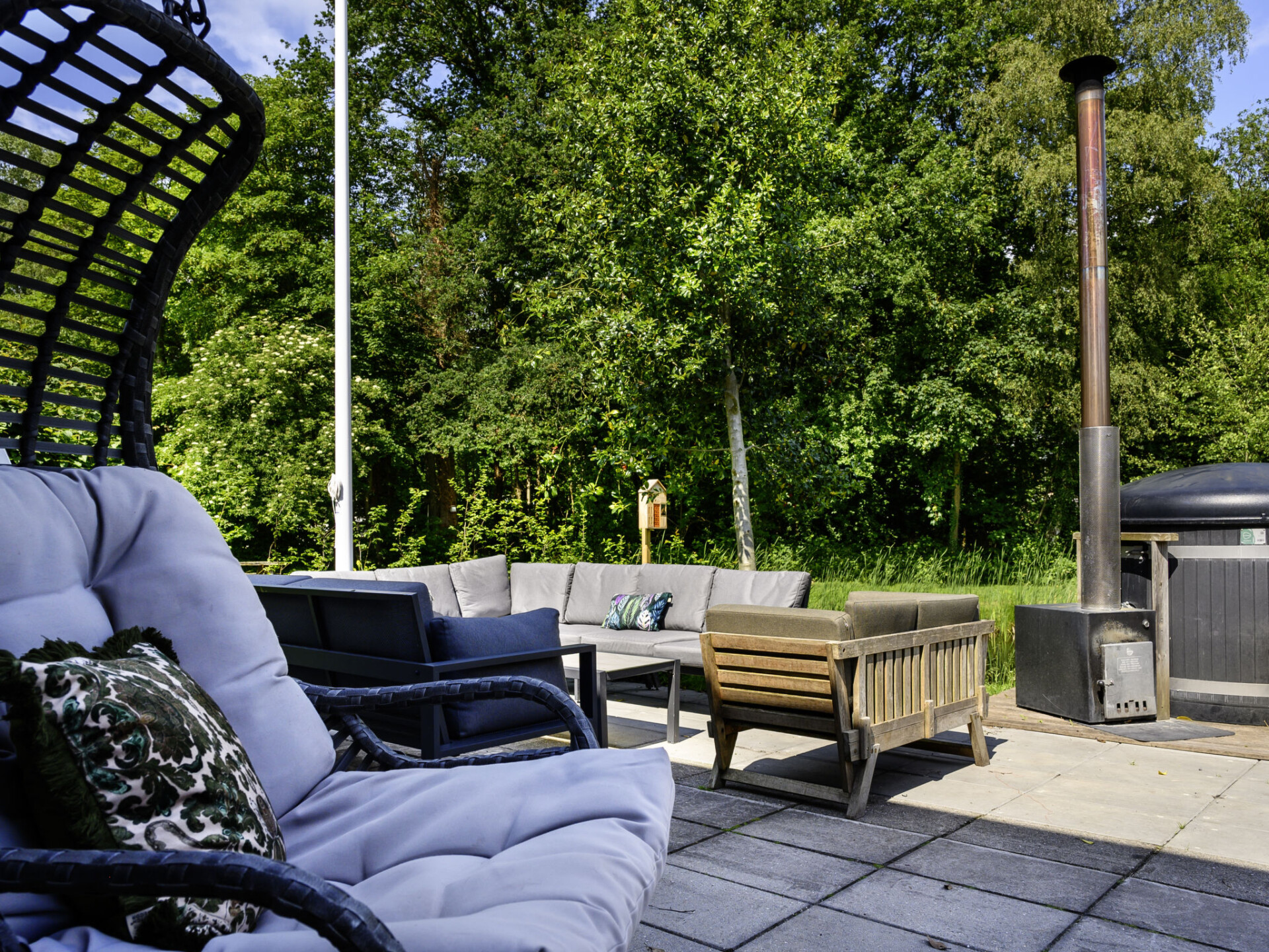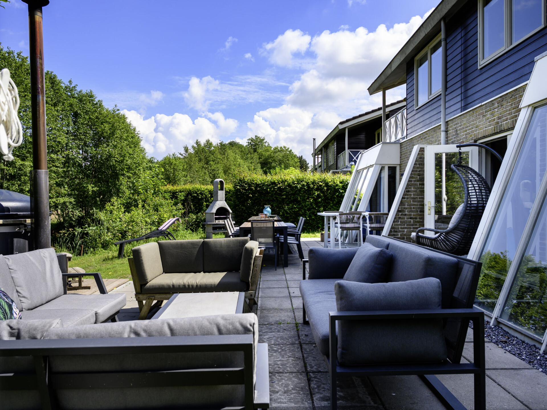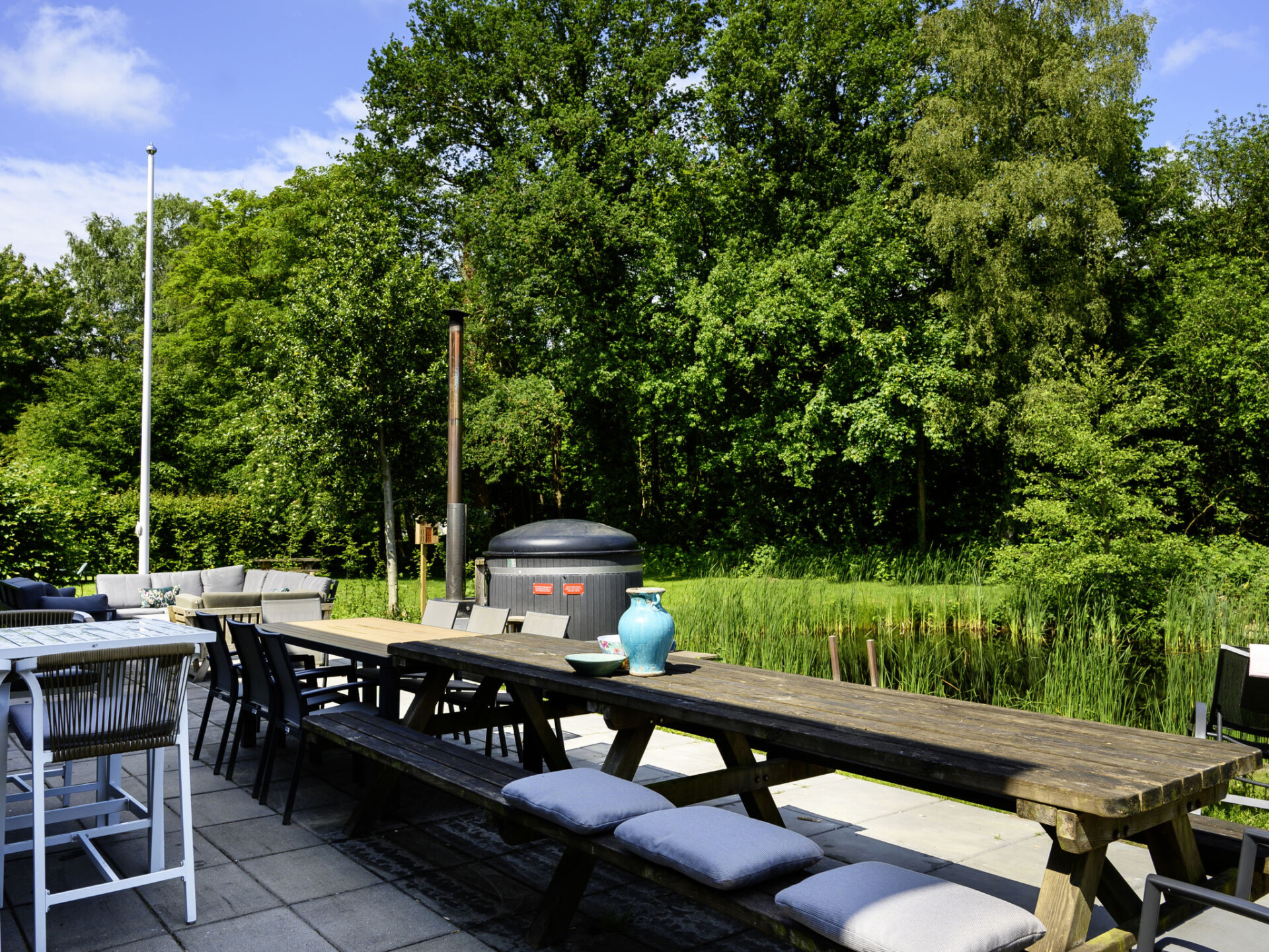 "Ellersinghuis", huis 7-kamers 170 m2. Comfortabel ingericht: hal. Woonkamer met Flatscreen TV. Slaapnis. 2 kamers, elke kamer heeft 2 bedden en 1 x 1 stapelbedden. Open keuken (oven, afwasmachine, Gasfornuis, waterkoker, magnetron, elektrische koffiemachine) met eettafel. Uitgang naar het terras. 2 bad/douche/WC's. Verwarming. Bovenverdieping: 2 kamers, elke kamer heeft 3 bedden. 2 kamers, elke kamer heeft 2 bedden. 2 douche/WC's. 2 balkons, groot terras. Terrasmeubelen, balkonmeubilair, barbecue, ligstoelen (2). Ter beschikking: wasmachine, droger, kinderstoel, kinderbed. Internet (WiFi, gratis). Parkeerplaats (4 Auto's) bij het huis. Maximaal 1 huisdier/hond toegestaan. In de tuin bevinden zich een met hout gestookte hottub, een buitendouche, een Finse sauna met o.a. lichttherapie en infra-roodstralen, een speeltoestel met zandbank en een trampoline. Er is een zwemtrap bij het water achter het huis. 2 Supboards zijn beschikbaar. De slaapnis is een 2 persoons bedstee. Indien er een huisdier wordt meegenomen, geldt er naast de kosten van het huisdier ook € 15,75 Euro extra schoonmaakkosten ter plaatse te betalen.