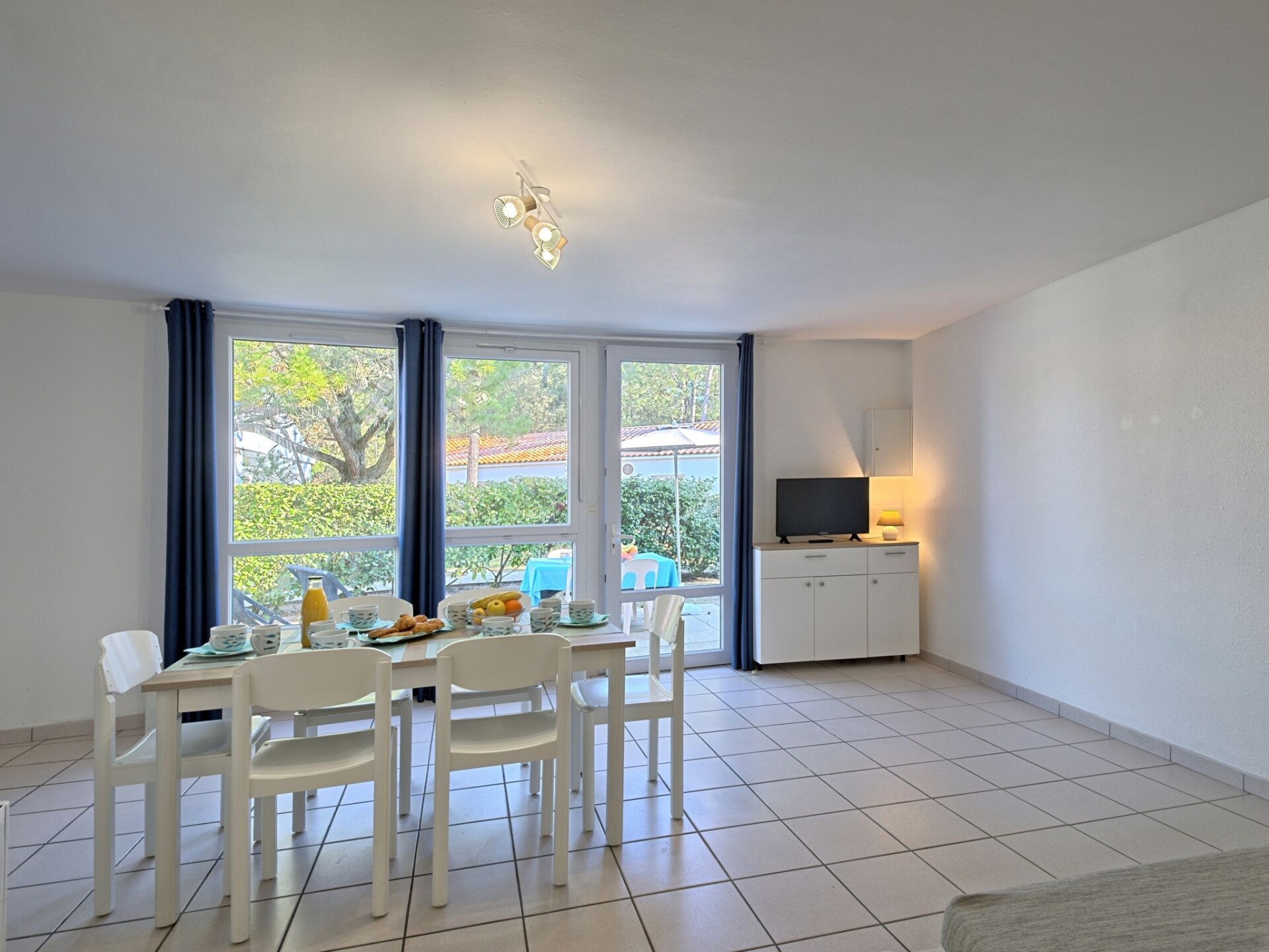 "Hameau Océan", huis in een rij 3-kamers 53 m2. Gerenoveerd in 2024, doelmatig ingericht: woon-/eetkamer met 1 divanbed (90 cm, lengte 190 cm), eettafel, TV en internationale TV-zenders. Uitgang naar het terras. 1 kamer met 1 2-pers bed (140 cm, lengte 190 cm). 1 kamer met 2 x 2 stapelbedden (90 cm, lengte 190 cm). Open keuken (afwasmachine, 3 keramische glas kookplaten, broodrooster, waterkoker, magnetron, diepvriezer, elektrische koffiemachine). Badkamer, aparte WC. Elektrische verwarming. Terras. Terrasmeubelen, elektrische barbecue, ligstoelen (2). Ter beschikking: kinderstoel, kinderbed. Internet (WiFi, gratis). Maximaal 2 huisdieren/honden toegestaan. Rookmelders. Bedindeling is flexibel. Er zijn meer slaapmogelijkheden beschikbaar dan het maximaal toegestane aantal personen dat echter niet mag worden overschreden. Aanbod door een commerciële eigenaar volgens art. 155, IV, CGI