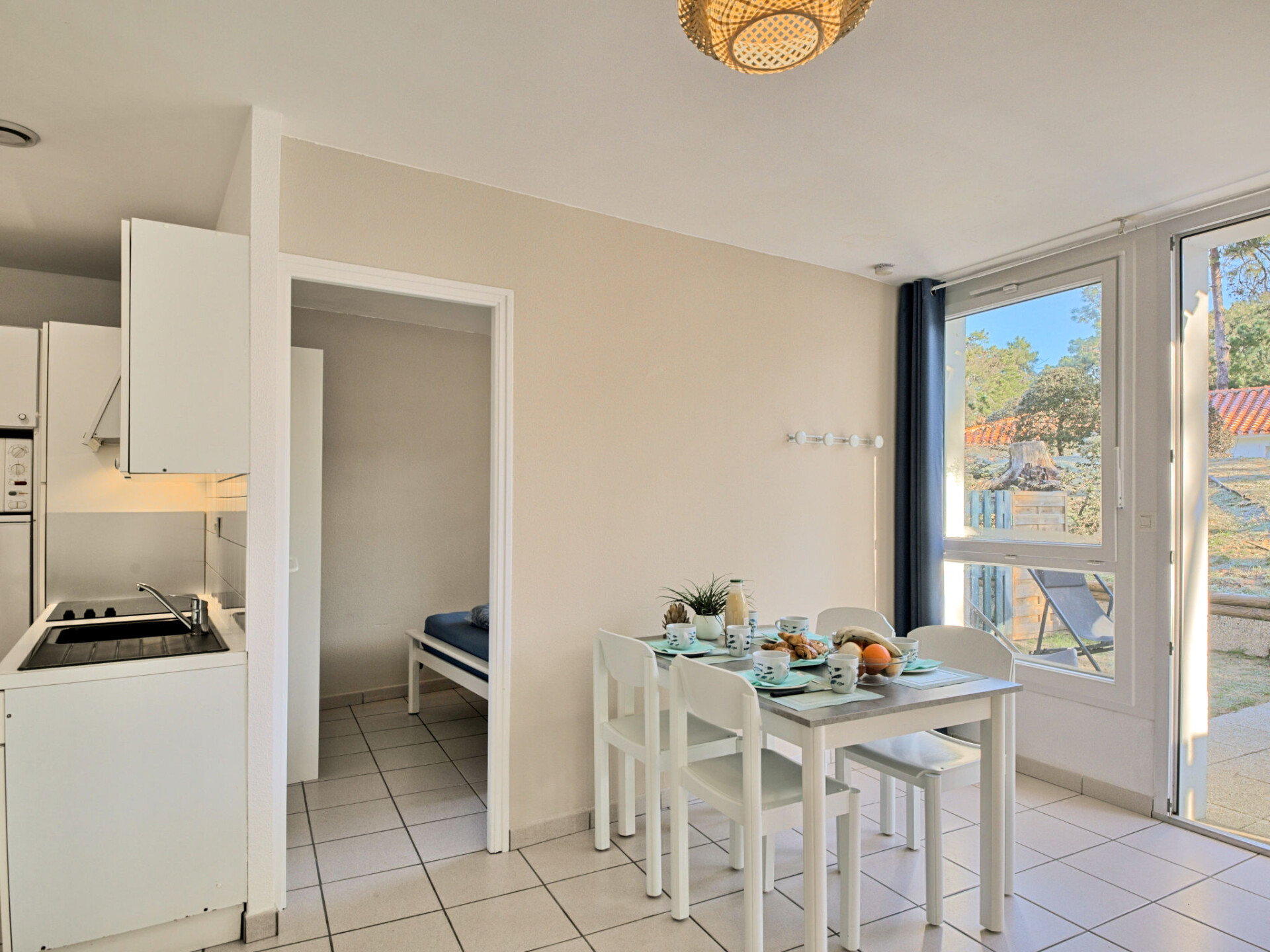 "Hameau Océan", huis in een rij 2-kamers 30 m2. Het objekt is geschikt voor 2 volwassenen + 2 kinderen. Gerenoveerd in 2024, doelmatig ingericht: woon-/eetkamer met 2 slaapplaatsen (2 x 90 cm, lengte 190 cm), eettafel, TV en internationale TV-zenders. Uitgang naar het terras. 1 kamer met 1 2-pers bed (140 cm, lengte 190 cm). Open keuken (afwasmachine, 3 keramische glas kookplaten, broodrooster, waterkoker, magnetron, elektrische koffiemachine). Bad/WC. Elektrische verwarming. Terras. Terrasmeubelen, elektrische barbecue, ligstoelen (2). Ter beschikking: kinderstoel, kinderbed. Internet (WiFi, gratis). Maximaal 2 huisdieren/honden toegestaan. Rookmelders. Aanbod door een commerciële eigenaar volgens art. 155, IV, CGI