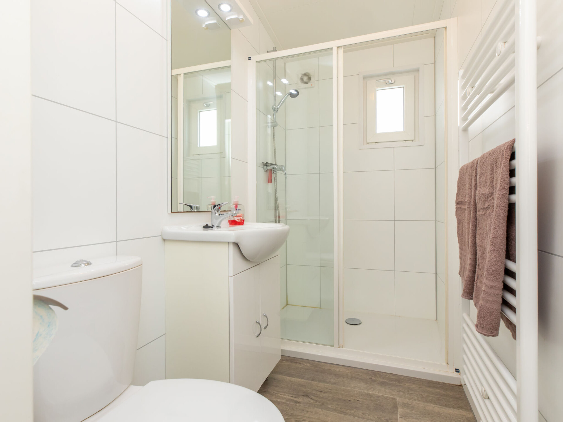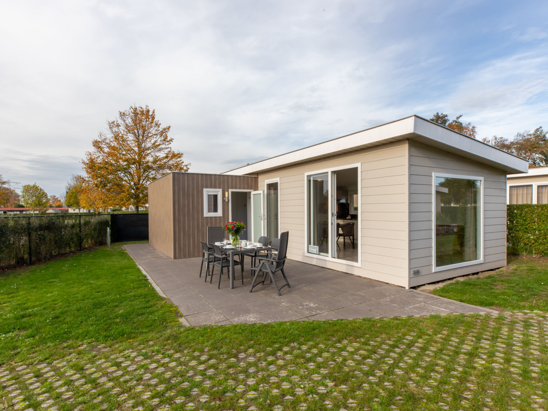 "Hart van Zeeland 1H", 4-kamers mobilhome 53 m2, op het zuiden gelegen. Comfortabel en modern ingericht: hal. Woon-/eetkamer met schuifdeur. Uitgang naar het terras met Digitale TV en internationale TV-zenders. 1 2-pers. kamer met 1 2-pers bed (2 x 80 cm, lengte 200 cm). 1 kamer met 2 bedden (80 cm, lengte 200 cm). 1 kamer met 1 x 2 stapelbedden (70 cm, lengte 190 cm). Open keuken (afwasmachine, 4 kookpitten (vlammen), broodrooster, waterkoker, magnetron, elektrische koffiemachine). Uitgang naar het terras. Badkamer, douche/WC. Verwarming. Terrasmeubelen, ligstoelen (2). Uitzicht op de tuin. Ter beschikking: kluis, kinderstoel, kinderbed, haardroger. Internet (WiFi, gratis). Niet rokers woning.