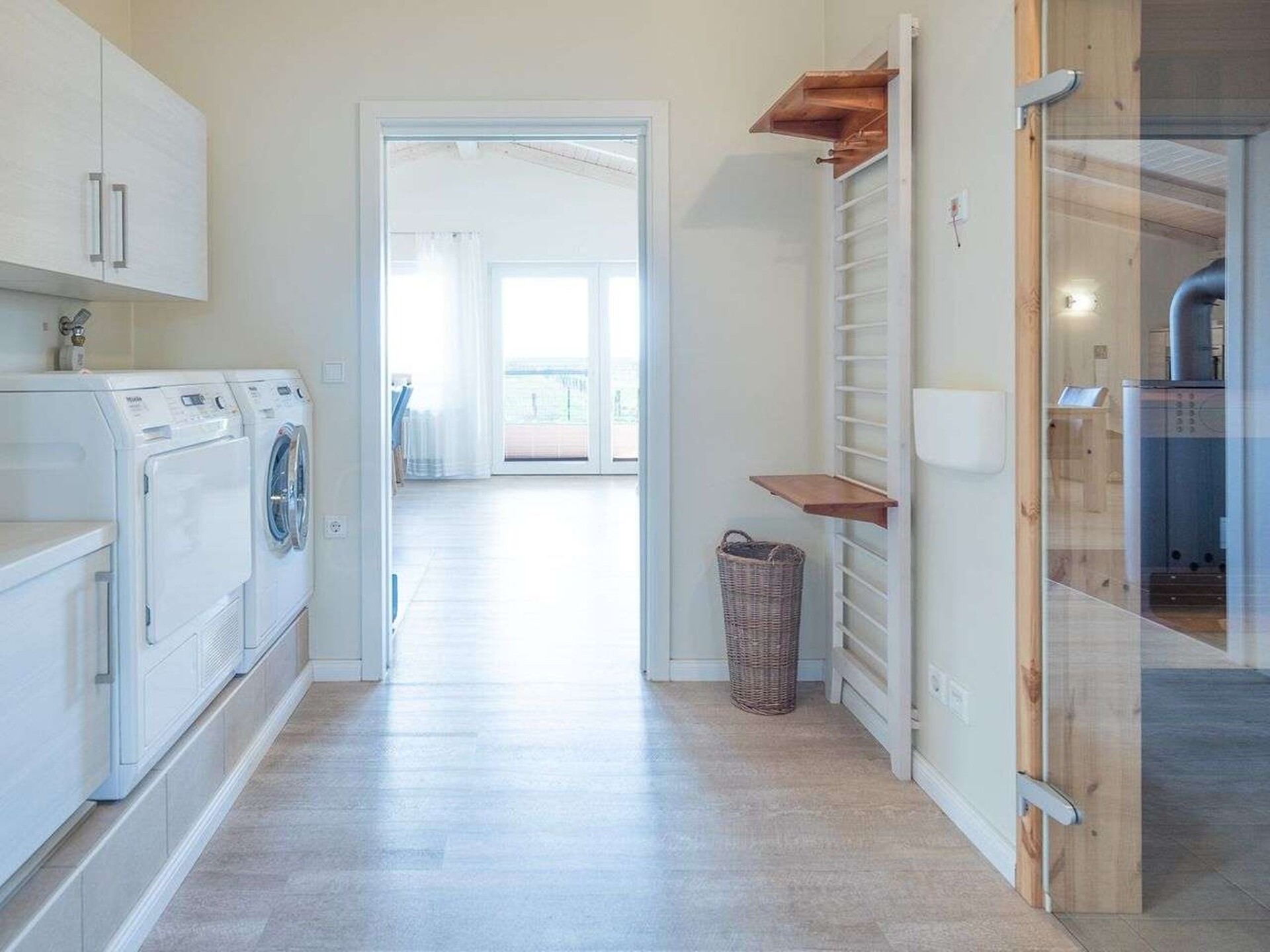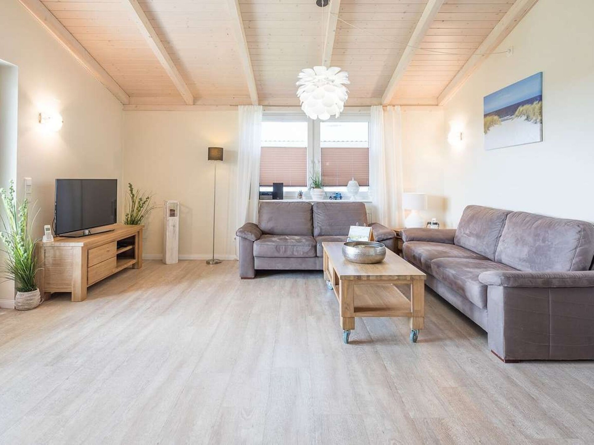 "Herzmuschel", huis 3-kamers 85 m2, op de begane grond. Comfortabel en smaakvol ingericht: woon-/eetkamer met zwedenkachel en Sat-TV (Flatscreen TV), radio en DVD. Uitgang naar het terras. 2 2-pers. kamers. Open keuken (oven, afwasmachine, 4 keramische glas kookplaten, elektrische koffiemachine). Aparte WC, bad/douche/WC, Sauna. Terrasmeubelen. Ter beschikking: Internet (WiFi, gratis). Rookvrij huis. Maximaal 2 huisdieren/honden toegestaan. Rookmelders.
