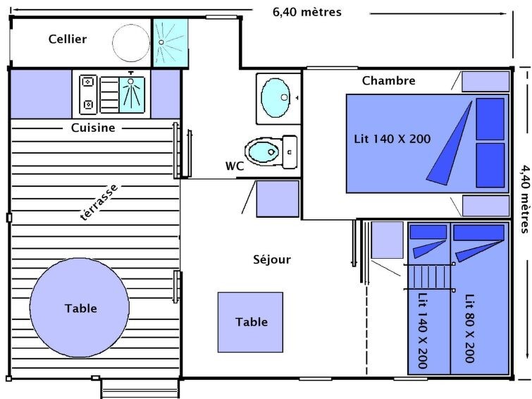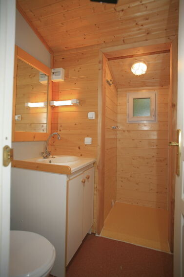"La Clémentine Chalet Confort 4/5 pers", chalet 3-kamers 18 m2. Doelmatig ingericht: woon-/eetkamer met eettafel. Uitgang naar het terras. 1 kamer met 1 2-pers bed (1 x 140 cm, lengte 190 cm). Cabine met 1 x 1 stapelbedden (80 cm, lengte 190 cm), 1 2-pers bed (1 x 140 cm, lengte 190 cm). Kookhoek (2 kookpitten (vlammen), broodrooster, magnetron, elektrische koffiemachine). Douche/WC. Elektrische verwarming. Groot terras 10 m2, overdekt. Terrasmeubelen, ligstoelen (2). Ter beschikking: Internet (WiFi, gratis). Parkeerplaats (1 Auto). Niet rokers woning. Maximaal 1 huisdier/hond toegestaan. Rookmelders. Aanbod door een commerciële eigenaar volgens art. 155, IV, CGI