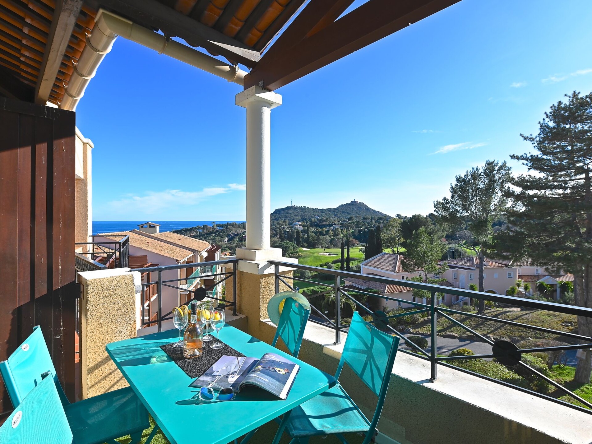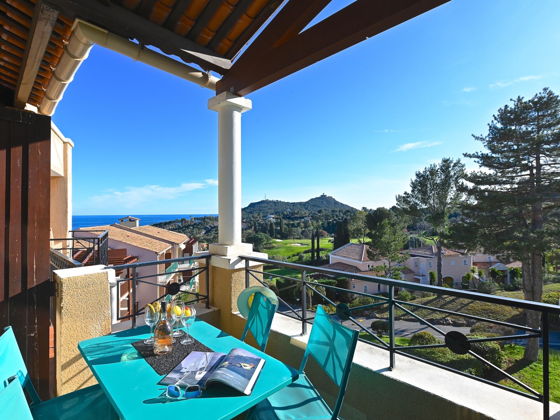 Groot vakantiecomplex "Village Cap Estérel - Le Belvédère". Aan de rand van de plaats, 2 km van het centrum van Agay, tegen een helling, in een woonwijk, 400 m van zee, 350 m van het strand, de straat oversteken, aan de golfbaan, in een voetgangerszone. Voor medegebruik: park 210 ha, 5 zwembaden (seizoensgebonden beschikbaarheid: 06.Apr. - 03.Nov.). Kinderzwembad, jeu de boules, kinderspeelplaats (glijbaan, schommel). In het complex: spa centrum (extra), winkel, wasserette (extra). Winkel, levensmiddelenwinkel 200 m, supermarkt 6 km, restaurant 150 m, bakkerij 500 m, bushalte "Ligne 21" 300 m, treinstation "Saint-Raphaël-Valescure TGV" 9 km, zandstrand "Tiki Plage" 900 m. Jachthaven 1 km, golfterrein (9 holes), tennis 500 m. Attracties in de buurt: Anthéor 8 km, Saint-Raphaël 9 km, Fréjus 13 km, Cannes 33 km, Saint-Tropez 50 km, Nice 76 km. Bekende meren kunnen gemakkelijk worden bereikt: Lac Saint-Cassien. Wandelgebied Massif de l'Estérel. Autovrij vakantiepark, geen lift. Animatie in het hoogseizoen. Geschikt voor families, kinderopvang mogelijk in het hoogseizoen (extra). Bewaakt vakantiecomplex. De sleuteloverdracht vindt plaats bij het agentschap Interhome in Cap Estérel. Vergelijkbare accommodaties kunnen worden geboekt.