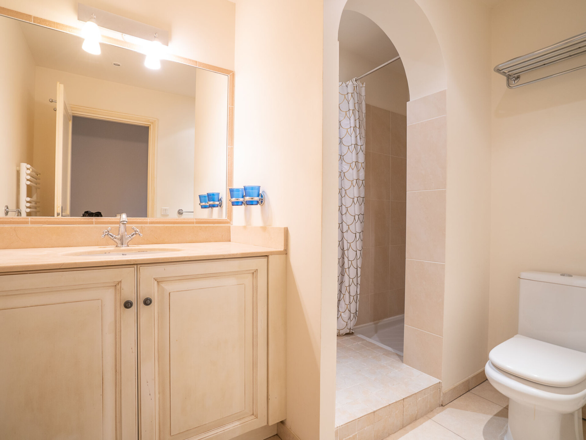 "Le Domaine de St. Endréol Gold & Spa", appartement 4-kamers 110 m2 op de 1e verdieping. Smaakvol ingericht: woon-/eetkamer met open haard, eettafel en Sat-TV. Uitgang naar het balkon. 1 kamer met 1 2-pers bed (160 cm, lengte 200 cm), bad/WC en air-conditioning. 2 kamers, elke kamer heeft 2 bedden (80 cm, lengte 190 cm), air-conditioning. Open keuken (4-pits kookplaat, oven, afwasmachine, magnetron, diepvriezer, elektrische koffiemachine). Douche, aparte WC. Gas-verwarming. Balkon. Balkonmeubilair. Ter beschikking: wasmachine, droger, kluis, kinderstoel, kinderbed. Internet (Internet (WiFi), gratis). Parkeerplaats. Aanbod door een commerciële eigenaar volgens art. 155, IV, CGI
