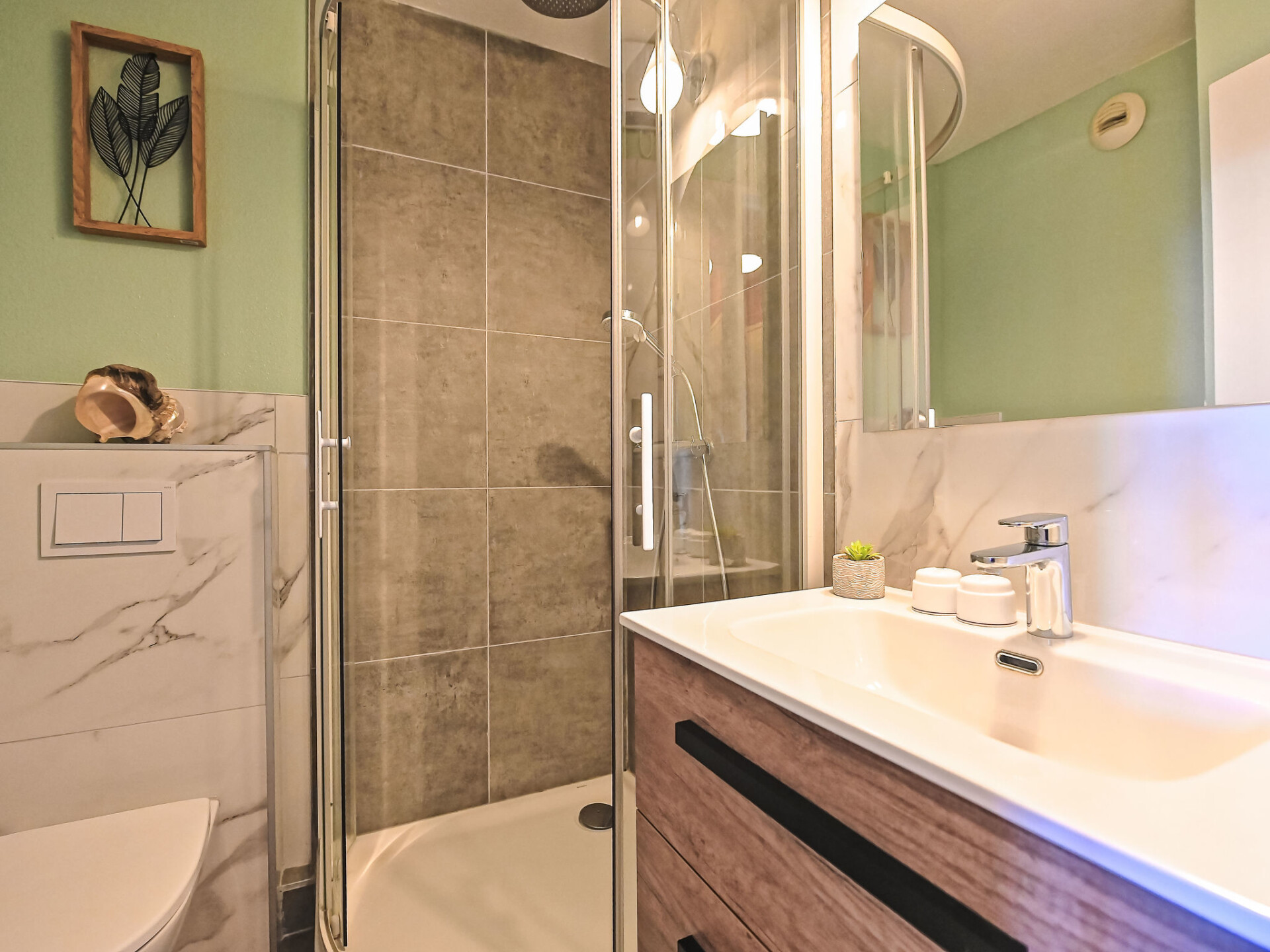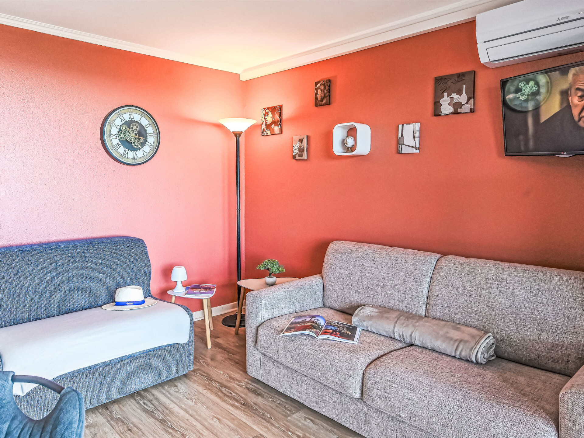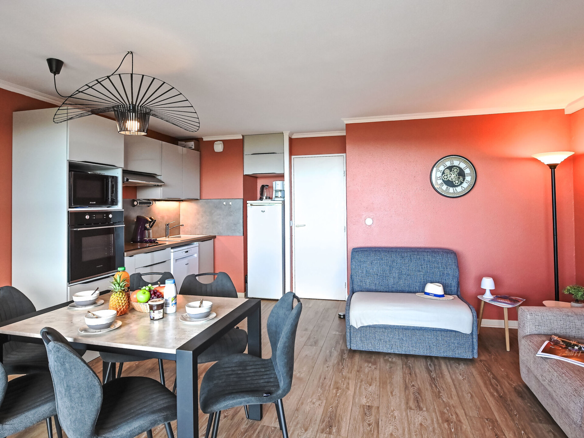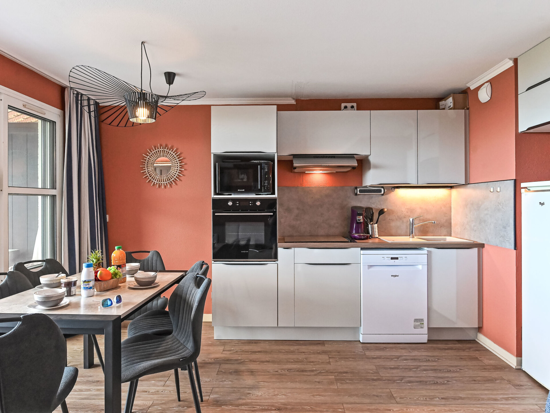 "Le Hameau (M4 333)", appartement 3-kamers 40 m2 op de 2e verdieping. Het objekt is geschikt voor 4 volwassenen + 2 kinderen. Woonkamer met 1 bed (80 cm, lengte 190 cm), 1 divanbed (140 cm, lengte 190 cm), TV (Flatscreen TV), air-conditioning. Uitgang naar het terras. 1 kamer met 1 2-pers bed (140 cm, lengte 190 cm), air-conditioning. 1 kleine kamer met 1 x 2 stapelbedden (80 cm, lengte 190 cm), ventilator. Kookhoek (4-pits kookplaat, afwasmachine, broodrooster, waterkoker, diepvriezer, elektrische koffiemachine, pads voor de koffiemachine (Senseo) extra, combimagnetron). Badkamer, douche/WC. Verwarming, air-conditioning. Terras 10 m2, overdekt. Terrasmeubelen, ligstoelen (3). Uitzicht op zee. Ter beschikking: haardroger. Internet (WiFi, extra). Parkeerplaats nr. 2061 - 2,20m x 3,30m (overdekt, 1 Auto), hoogte 180 cm. Niet rokers woning. 1 klein huisdier/hond toegestaan. Rookmelders. Aanbod door een particulier volgens art. 155, IV van CGI.