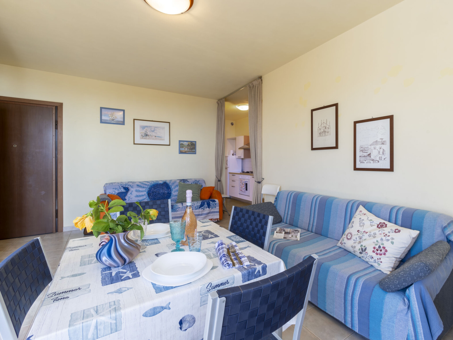 "Le Margherite (SLR255)", appartement 2-kamers 45 m2 op de 1e verdieping. Woon-/slaapkamer met 2 2-pers divanbedden (160 cm), eettafel en Sat-TV. Uitgang naar het terras. 1 kamer met 1 2-pers bed (160 cm). Uitgang naar het terras. Kookhoek (4-pits kookplaat, oven, afwasmachine, 5 kookpitten (vlammen), broodrooster, waterkoker, diepvriezer, elektrische koffiemachine, pads voor de koffiemachine (Lavazza)) met eettafel. Douche/WC. Gas-verwarming. Terras 16 m2. Terrasmeubelen. Beperkt uitzicht op de oceaan. Ter beschikking: wasmachine, strijkijzer. IT008021C2LFARR7L3