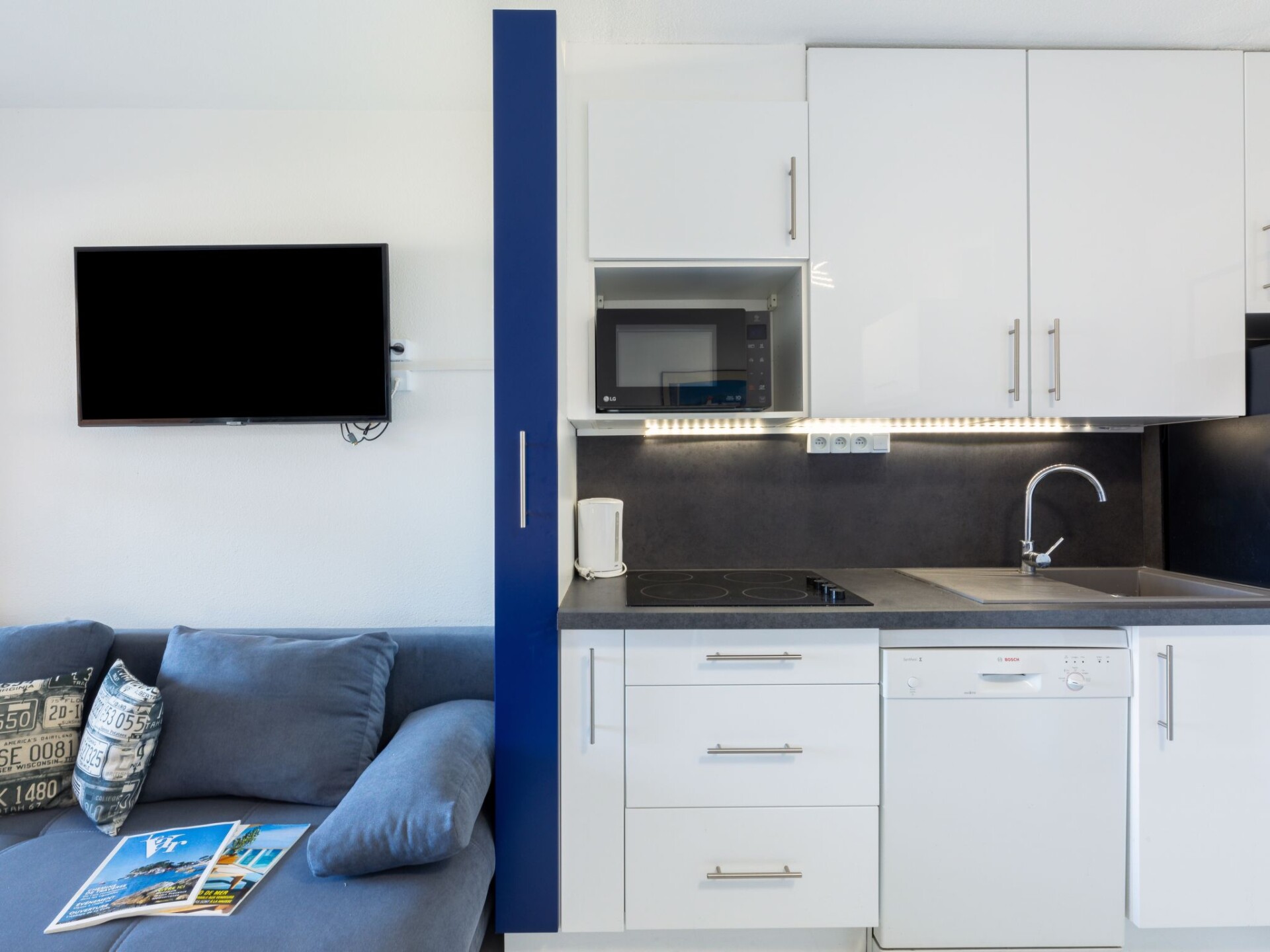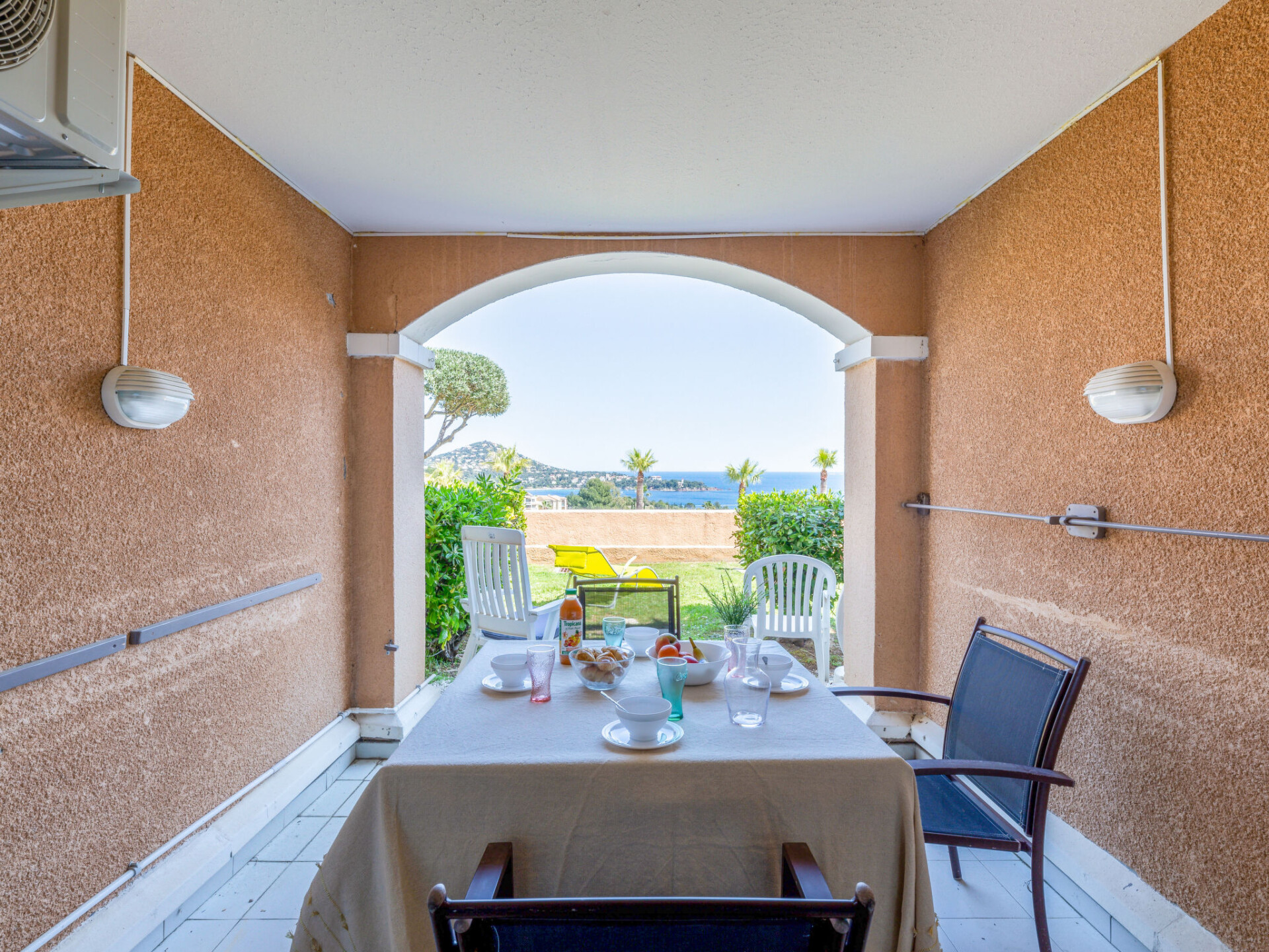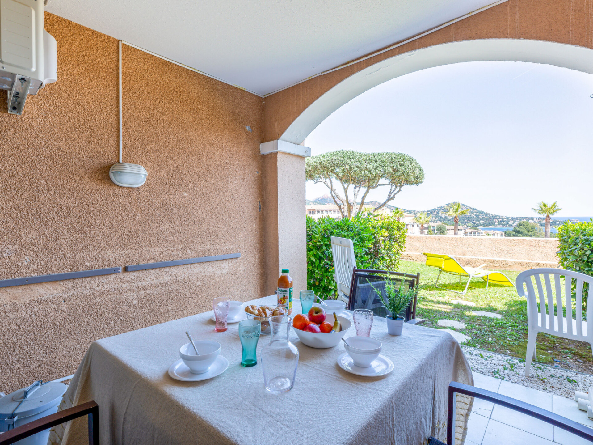 "Le Village (E1103)", appartement 2-kamers 30 m2, op de begane grond. Woonkamer met 2 divanbedden (90 cm, lengte 190 cm), TV (Flatscreen TV), air-conditioning. Uitgang naar het terras, naar de zitplaats in de tuin. 1 kamer met 1 2-pers bed (140 cm, lengte 190 cm), TV (Flatscreen TV). Kookhoek (4-pits kookplaat, afwasmachine, broodrooster, waterkoker, diepvriezer, elektrische koffiemachine, combimagnetron). Douche, aparte WC. Terras 14 m2, zithoek in de tuin. Terrasmeubelen. Mooi uitzicht op zee. Ter beschikking: wasmachine. Internet (Internet (WiFi), extra). Parkeerplaats nr. 2649 (overdekt, 1 Auto), hoogte 180 cm. Niet rokers woning. Rookmelders. Aanbod door een particulier volgens art. 155, IV van CGI.