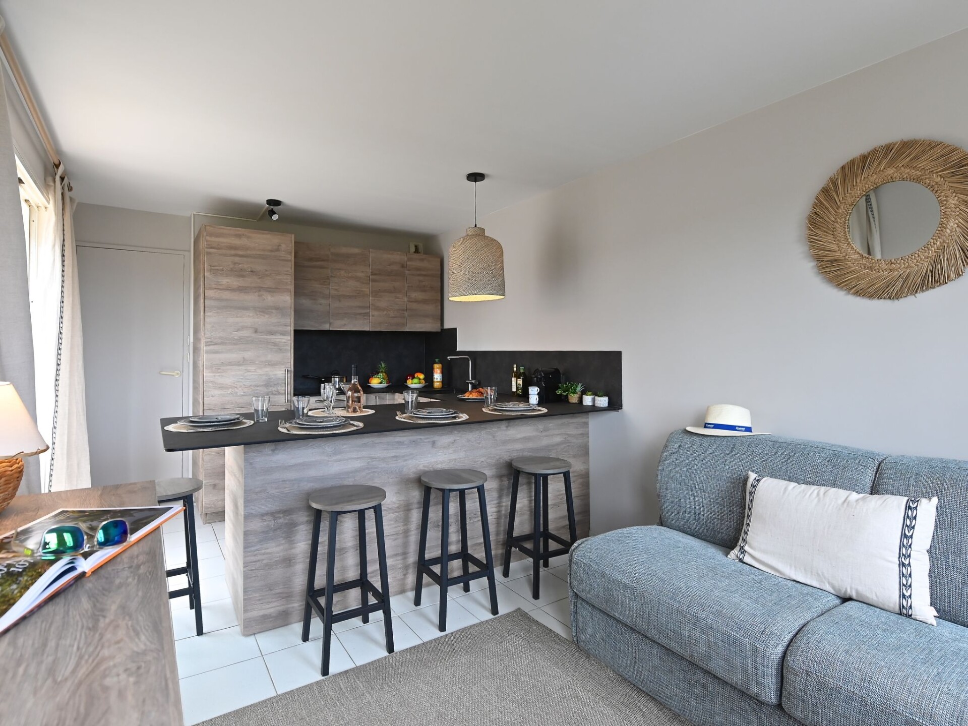 "Le Village (VJ106)", appartement 2-kamers 28 m2, op de begane grond. Het objekt is geschikt voor 2 volwassenen + 2 kinderen. Gedeeltelijk gerenoveerd in 2024: woonkamer met 1 divanbed (140 cm, lengte 190 cm), TV (Flatscreen TV), air-conditioning. Uitgang naar het terras. 1 kleine kamer met 1 2-pers bed (140 cm, lengte 190 cm), air-conditioning. Kookhoek (afwasmachine, 4 inductiekookplaten, broodrooster, waterkoker, diepvriezer, elektrische koffiemachine, pads voor de koffiemachine (Nespresso) extra, combimagnetron). Badkamer, aparte WC. Elektrische verwarming. Terras 30 m2. Terrasmeubelen. Uitzicht op zee. Ter beschikking: wasmachine. Internet (WiFi, extra). Parkeerplaats nr. 2514 (overdekt, 1 Auto), hoogte 180 cm. Niet rokers woning. Rookmelders. Aanbod door een particulier volgens art. 155, IV van CGI.