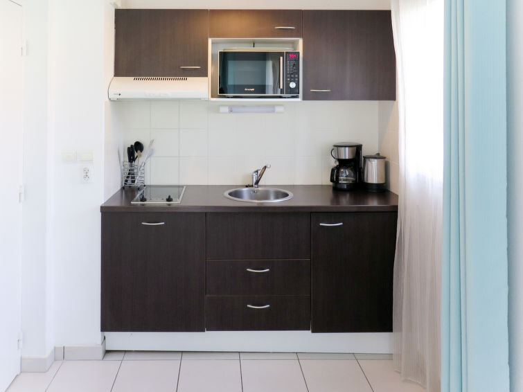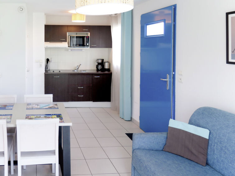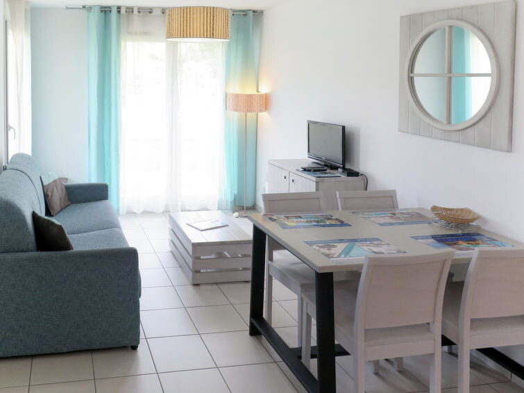 "Les Carrelets 24", appartement 2-kamers 32 m2. Licht, doelmatig en comfortabel ingericht: woon-/slaapkamer met 1 2-pers divanbed, eettafel en TV. Uitgang naar het balkon, naar het terras. 1 kamer met 1 2-pers bed. Kookhoek (afwasmachine, 2 keramische glas kookplaten, magnetron). Bad/WC. Elektrische verwarming. Balkon of terras. Terrasmeubelen, balkonmeubilair. Ter beschikking: kinderstoel, kinderbed (extra). Internet (WiFi, extra). Maximaal 2 huisdieren/honden toegestaan.
