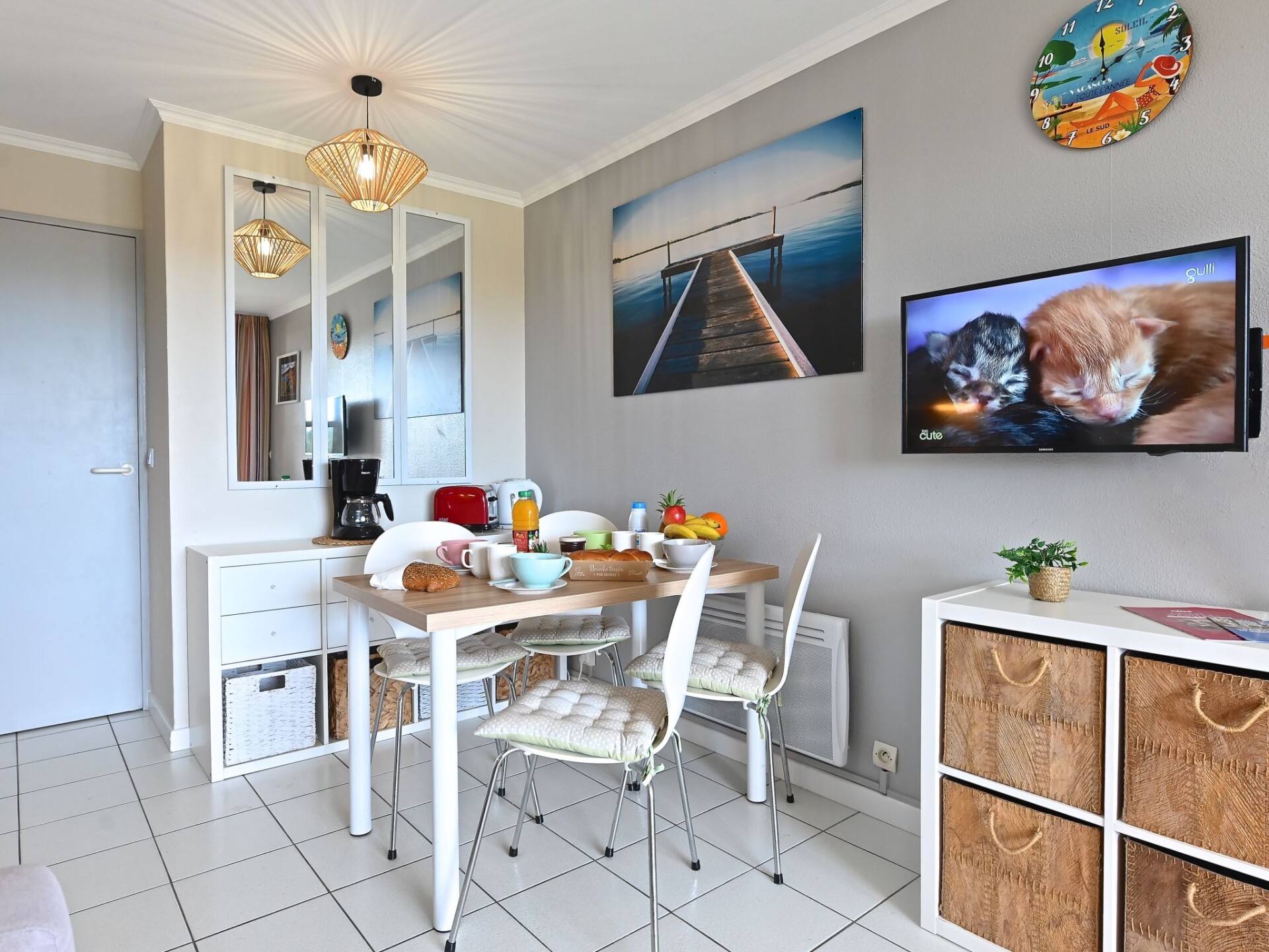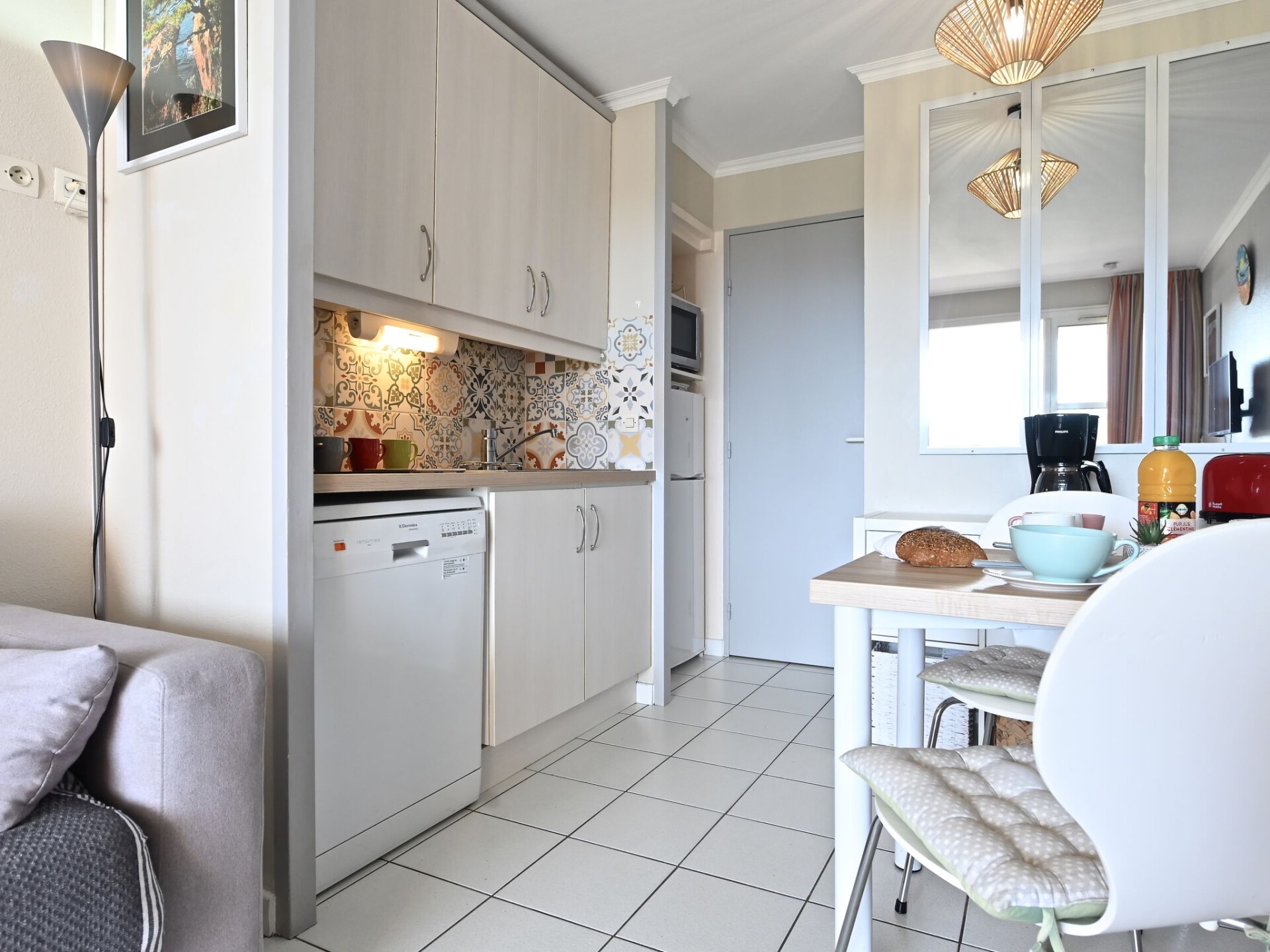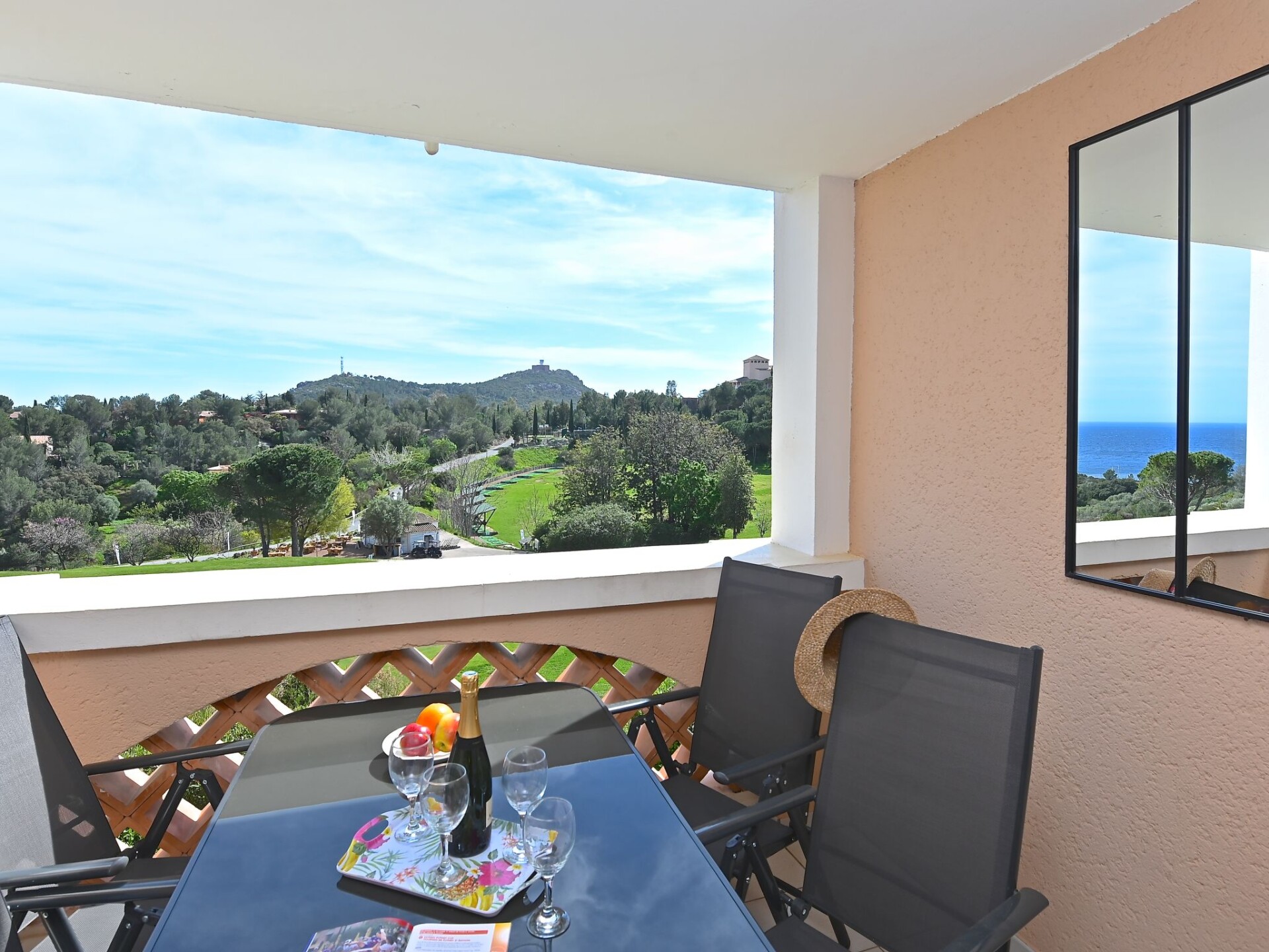 "L'Esquinade (F3 113)", studio 1-kamer 24 m2, op de begane grond. Licht, gerenoveerd in 2022, comfortabel ingericht: woonkamer met 1 divanbed (140 cm, lengte 190 cm), TV (Flatscreen TV), air-conditioning en ventilator. Uitgang naar het terras. Slaapnis met 1 2-pers bed (1 x 140 cm, lengte 190 cm). Kookhoek (2-pits kookplaat, afwasmachine, broodrooster, waterkoker, diepvriezer, elektrische koffiemachine, combimagnetron). Douche/WC. Elektrische verwarming. Terras 8 m2, overdekt. Terrasmeubelen, elektrische barbecue. Mooi uitzicht op zee en Golfbaan. Ter beschikking: Internet (WiFi, extra). Parkeerplaats (1 Auto). Niet rokers woning. 1 klein huisdier/hond toegestaan. Rookmelders. In plaats van een afgesloten slaapkamer bevinden sommige slaapgedeeltes zich in een open ruimte (galerij, nis, etc.). Aanbod door een particulier volgens art. 155, IV van CGI.
