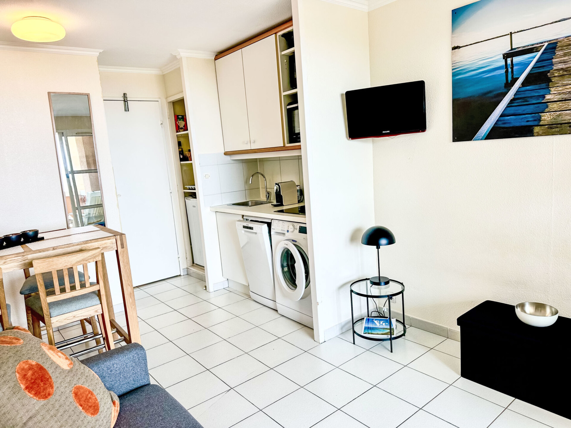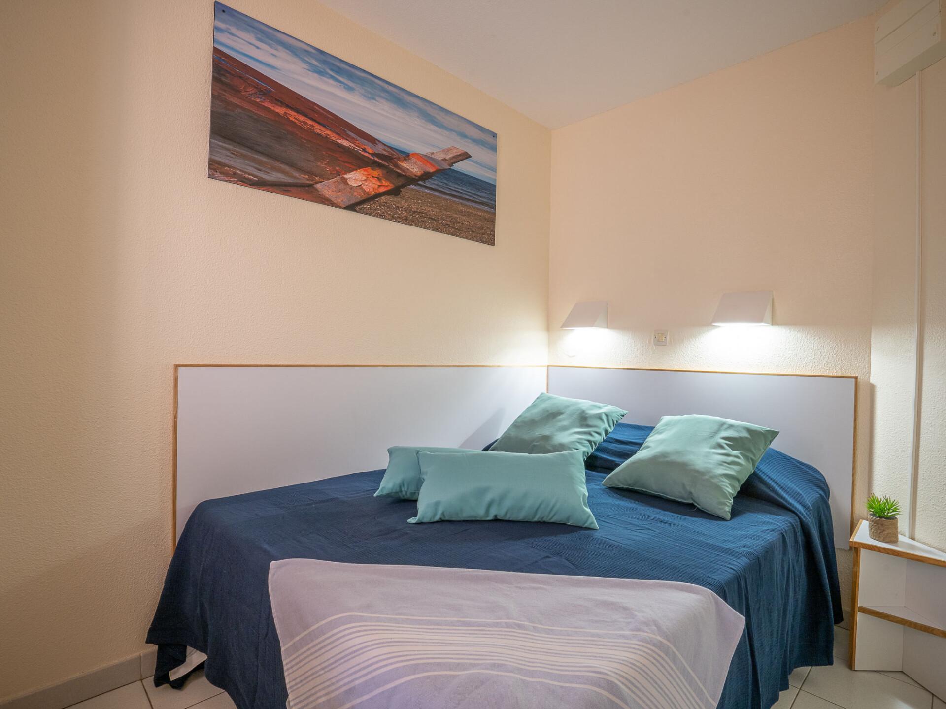 "L'Esquinade (G4 125)", appartement 2-kamers 28 m2, op de begane grond. Woonkamer met 1 divanbed (140 cm, lengte 190 cm), TV (Flatscreen TV). Uitgang naar het terras. 1 kamer met 1 2-pers bed (140 cm, lengte 190 cm). Kookhoek (4-pits kookplaat, afwasmachine, broodrooster, waterkoker, magnetron, elektrische koffiemachine, pads voor de koffiemachine (Nespresso)). Douche, aparte WC. Elektrische verwarming. Terras overdekt. Terrasmeubelen. Uitzicht op zee. Ter beschikking: wasmachine. Internet (WiFi, extra). Parkeerplaats (1 Auto). Niet rokers woning. 1 klein huisdier/hond toegestaan. Rookmelders. Aanbod door een particulier volgens art. 155, IV van CGI.