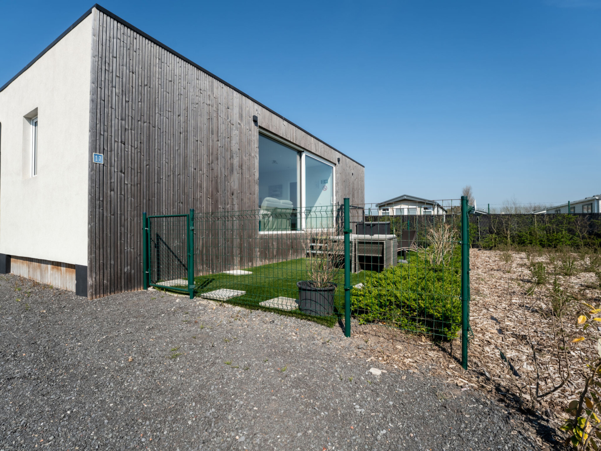 "New Dahlia 17 with parking", chalet 3-kamers 44 m2. Comfortabel en modern ingericht: open woon-/eetkamer met eettafel, internationale TV-zenders en air-conditioning. Uitgang naar het terras. 1 2-pers. kamer met 1 2-pers bed (160 cm, lengte 200 cm), wastafel en douche/WC. 1 2-pers. kamer met 2 bedden (80 cm, lengte 200 cm), wastafel en douche. Open keuken (afwasmachine, 4 inductiekookplaten, broodrooster, waterkoker, elektrische koffiemachine, combimagnetron). Verwarming. Terrasmeubelen. Ter beschikking: haardroger. Internet (WiFi, gratis). Parkeerplaats (1 Auto). Rookvrij huis. Maximaal 1 huisdier/hond toegestaan. TV alleen NL, FR. Rookmelders, brandblusser. LD391640