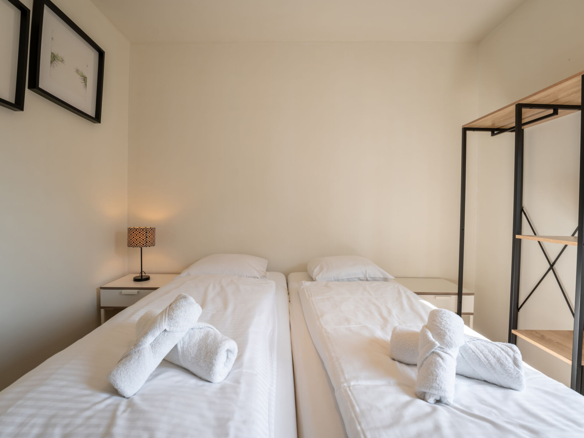 "New Dahlia 6 with parking", huis 3-kamers 44 m2. Comfortabel en modern ingericht: open woon-/eetkamer met eettafel, aparte WC, Digitale TV, internationale TV-zenders en air-conditioning. Uitgang naar het terras. 1 2-pers. kamer met 1 bed (160 cm, lengte 200 cm), douche/WC. 1 2-pers. kamer met 2 bedden (80 cm, lengte 200 cm), douche. Open keuken (afwasmachine, 4 inductiekookplaten, broodrooster, waterkoker, diepvriezer, elektrische koffiemachine, combimagnetron). Verwarming. Terrasmeubelen. Ter beschikking: haardroger. Internet (WiFi, gratis). Parkeerplaats (1 Auto). Rookvrij huis. Maximaal 1 huisdier/hond toegestaan. TV alleen NL, FR. Rookmelders, brandblusser.