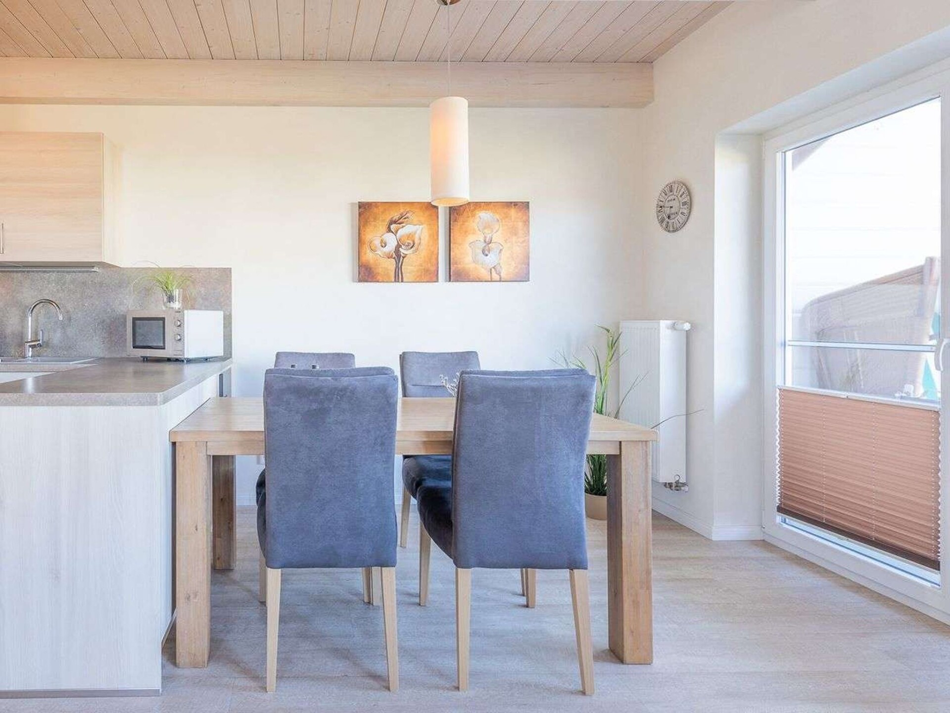 "Nordspitze", halfvrijstaand huis 4-kamers 100 m2 op 2 verdiepingen, op de begane grond. Comfortabel en smaakvol ingericht: woon-/eetkamer met zwedenkachel en Sat-TV (Flatscreen TV), radio en DVD. Uitgang naar het terras. 1 kamer met 1 bed. Open keuken (oven, afwasmachine, 4 keramische glas kookplaten, elektrische koffiemachine). Douche/WC. Bovenverdieping: 2 2-pers. kamers. Aparte WC, bad/douche/WC, Sauna. Terrasmeubelen. Ter beschikking: Internet (WiFi, gratis). Rookvrij huis. Maximaal 2 huisdieren/honden toegestaan. Rookmelders.