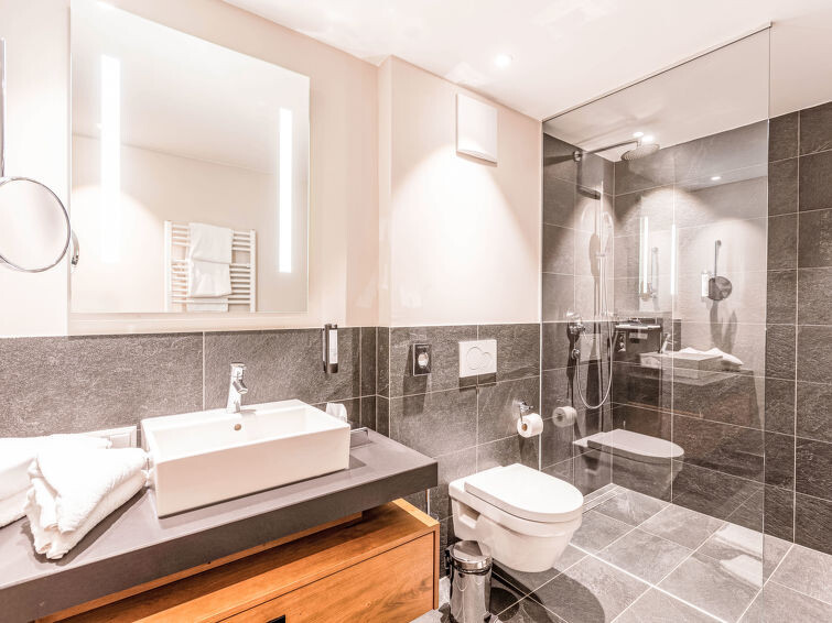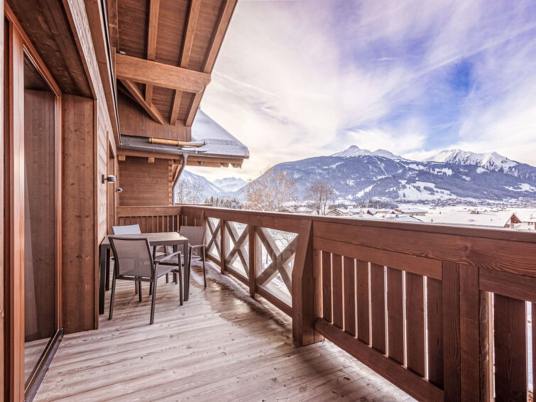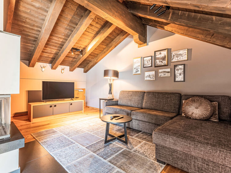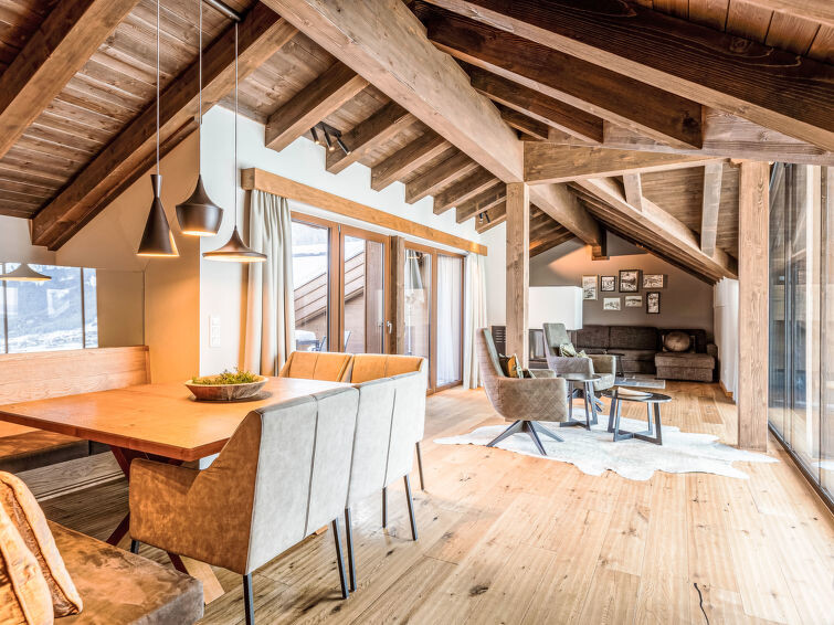 "Premium mit 3 Schlafzimmern", penthouse 4-kamers 161 m2. Licht, modern en smaakvol ingericht: woon-/slaapkamer met 1 2-pers divanbed, eettafel en Sat-TV (Flatscreen TV). 3 2-pers. kamers. Open keuken (oven, afwasmachine, 4 keramische glas kookplaten, broodrooster, waterkoker, magnetron, elektrische koffiemachine, pads voor de koffiemachine (Nespresso) extra). 3 douche/WC's, aparte WC. Verwarming. Balkon. Balkonmeubilair. Mooi uitzicht op de bergen. Ter beschikking: haardroger. Internet (Internet (WiFi), gratis). Niet rokers woning.