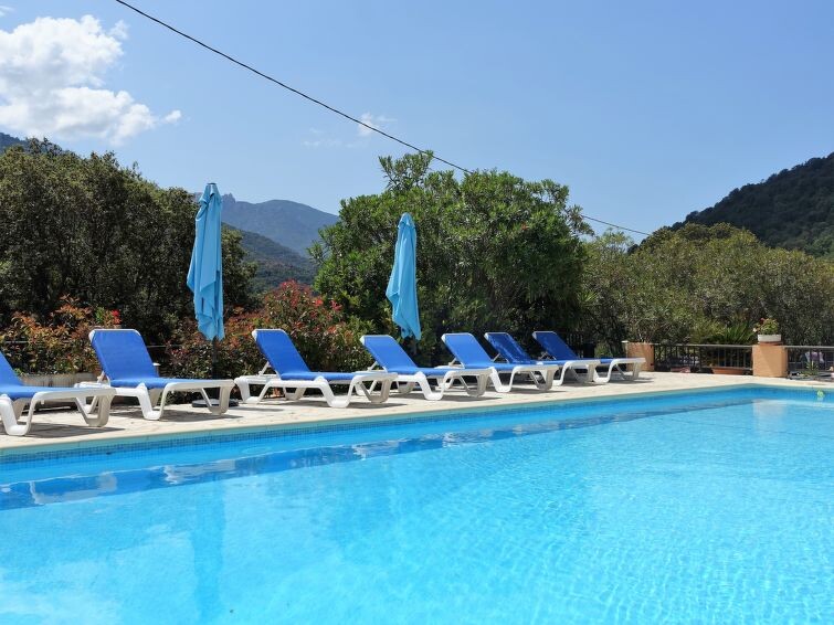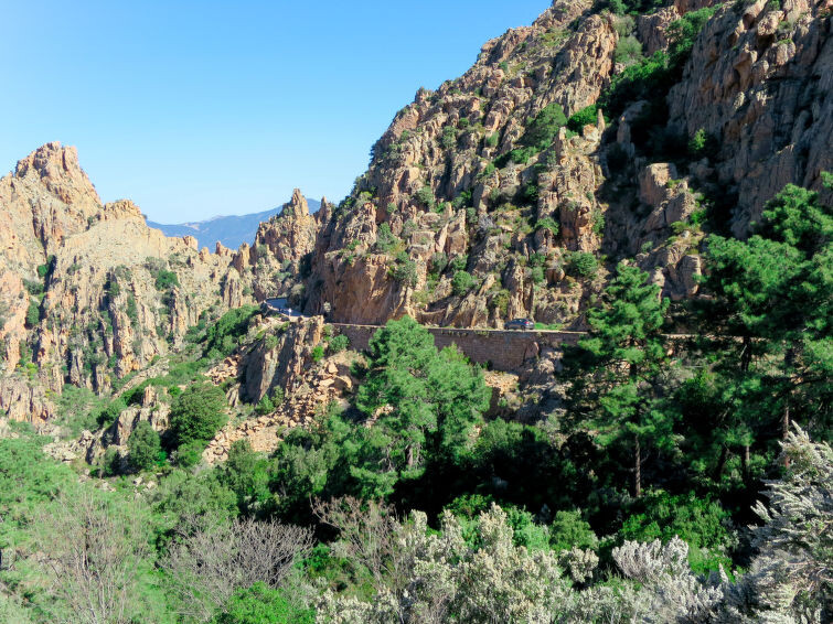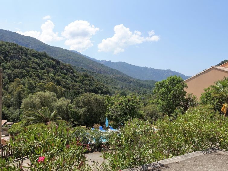 Serriera 6 km van Porto: Vakantiepark "Cabannaccia". Aan de rand van de plaats Serriera, rustige ligging, 1.5 km van zee, 1.5 km van het strand. Voor medegebruik: openluchtzwembad (14 x 8 m, 100 - 130 cm diepte, seizoensgebonden beschikbaarheid: 01.Jun. - 30.Okt.). In het huis: receptie, bar, bistro, Internet (WiFi), bergruimte voor fietsen, wasmachine (voor medegebruik). Broodjesservice en ontbijt (extra). Parkeerplaats. Winkel 6 km, levensmiddelenwinkel 6 km, restaurant 1.5 km, bushalte "Porto" 5.7 km, stenenstrand 1.5 km. Auto noodzakelijk. Baby uitrusting (extra). De afgebeelde foto is slechts een voorbeeld. Vergelijkbare accommodaties kunnen worden geboekt. Het complex "Cabanaccia" bestaat uit een hotel en uit verschillende gebouwen (bereikbaar over treden) die plaats bieden aan vakantieappartementen.