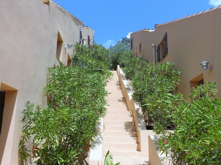 "Residence Cabanaccia 3 Pieces 4 Pers", appartement 3-kamers 62 m2 op 2 verdiepingen. Woon-/eetkamer met TV. 1 kamer met 1 2-pers bed (140 cm, lengte 190 cm), air-conditioning. Kookhoek (4-pits kookplaat, afwasmachine, magnetron, diepvriezer). Douche/WC. Zolderverdieping: (steile trap), 1 open kamer met 2 bedden (90 cm, lengte 190 cm), air-conditioning. Elektrische verwarming. Terras 15 m2. Terrasmeubelen. Ter beschikking: telefoon. Maximaal 1 huisdier/hond toegestaan. Let op: de kamer met 2-pers. bed en de douche/WC zijn te bereiken vanaf de woon-/eetkamer via 5 traptreden. Aanbod door een commerciële eigenaar volgens art. 155, IV, CGI